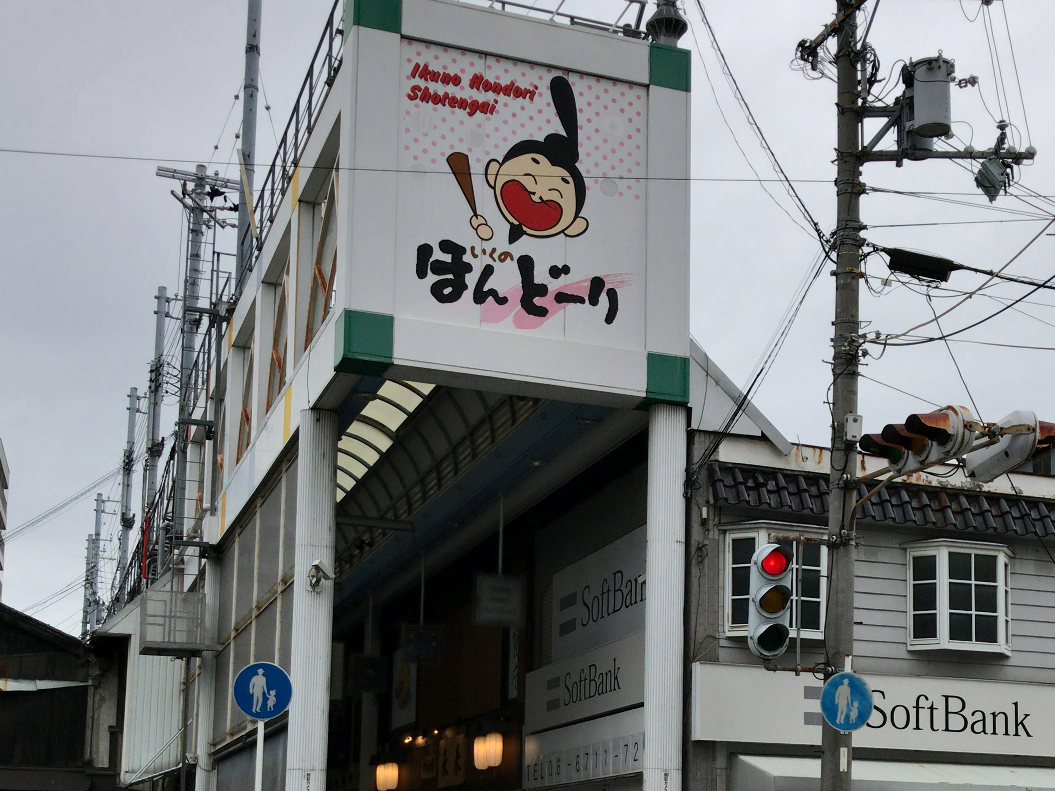 疎開道路に出てきました。ここから先は生野本通商店街、ここまでは生野銀座商店街(生野銀座街)のはず、ところが振り返るとアーケードには生野本通中央商店街とあります。どうやら1本のアーケードが途中で別の商店街に変わっていたようです。