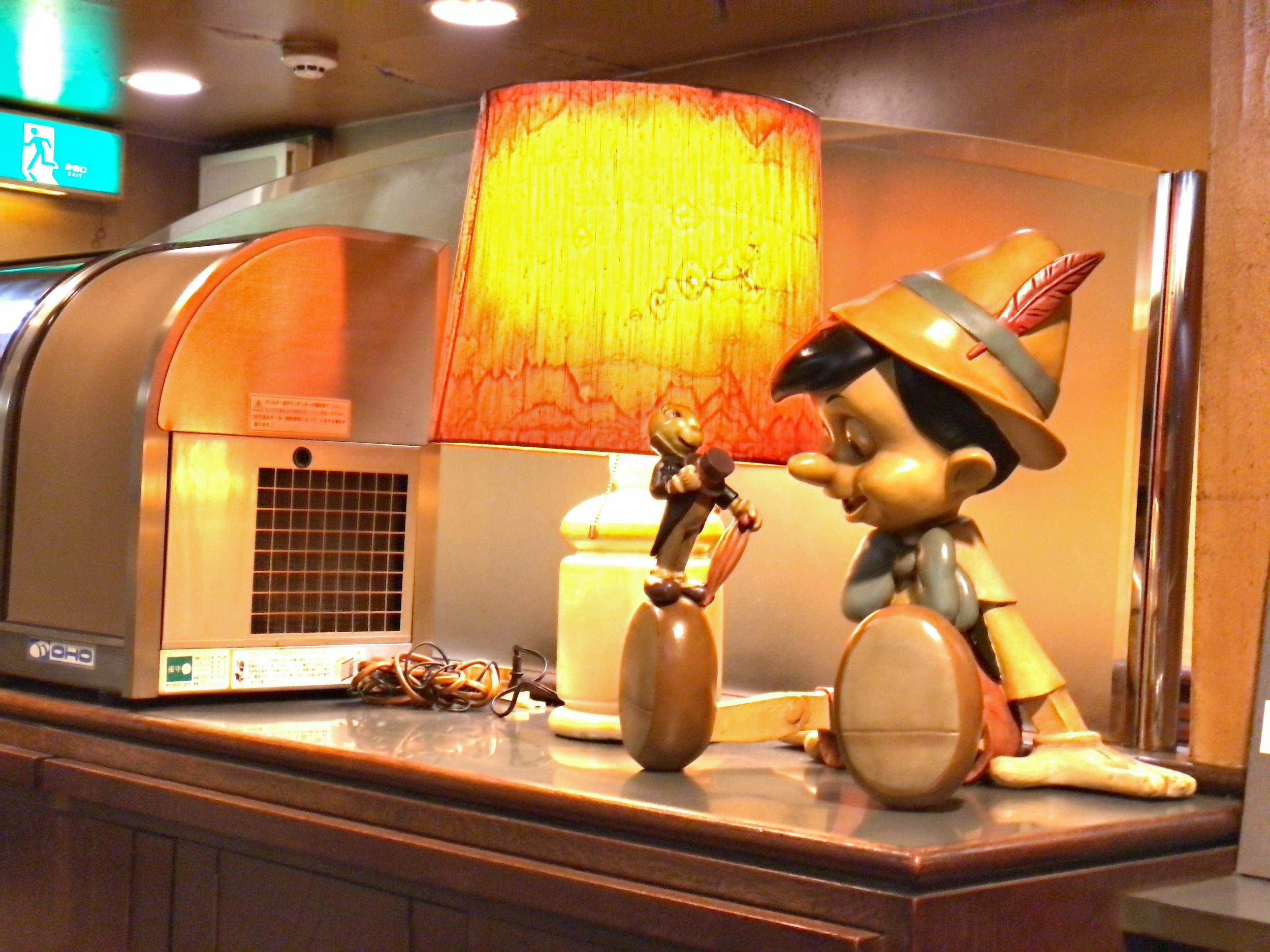 実物大くらいのピノキオの木の人形が素敵です。以前ピノキオを逆にしてキノピオ - CHINOPIO - というハンドルネームを使っていたことがあり、とても親近感を感じる一方、マリオシリーズにキノピオというキャラクターもいて、ピノキオかキノピオか、自分でも分からなくなってきています。