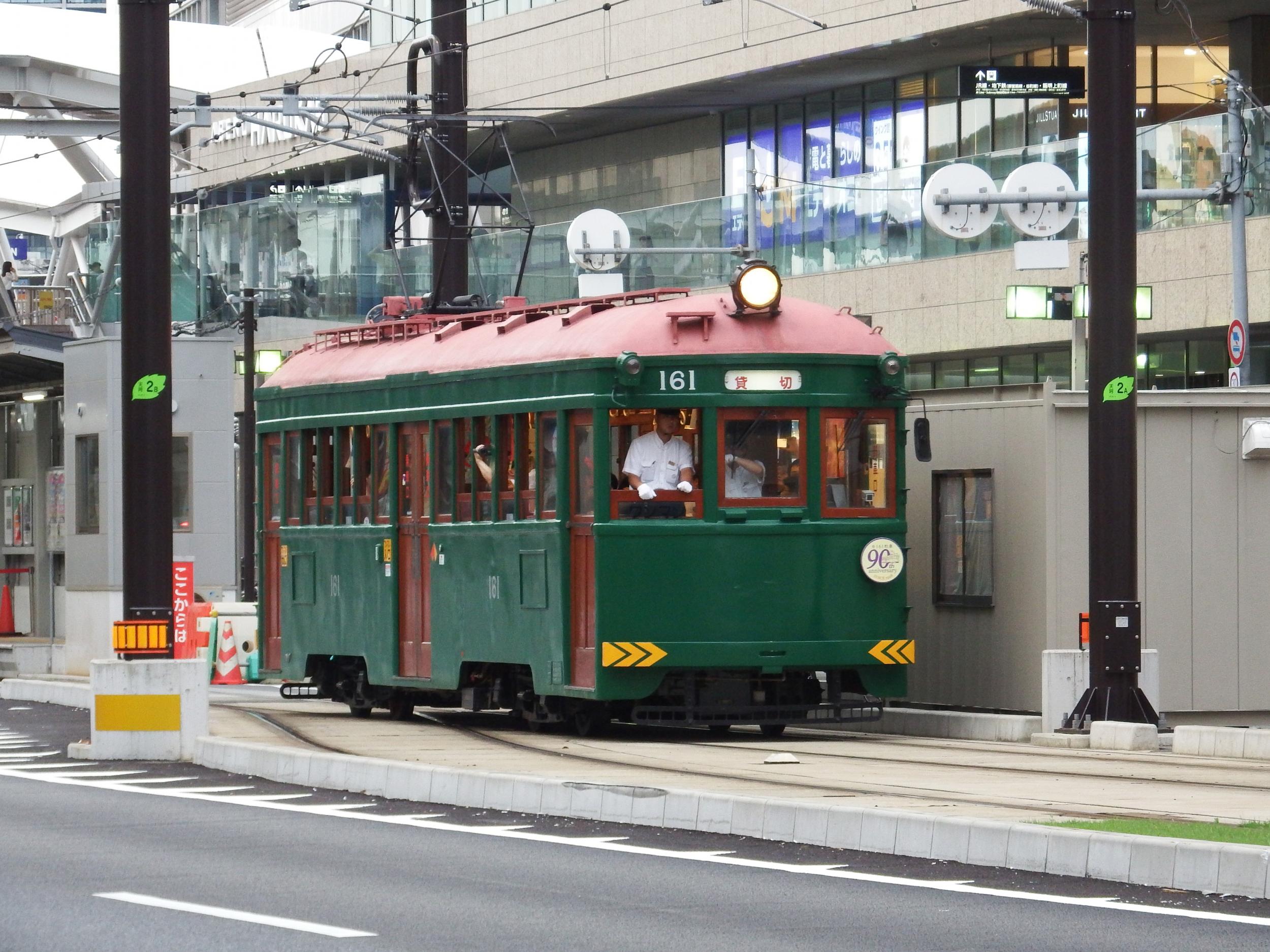 すぐさま続行運転してきたモ351号がモ161の出口にふたをするように入線。モ351が出発した後、さらにモ707号が入線。つまりモ161は2本を先行させて貸切ツアー客の乗車時間をたっぷり確保しています。