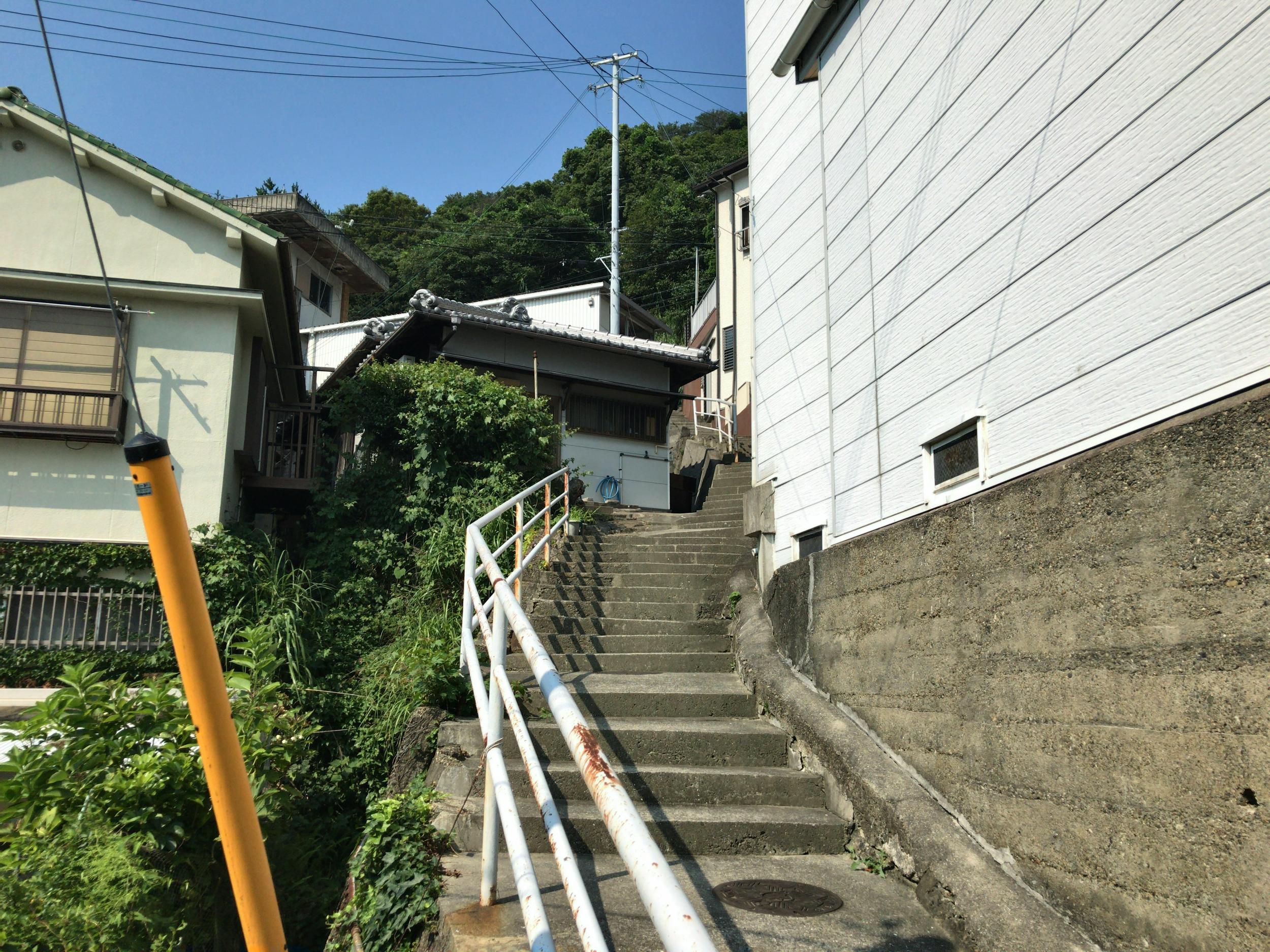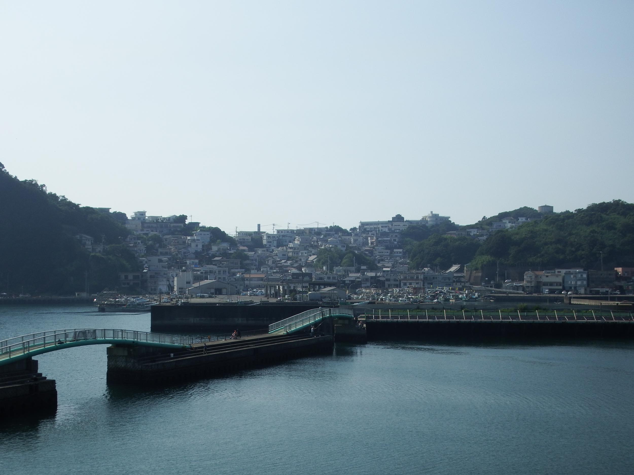 田ノ浦地区に入って県道から坂道を下りて海辺へ。両側の住宅からテレビや話し声が聞こえてきます。瀬戸内の離島へやってきたみたいなキブンです。