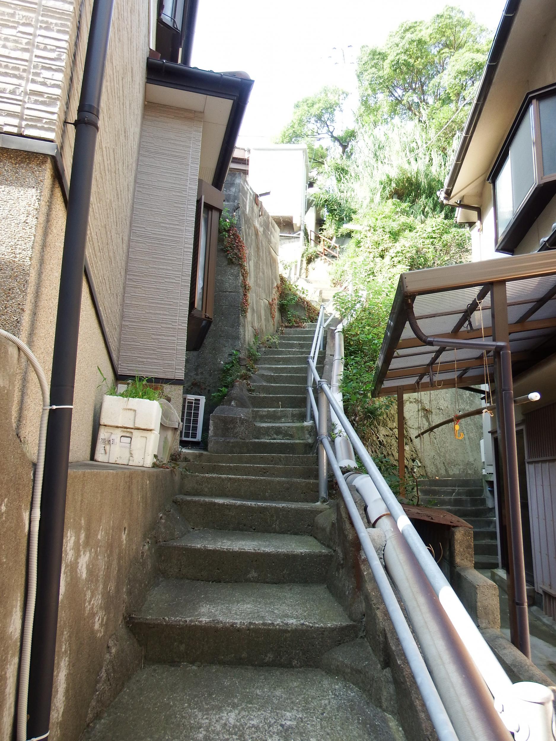 どっかのお宅に間違って入ってしまうんじゃないかとちょっと不安になりながら石段を上って行きます。さっきとは別の理髪店もあって、過疎の村ではないと分かります。