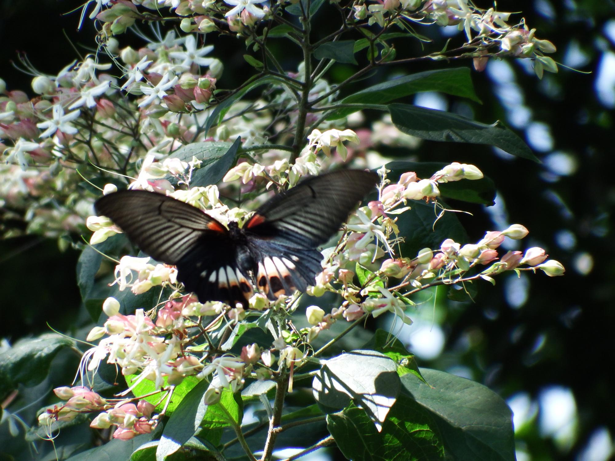 ヒガンバナと最高のコントラスト。シーボルトが長崎で初めて採取したのでナガサキアゲハだそうです。