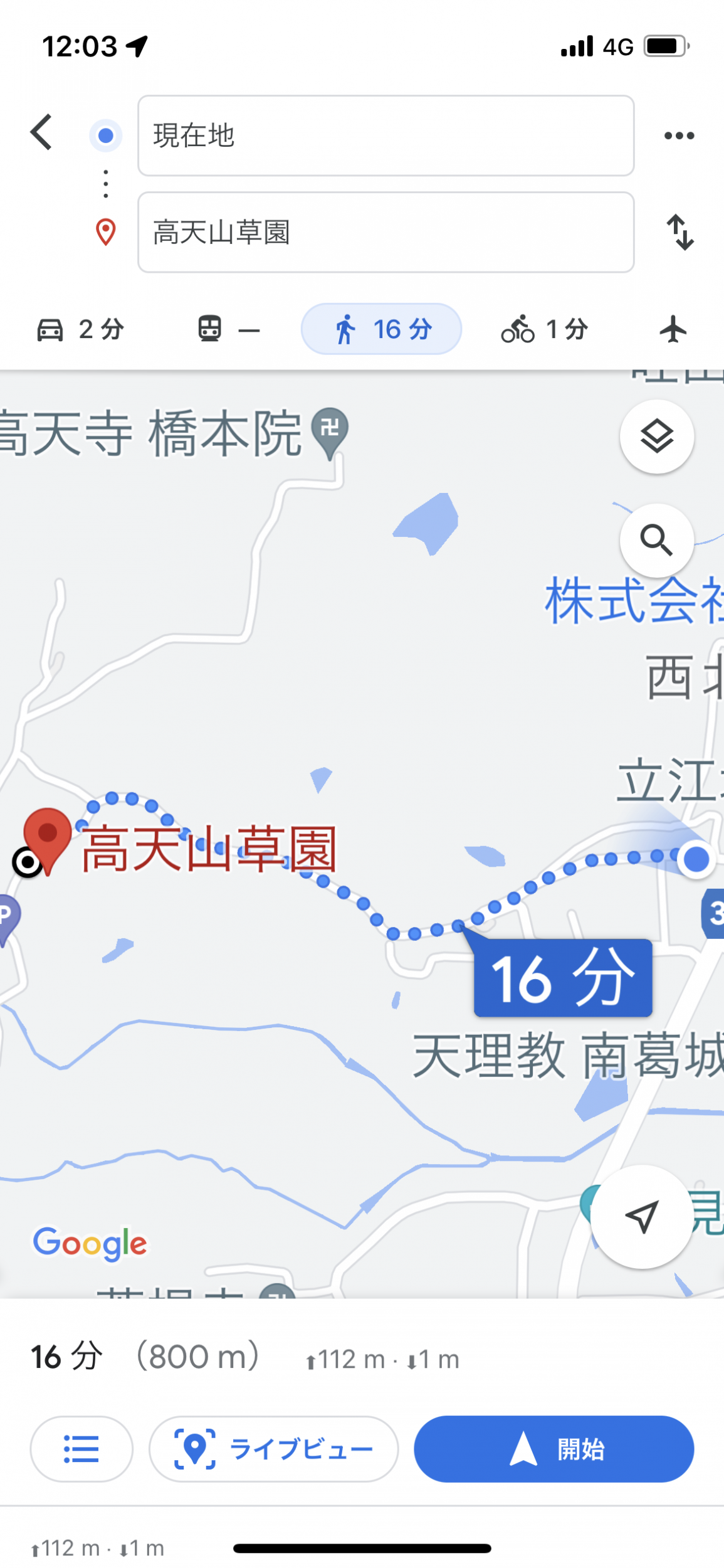山麓線から高天への分岐点に到達、ここで念の為Google Mapでルート検索してみると800mで112mもの上り坂と判明。平均斜度8°、この辺が潮時と判断しました。目的地に到達できなかったのはタンチョウを目指して出発するも飛行機が欠航した時以来です。