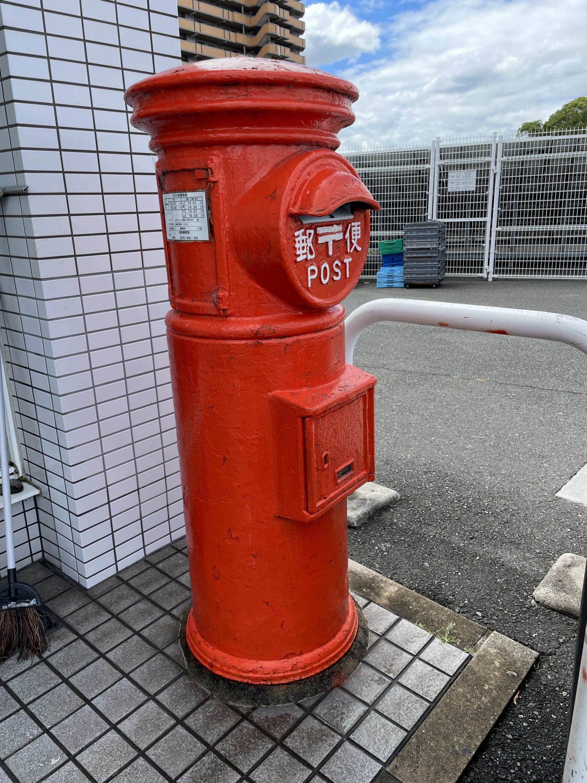公衆電話の反対側には丸形郵便ポストもあります。