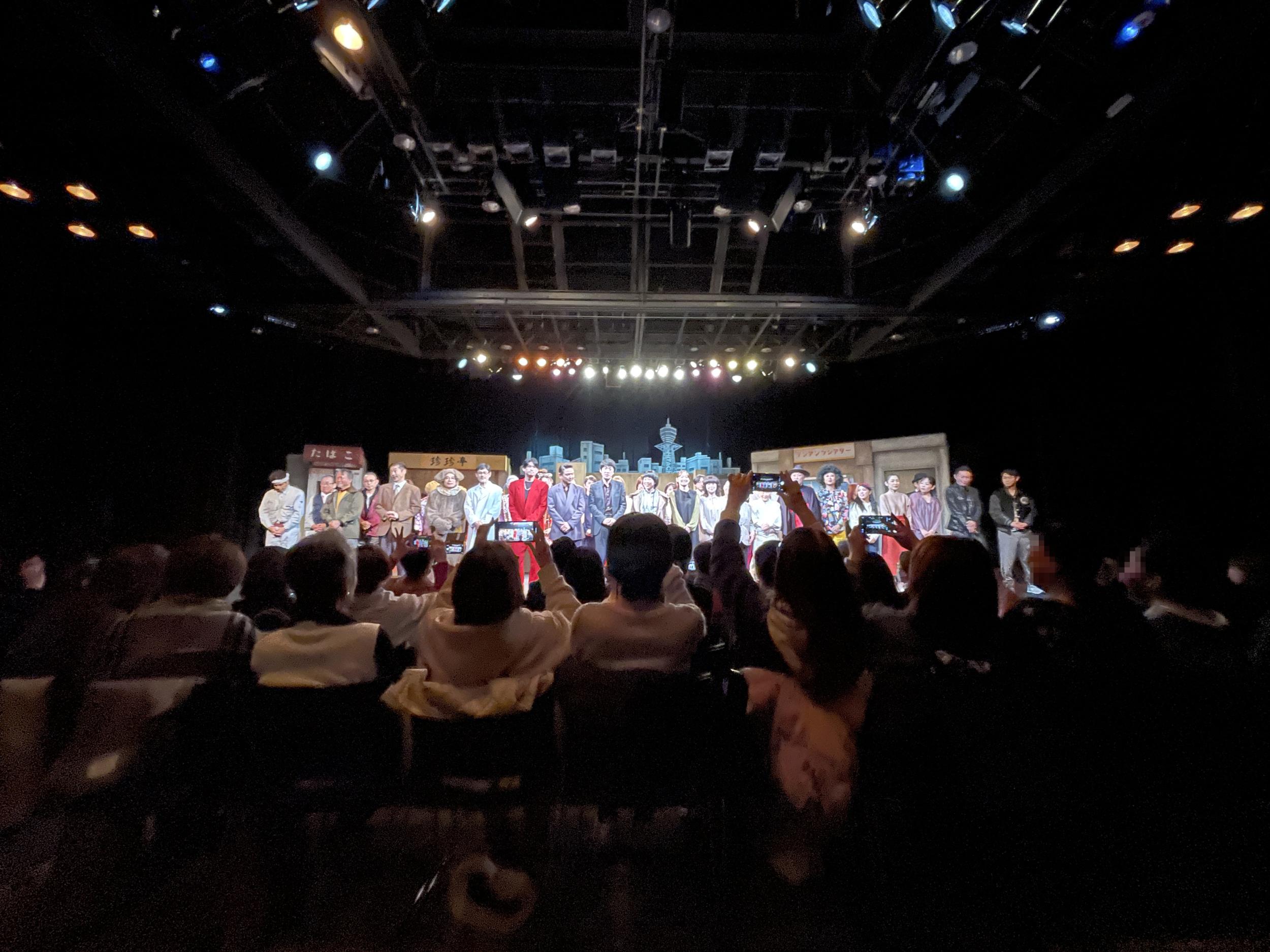 総勢50人ほどの個性たっぷりの役者さんたちによる涙あり笑いあり、前説も含めて延々4時間もの大舞台も、あっという間でした。涙を拭いつつエントランスホールでお見送りの上西さんに握手してもらって大感激、物語にも登場したジャンジャン横丁へ。