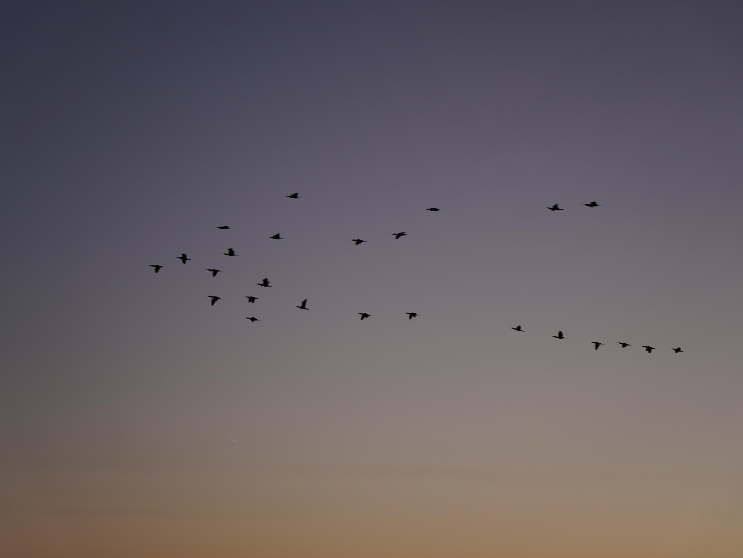 なぜか同じ方を向いていると思いきや、よくみると自分みたいなヘンクツが1羽だけ反対を向いてました。