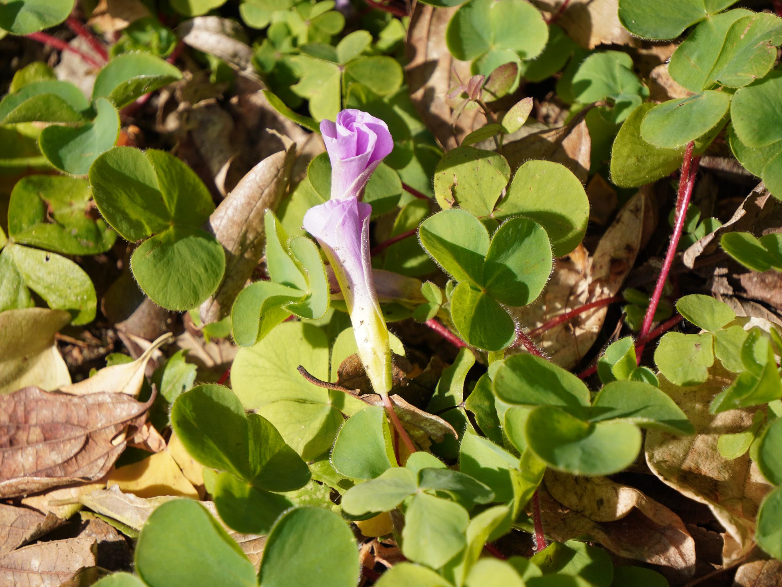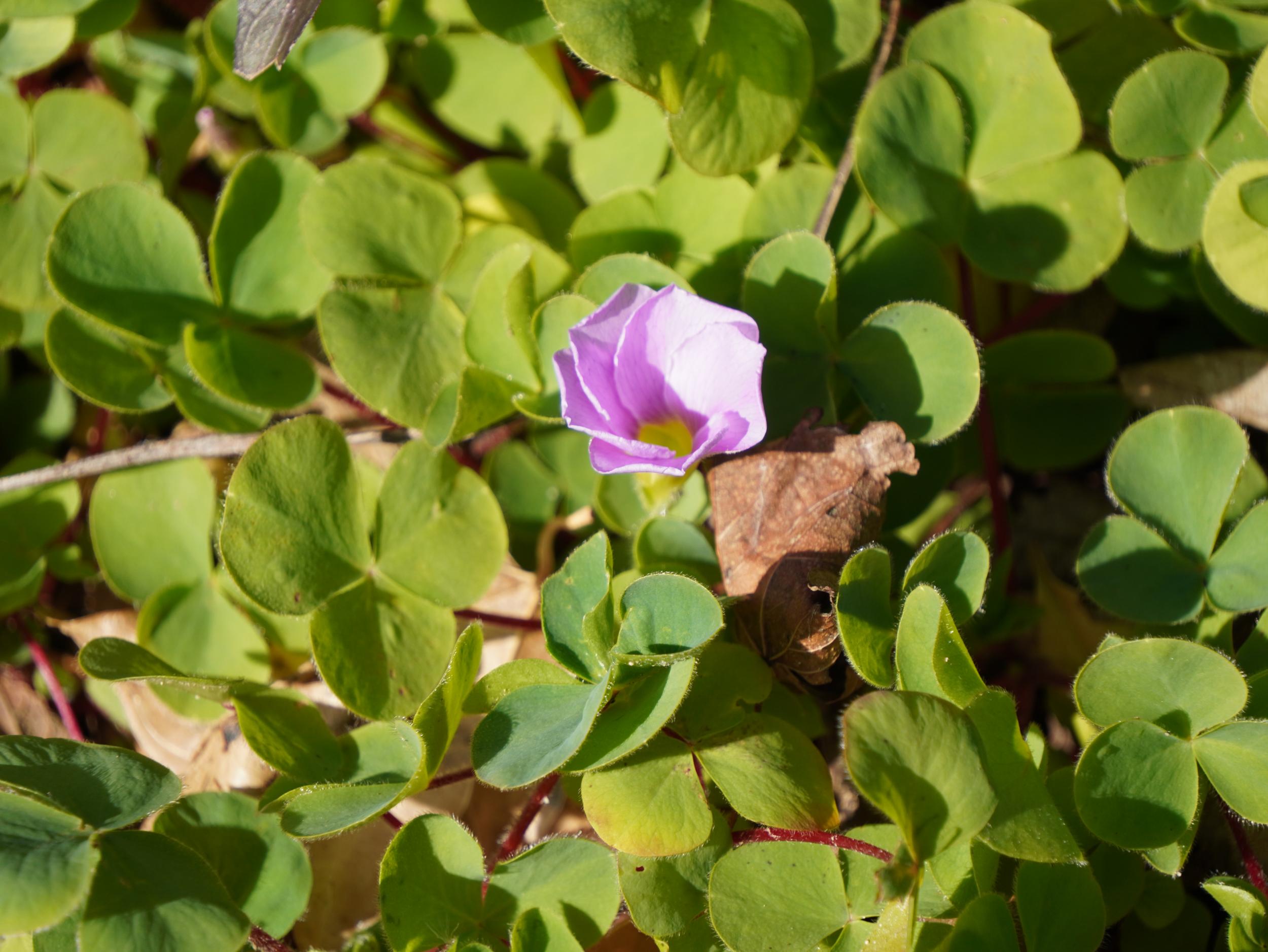 線路脇のフヨウカタバミ、渦巻き状に花を開きます。