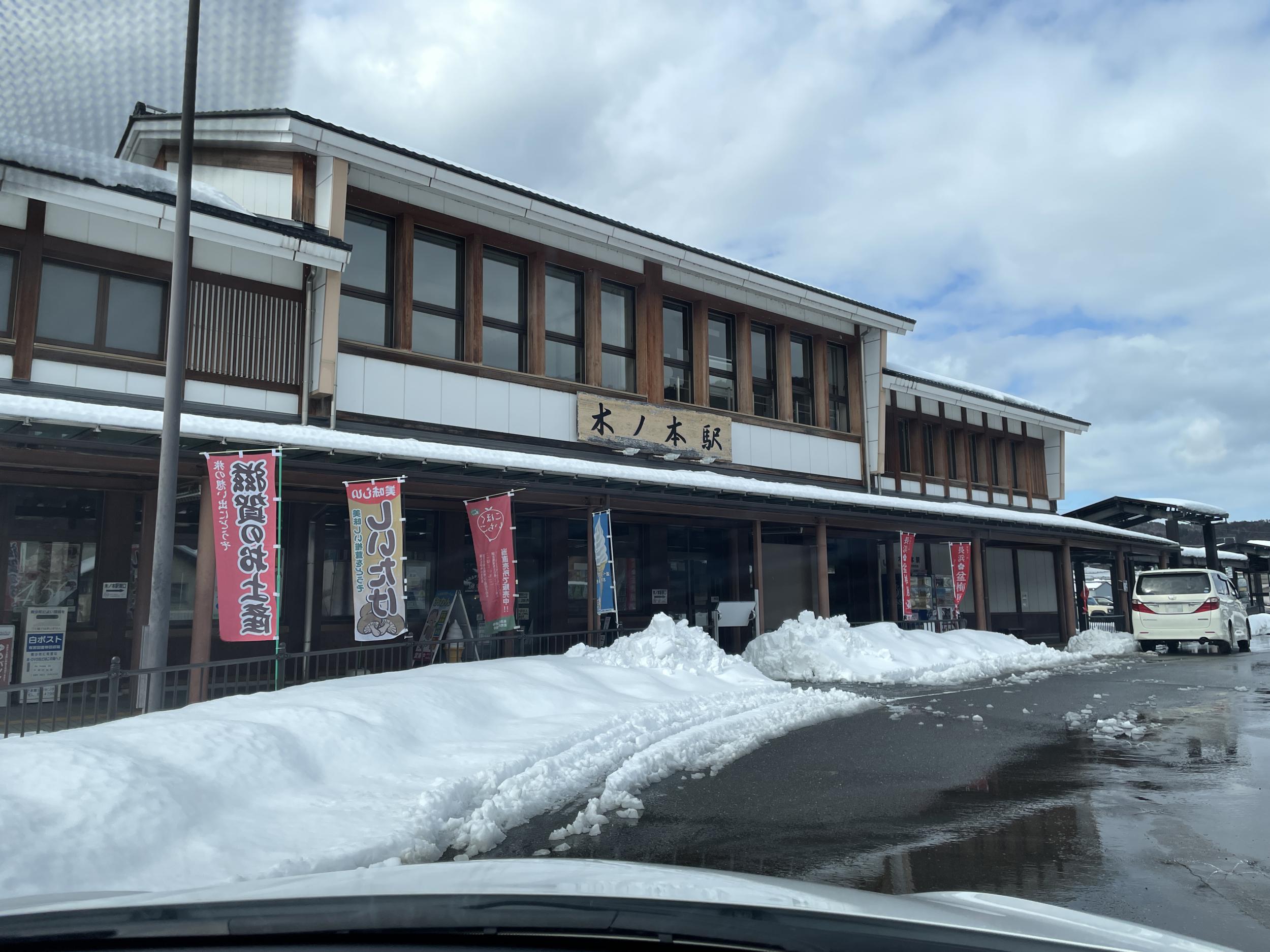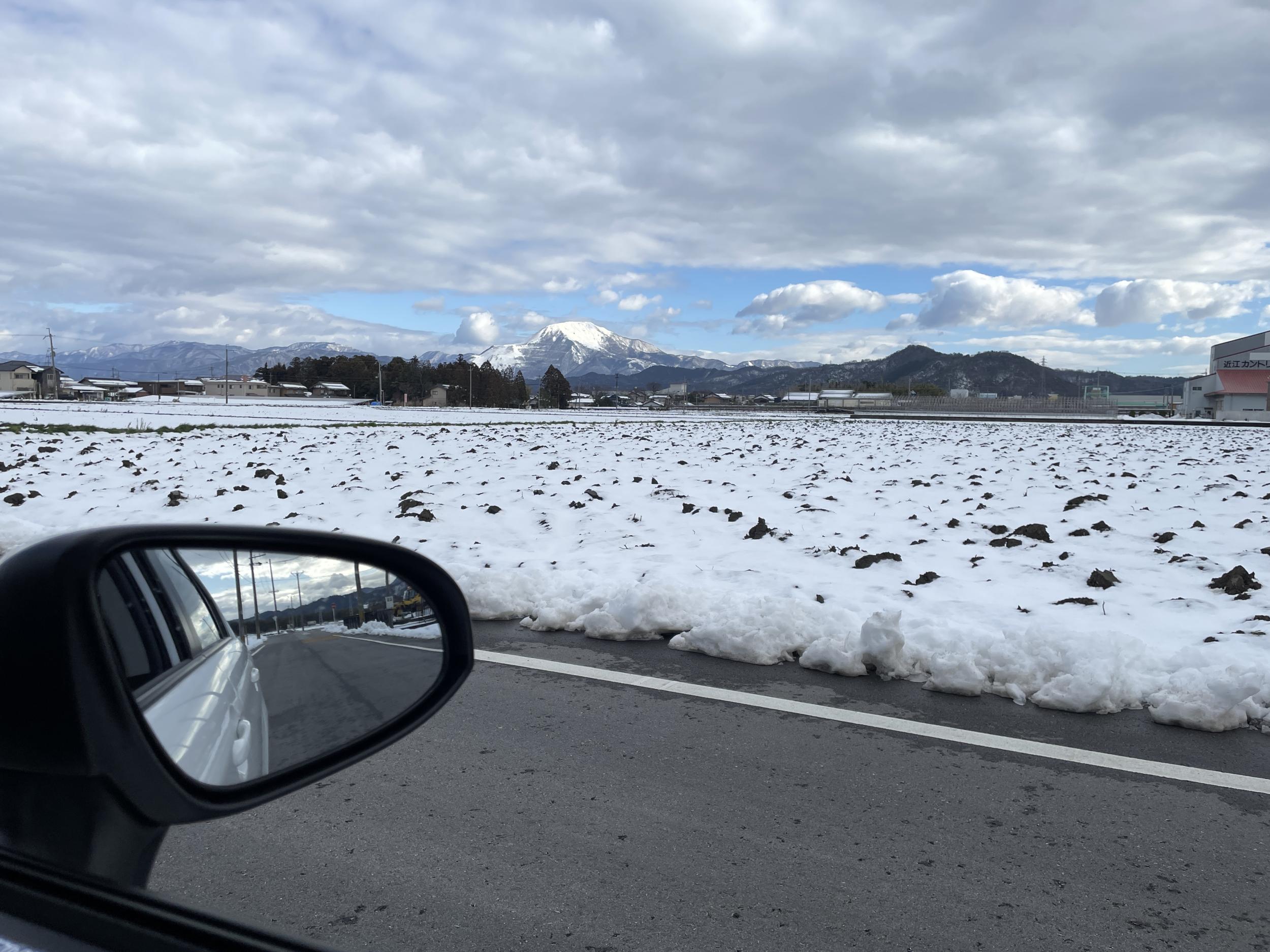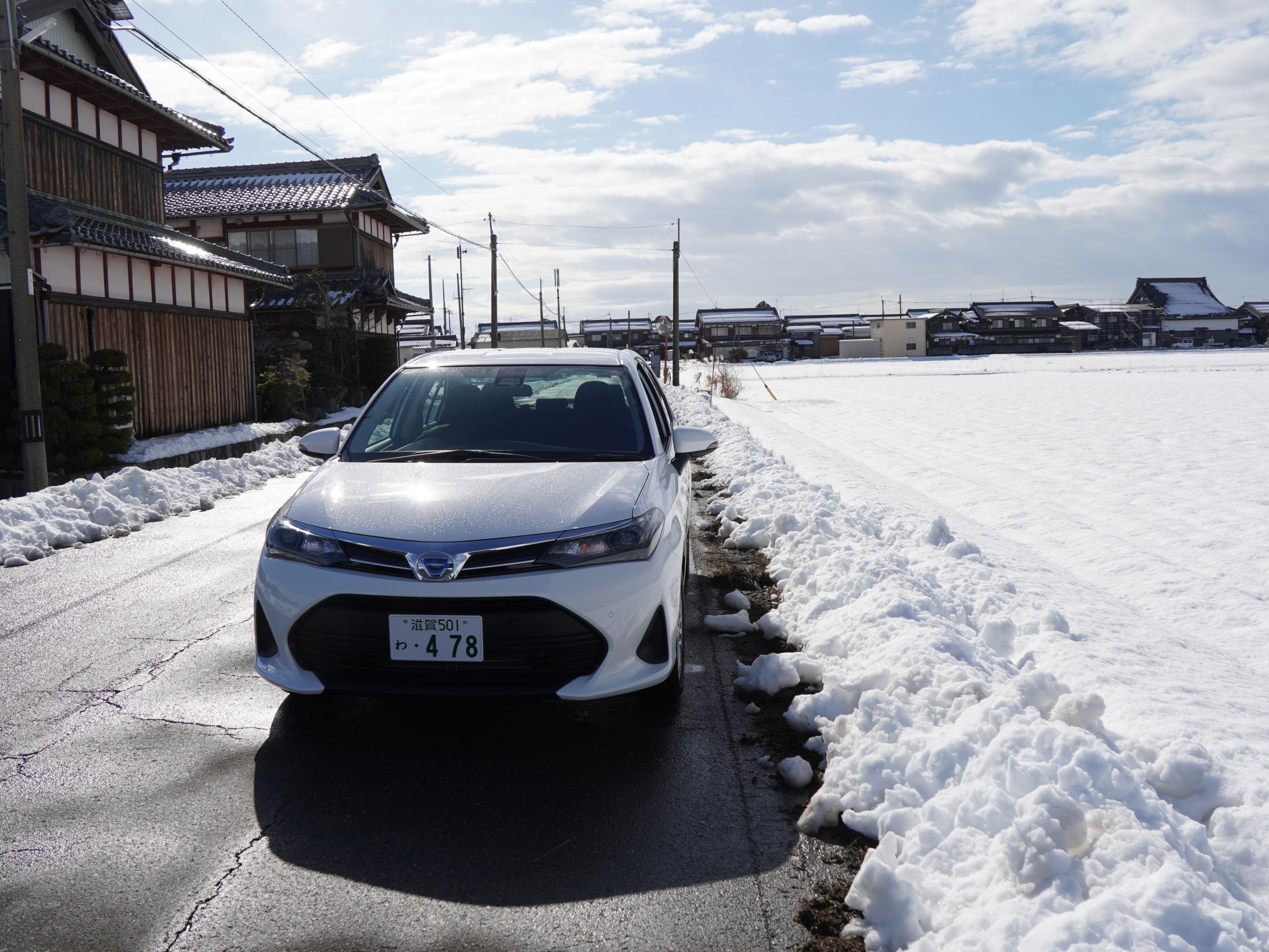駐車場には雪に覆われたままのクルマも少なくないです。平和堂が建て替えられたフレンドマートで朝ごはんを買ってトヨタレンタカーへ。昨日一番安いクラスを予約したら電話がかかってきてスタッドレスを履いたクルマに空きがないとのこと。仕方なくひとつ上でOKにしたのですが、出てきたのはアクシオというクルマ。Powerボタンでスタートは分かったものの、何の音もしなくてエンジンがかかったのかどうか分かりません。どうやらハイブリッドかEVのようです。とりあえずドライブポジションにシフトしてみると動き出しました。