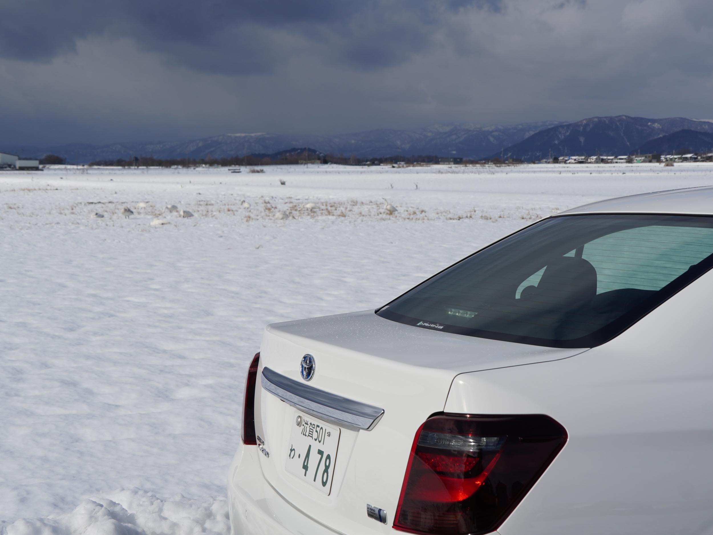 水曜木曜とこの冬一番の寒気、彦根で30cmの積雪。薄く雪の残った田んぼで二番穂を採餌しているコハクチョウは見たことがあるものの、田んぼが厚い雪で覆われた時は湖面でじっとしているのか気になります。土曜日は晴れの予報を確認して米原のレンタカーを予約しました。