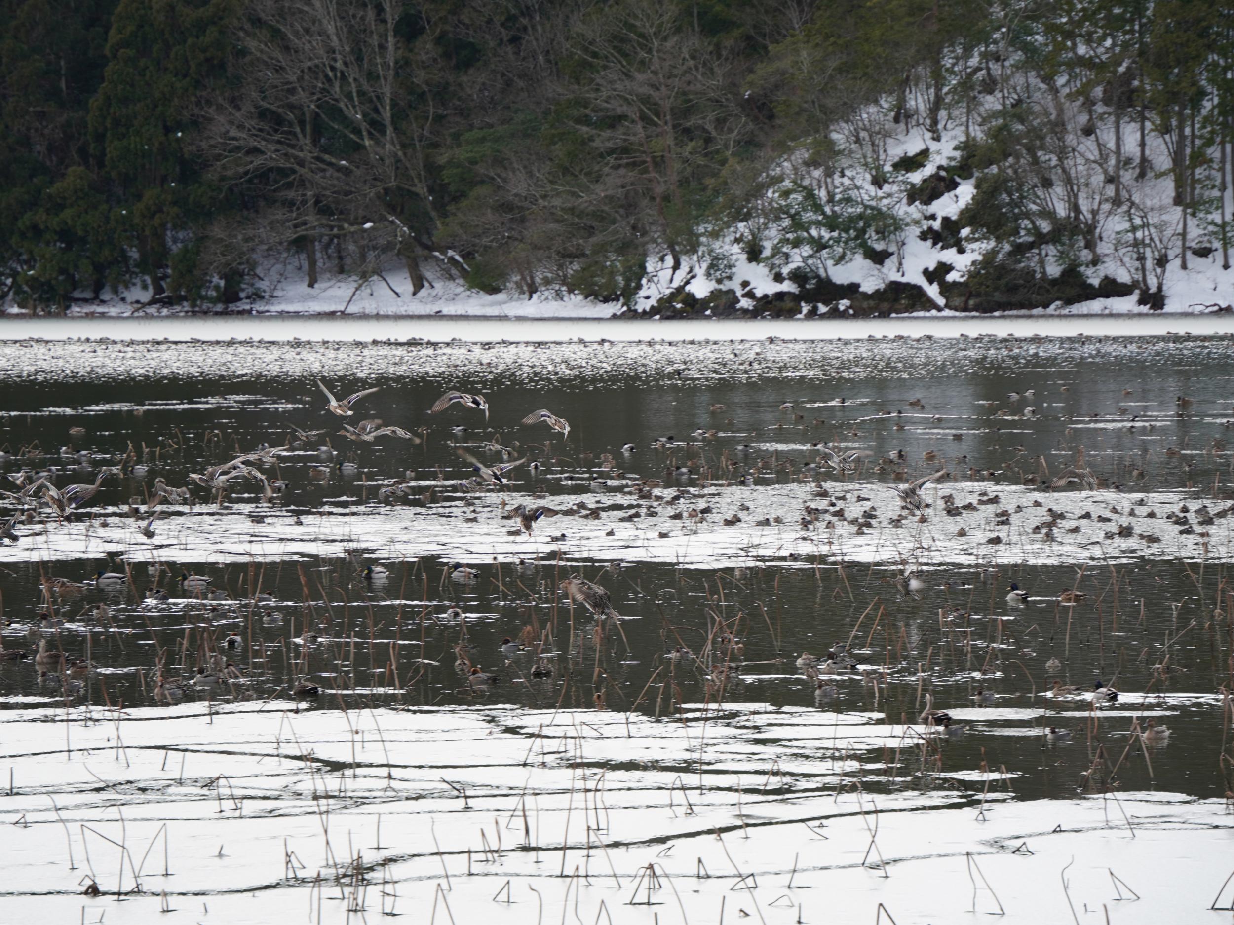 じっくりチェックしてみたものの、オナガガモの他にはマガモとコガモだけ。