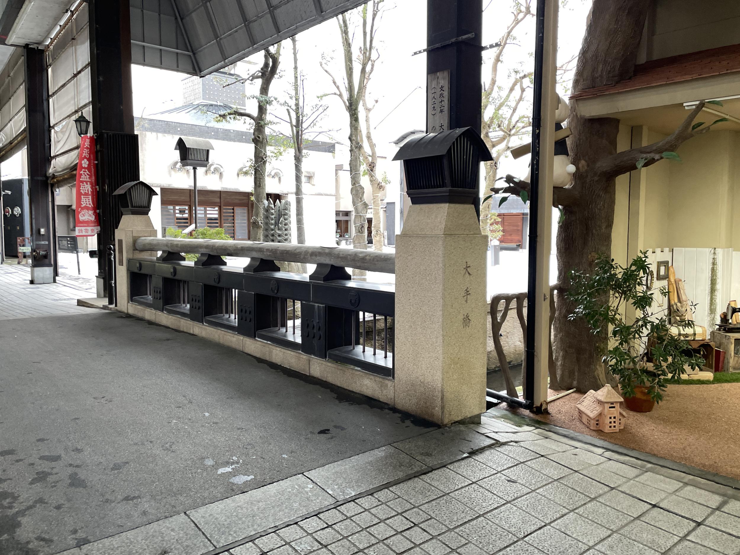 商店街の途中に橋、大手門橋だそうです。橋の向こうは曳山博物館。よほど入ってみようかと思ったのですが、閉館時間まであまりないので今度にします。今日は諦めたり、今度にしたり、ばかりです。