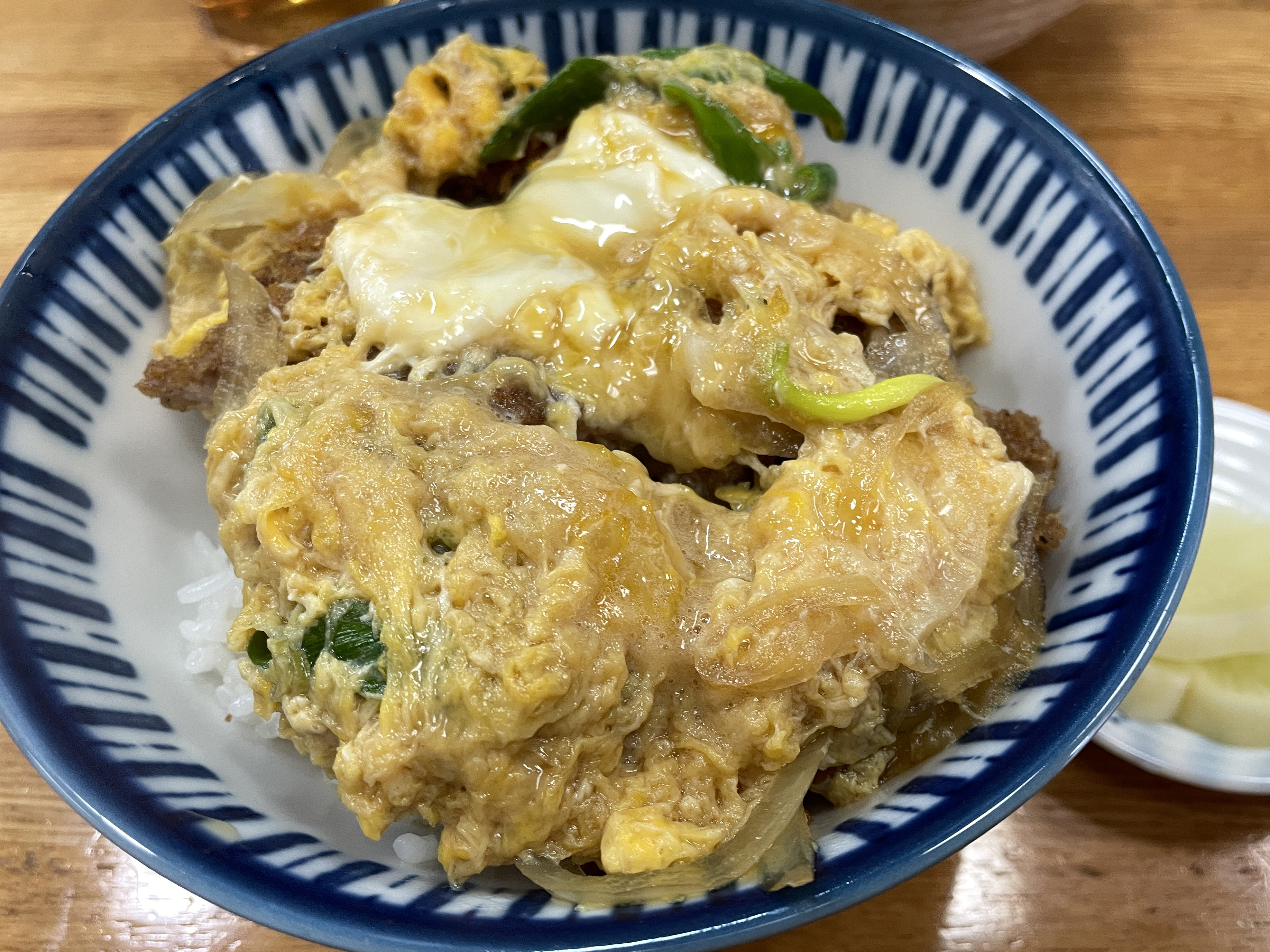 毎週1回は食べてる近所のカツ丼セットと比べてカツの厚さや大きさは全く遜色なく、タレはいつものお店よりずっと薄味なものの、接客も感じ良くて美味しいのですが、薄味のせいか、ボリュームがすごすぎるせいか完食できませんでした。ちなみに週1で食べてるカツ丼はこちら。やはりたまごの色がだいぶ違ってます。