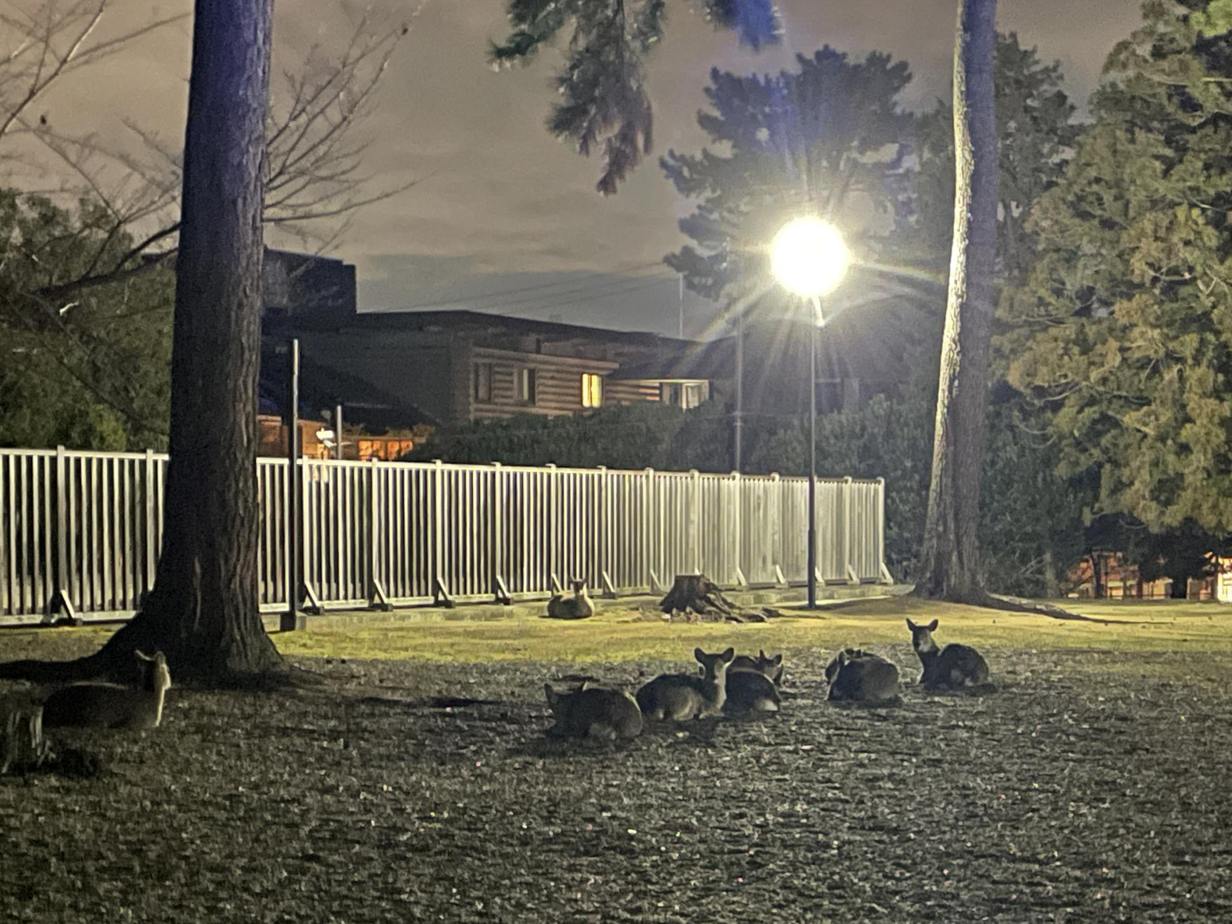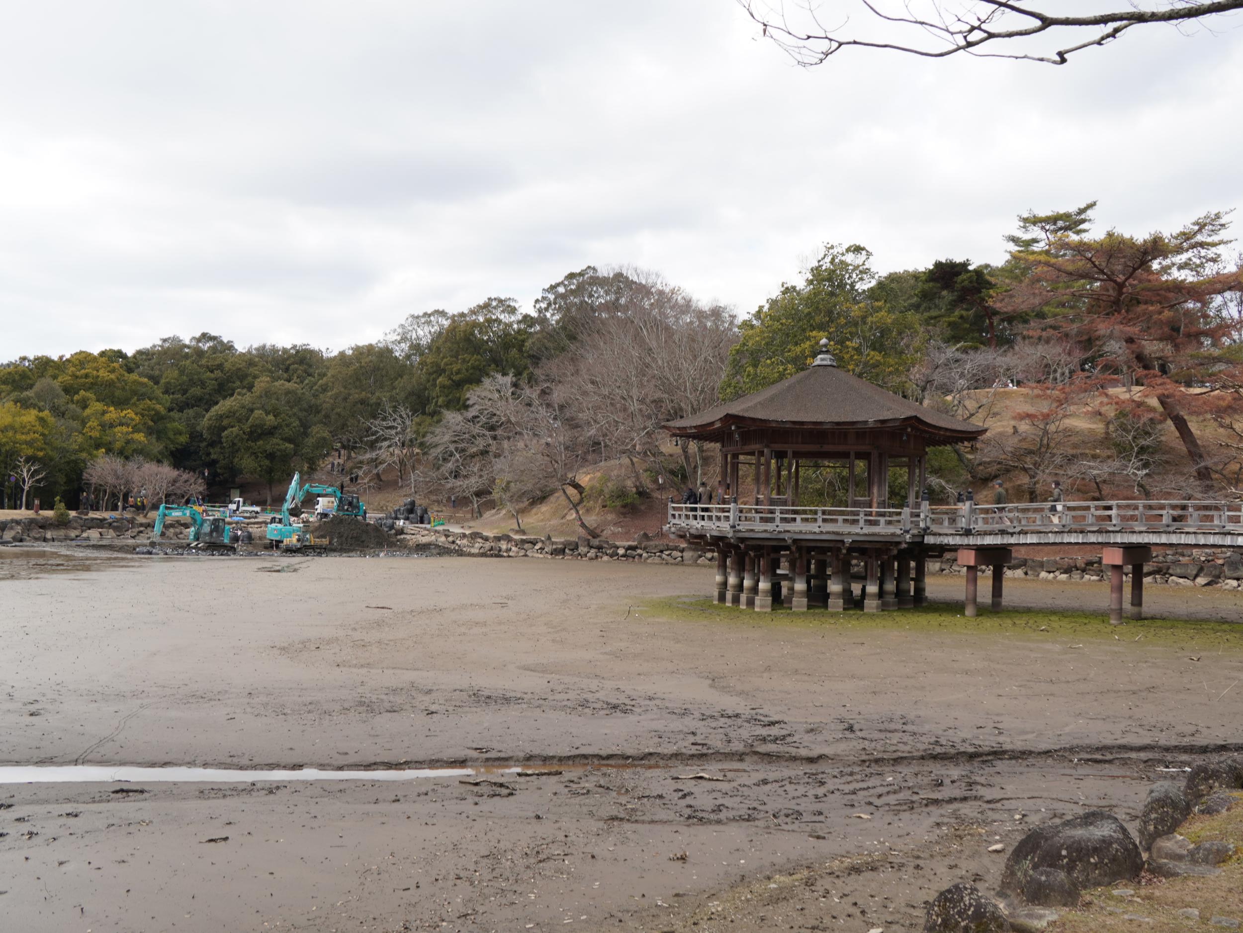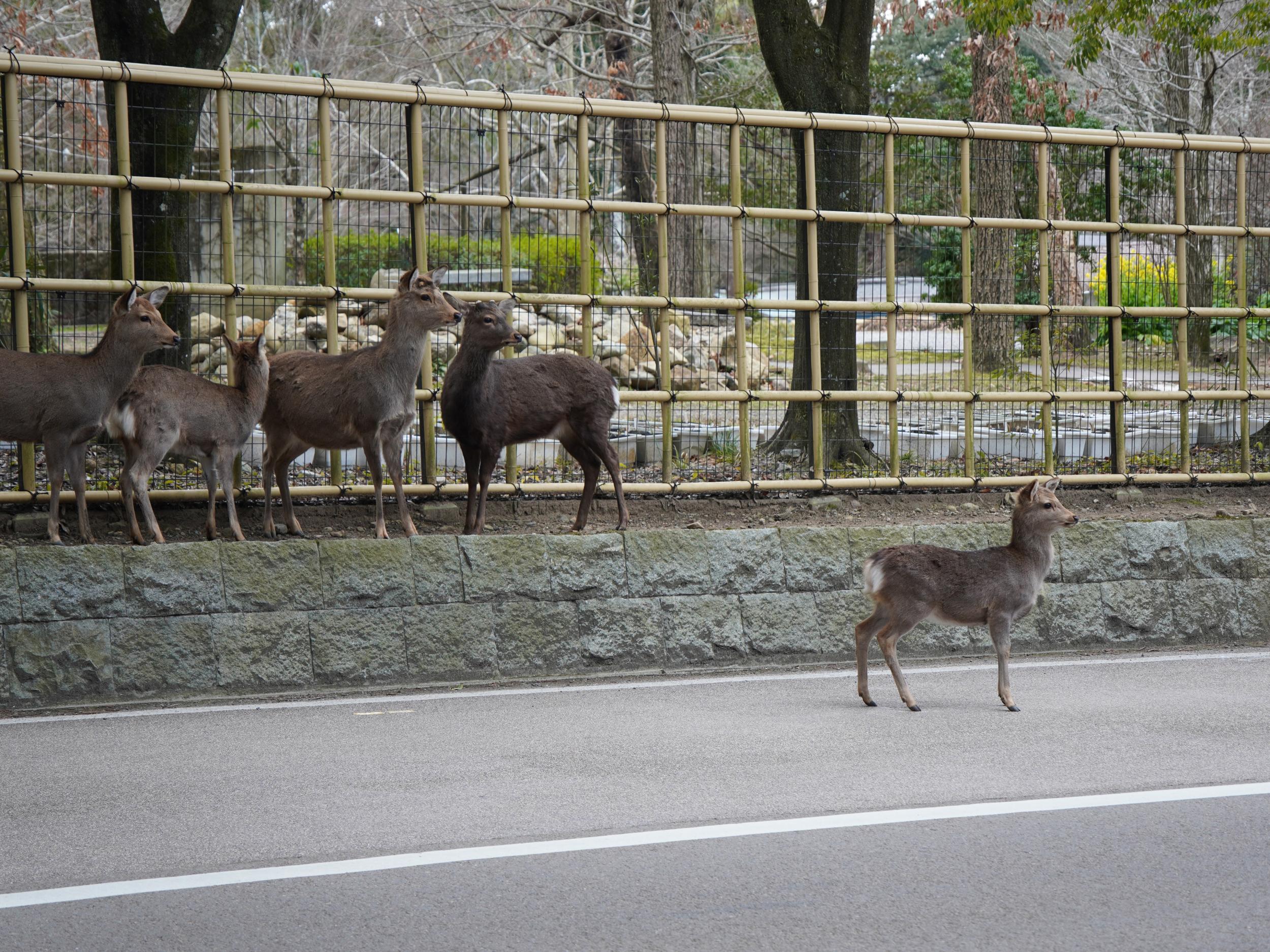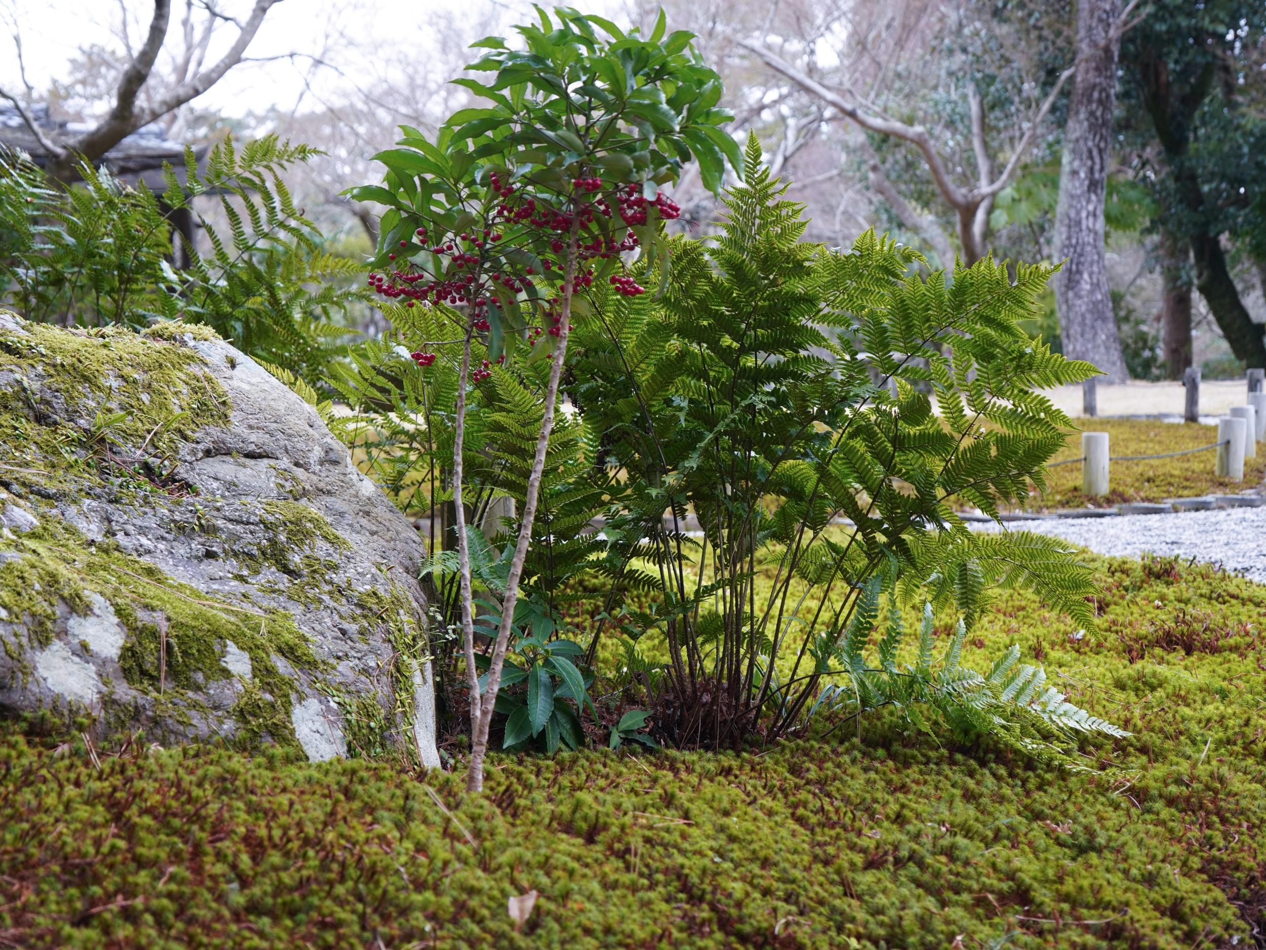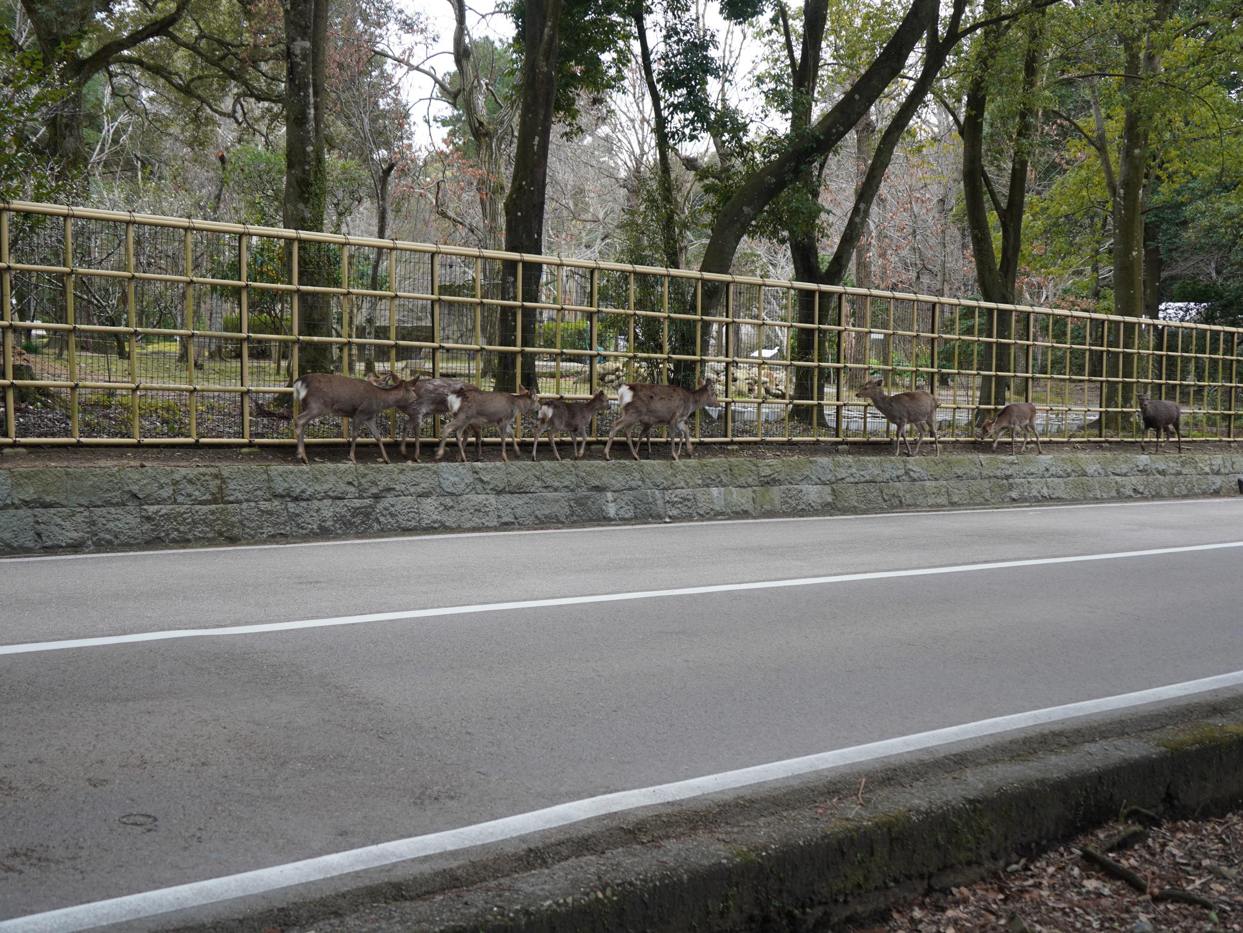 足立美術館との比較で紹介されていたのが20年連続第2位にランクされている桂離宮、指をくわえて外から眺めたことしかないのですが、地面が白砂と芝生の足立美術館に対してコケの地面の桂離宮のコケが剥がれたり、スギゴケが他の品種のコケに変わってしまったりと、いささか寂しい景色になっていました。テレビでは温暖化が原因としていたのですが、冬でも美しいスギゴケが園内の地面を覆っていたはずの吉城園が心配になって奈良公園へ向うことにしました。