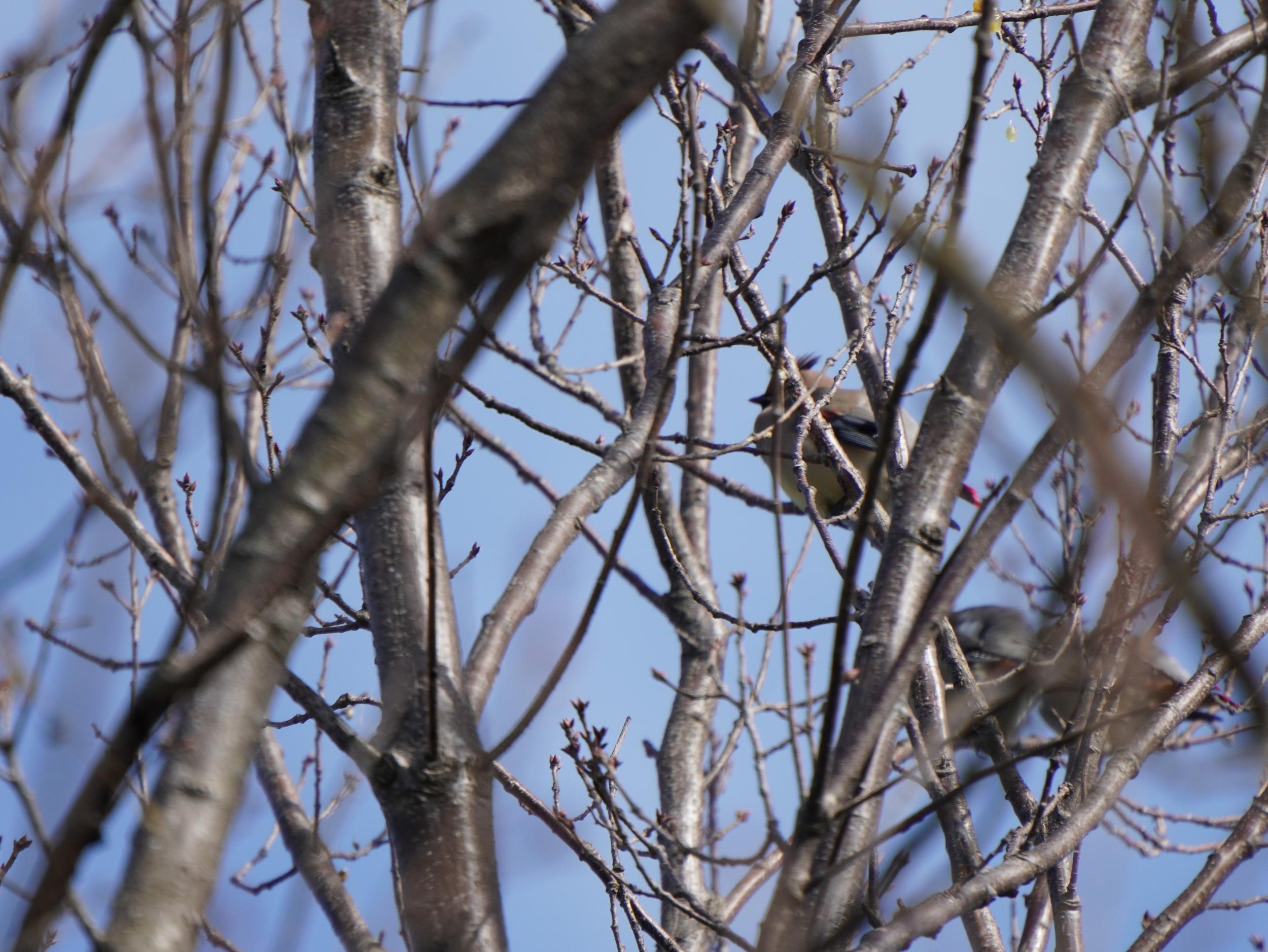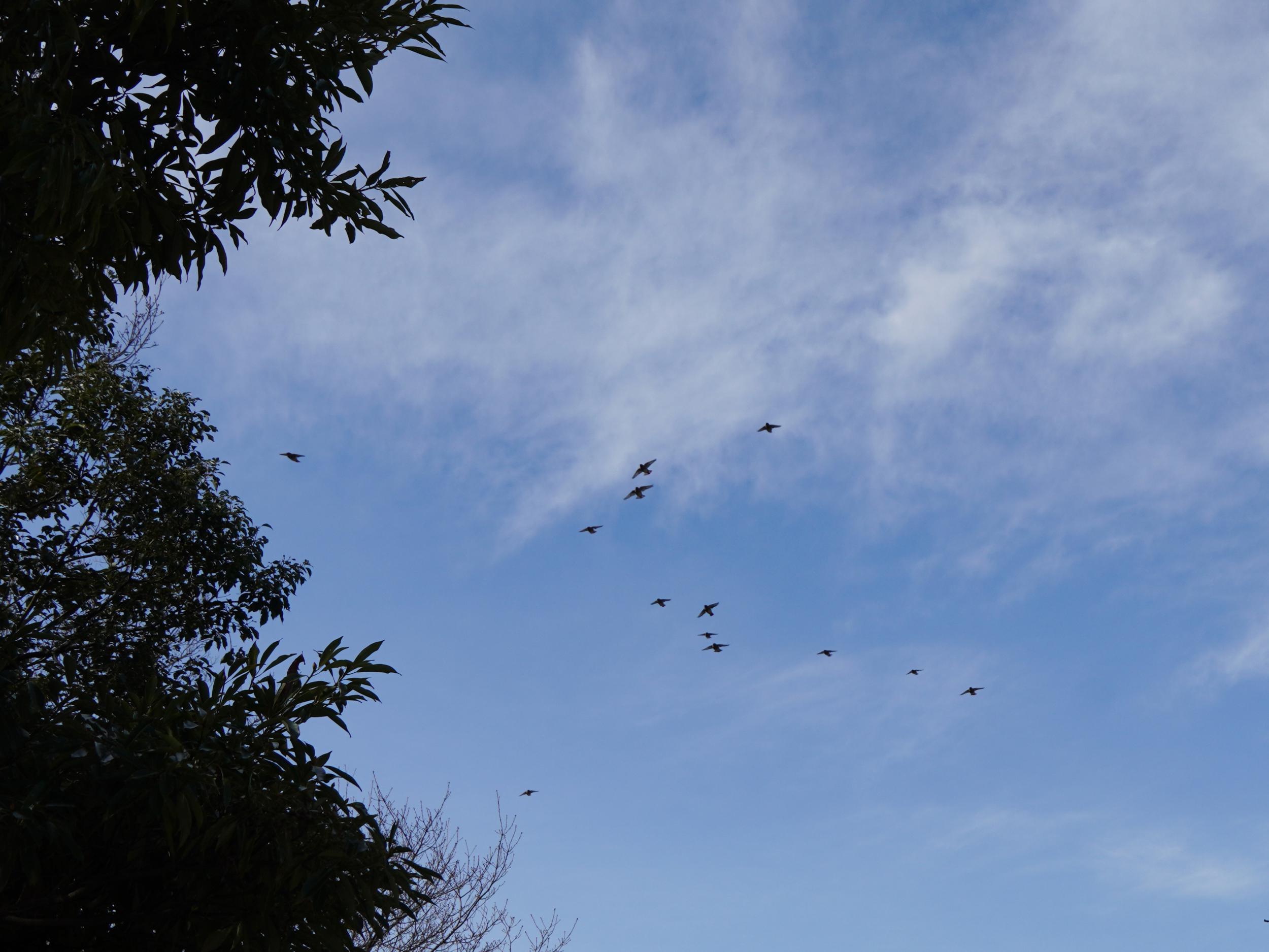 湖北野鳥センターに到着すると上空にムクドリサイズの十数羽。