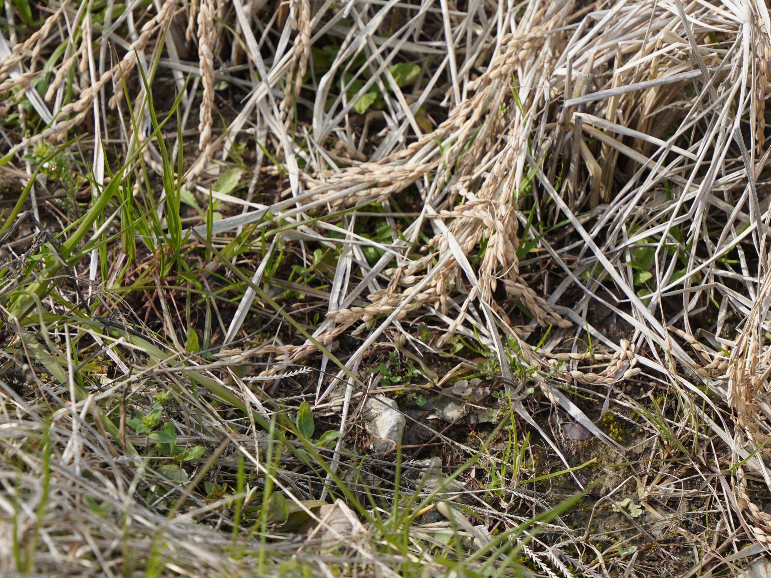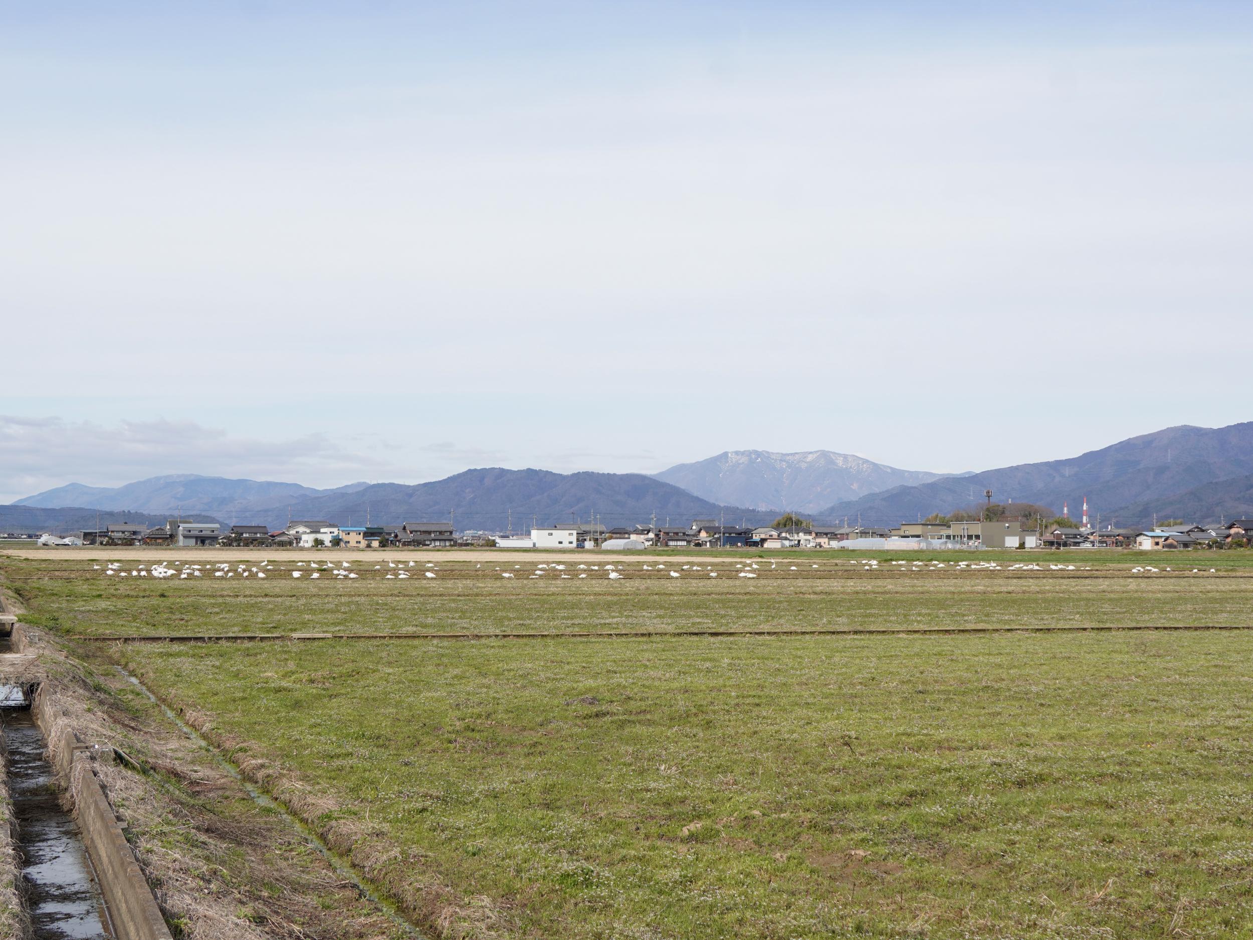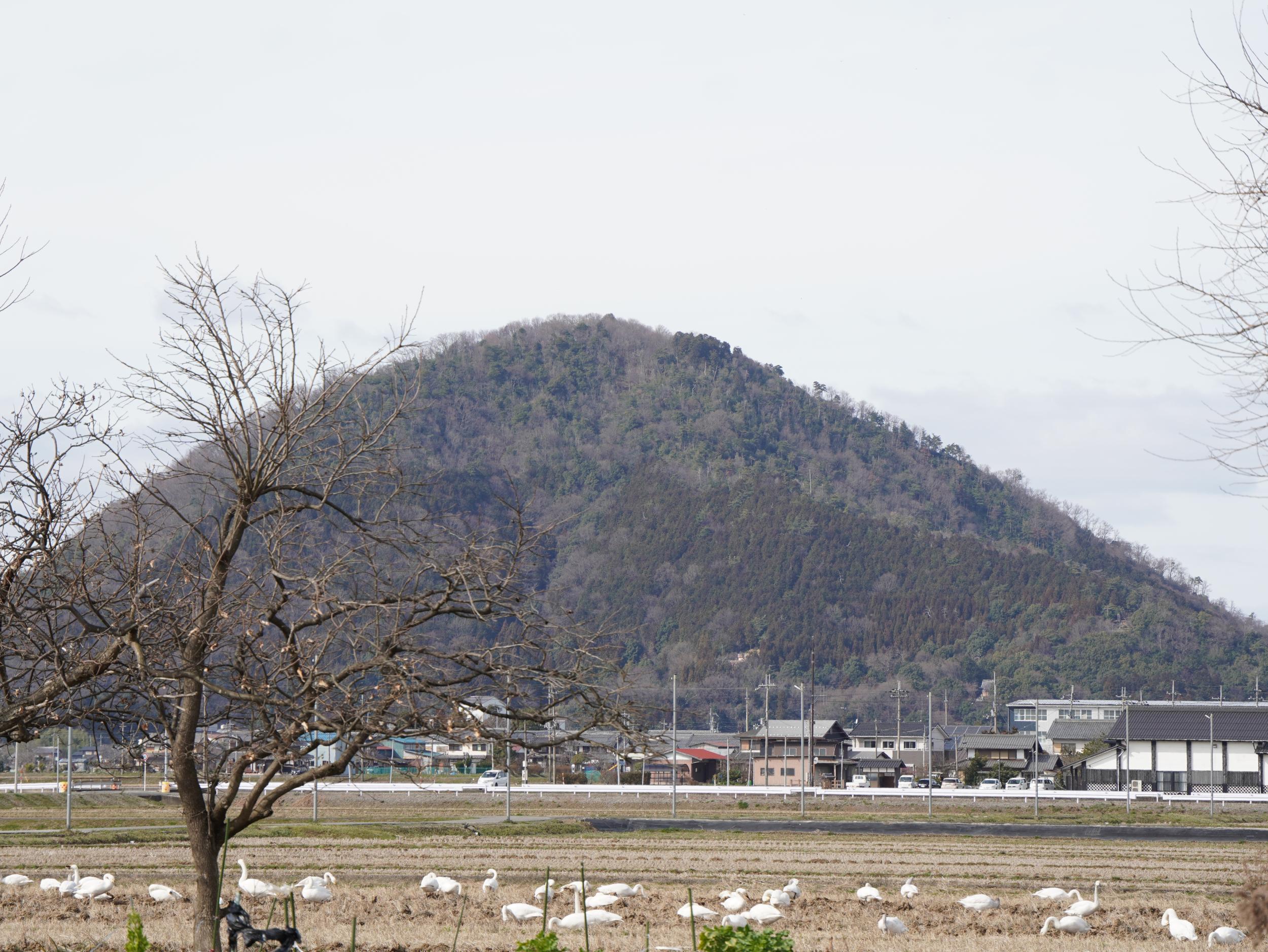 来た道を辿り、2年前の3月にコハクチョウたちと遊んだ高月町宇根辺りで目を凝らして探すも見つからず。上掲のコハクチョウなうマップの青いマーカー周辺も見当たらず、今日はダメかと弱気になったら、その少し南、コハクチョウなうマップの紫色マーカーの辺りで白い点々、漸く漸く会えました。