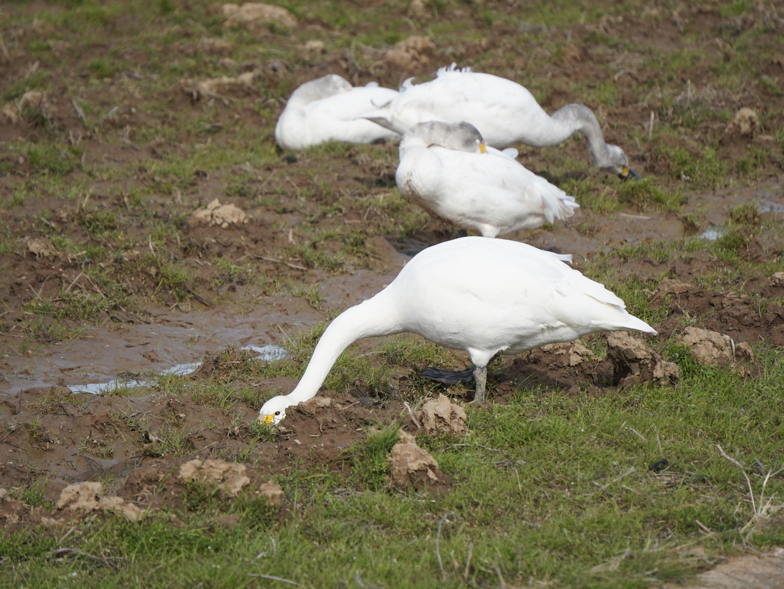 強風の中、延々と続くコハクチョウのもぐもぐタイムです。