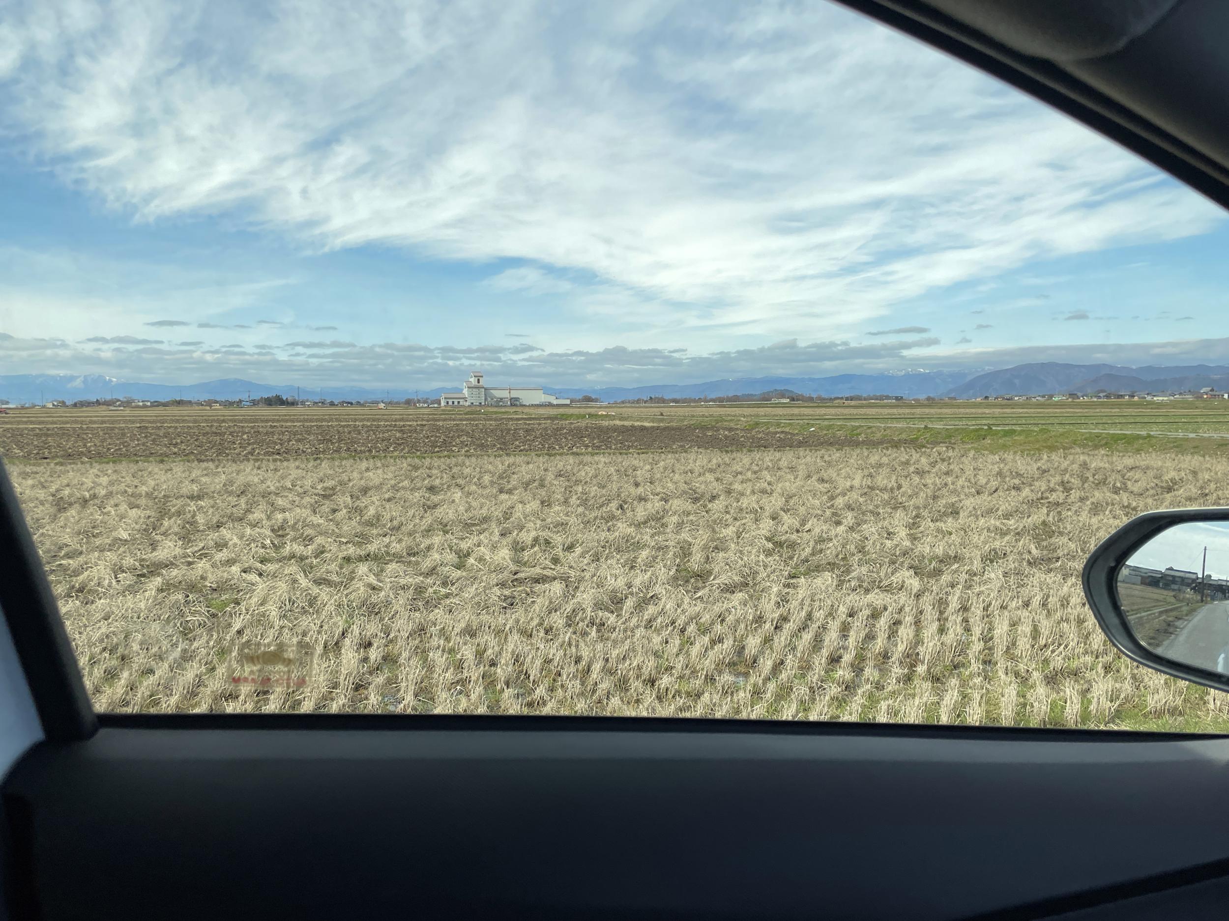 ナビを設定せずに湖岸道路を北へ。まずは早崎内湖をチェック、カモたちはたくさんいるもののコハクチョウは見当たりません。既に田んぼへ出勤した可能性が高そうです。引き返してJA北びわこカントリーエレベーターへ。1ヶ月前雪原に11羽いたのですが、今日は1羽もいません。