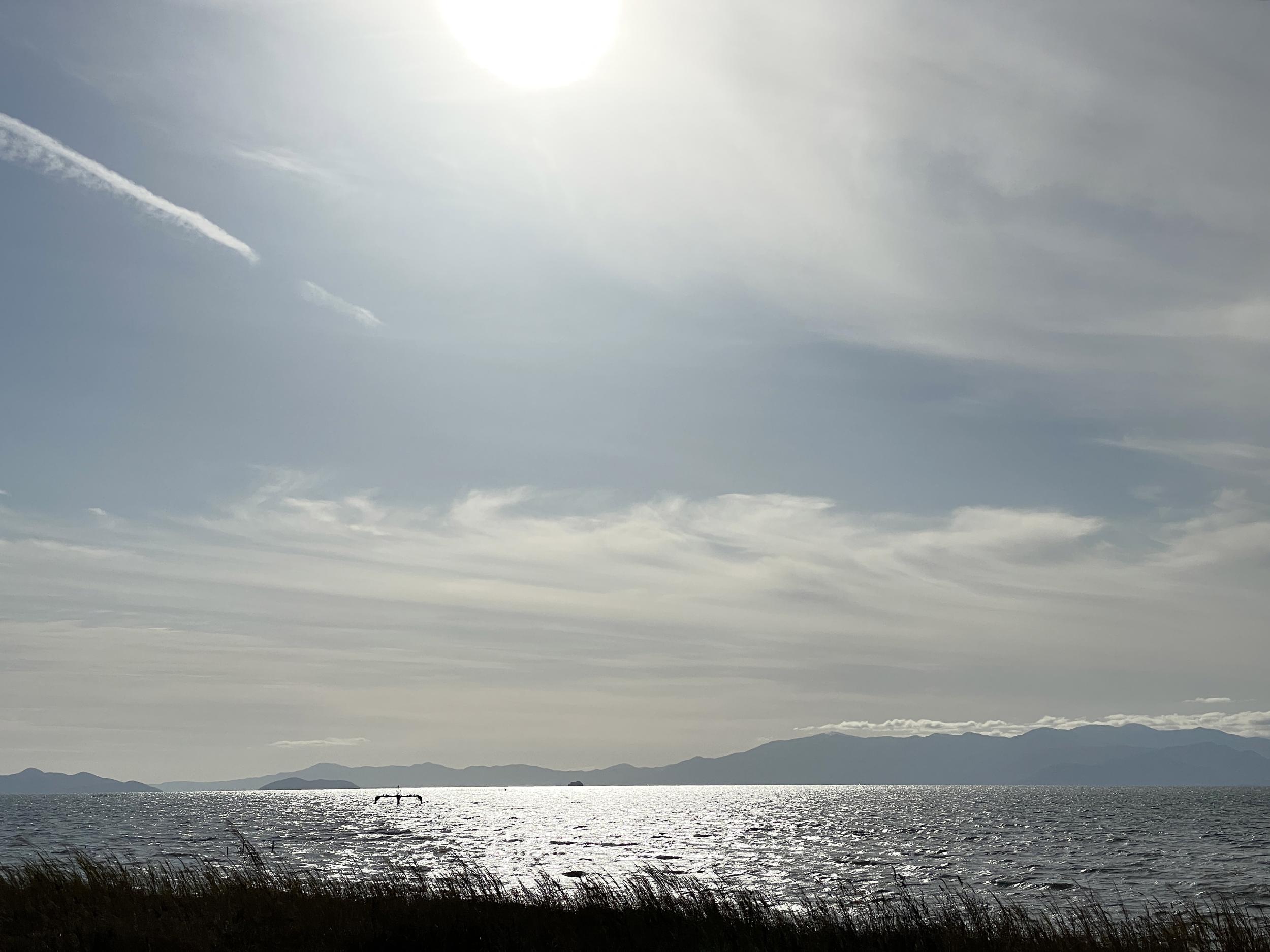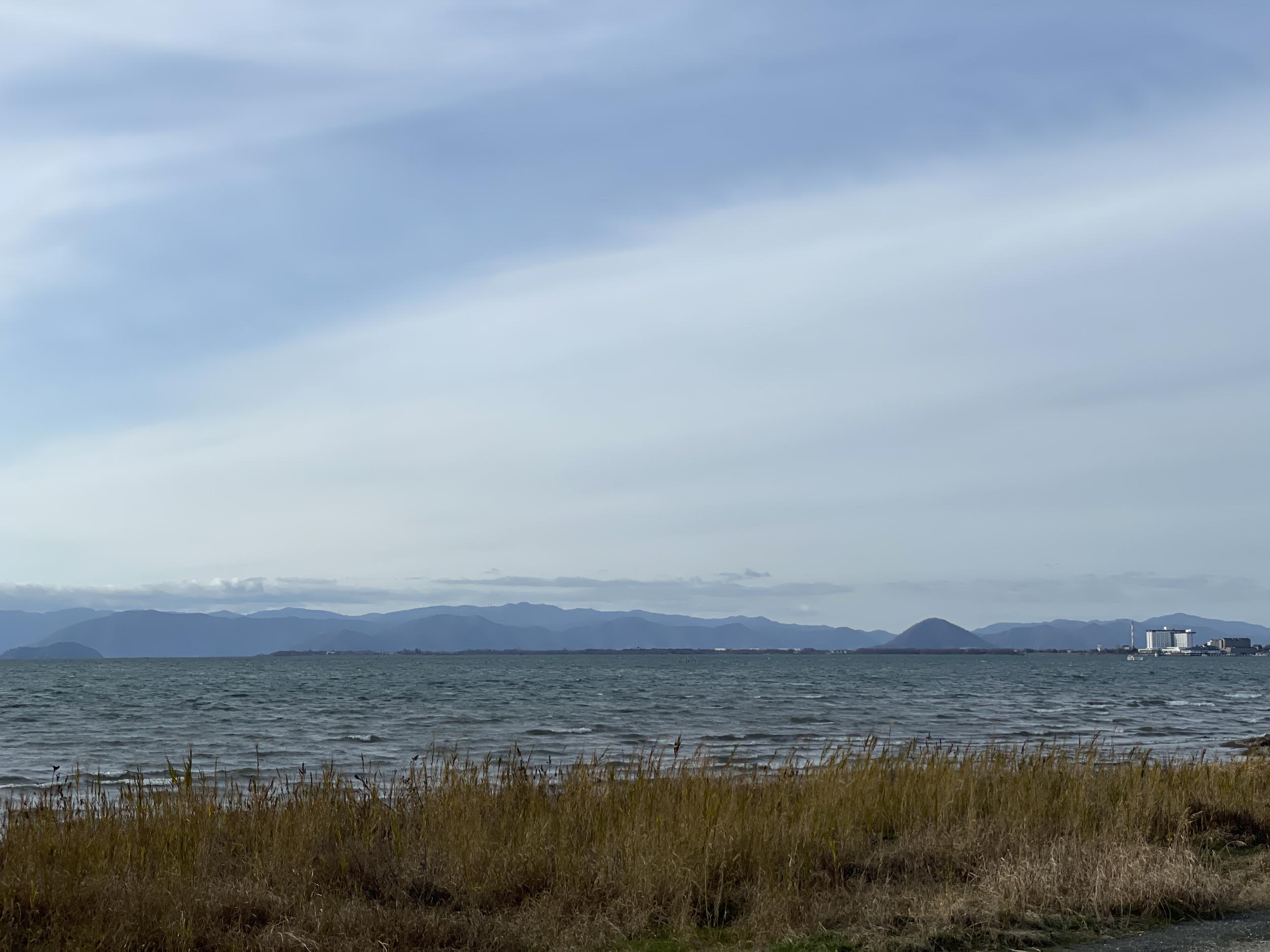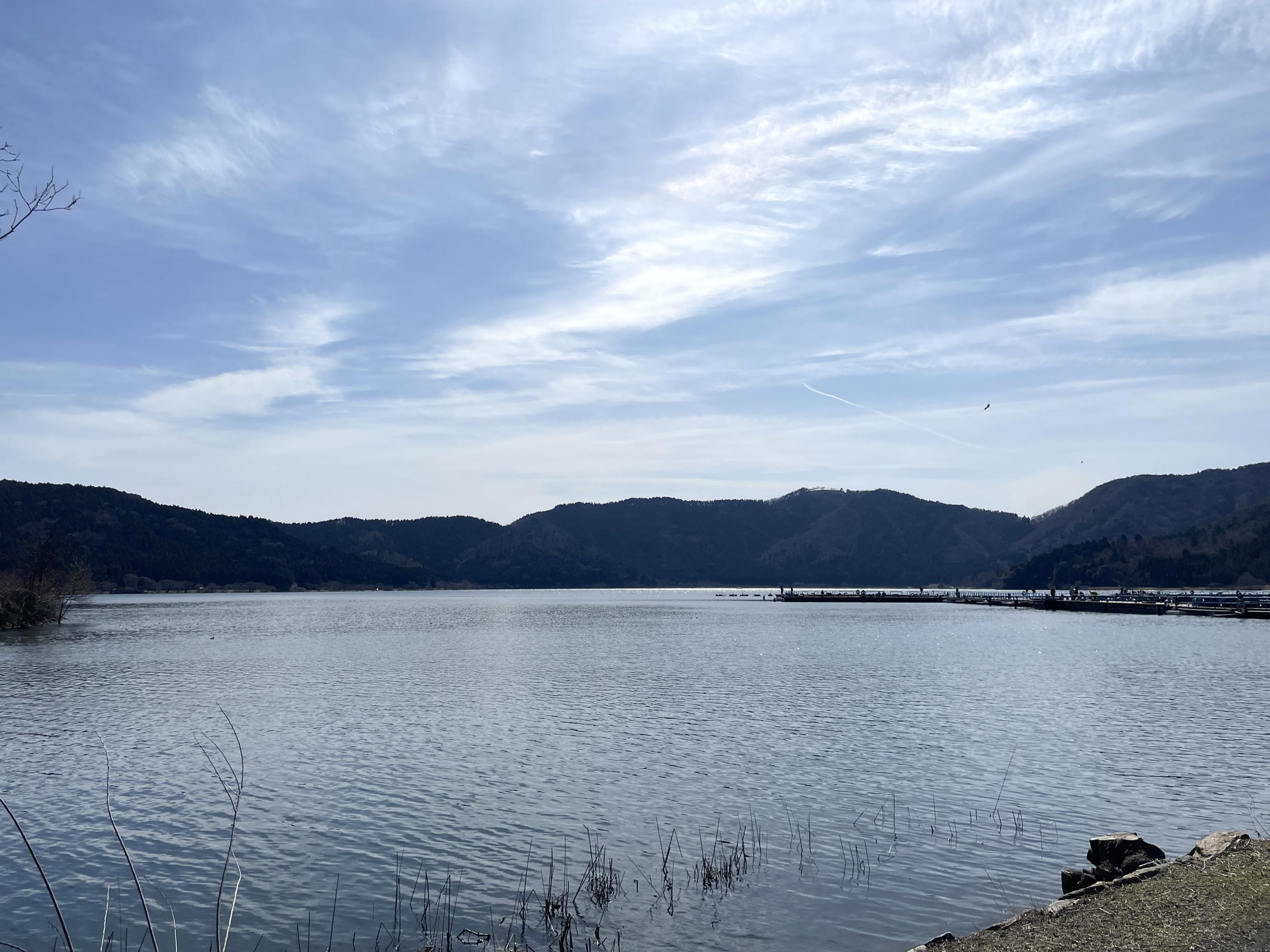 以前から来てみたかった余呉湖です。正面は賤ヶ岳でその向こうは琵琶湖ですが水面の標高差が50mもあるそうです。右手からワカサギ釣りの桟橋が伸びていて賑わっています。コガモらしきがいっぱい浮かんでいるもののほぼ爆睡中です。
