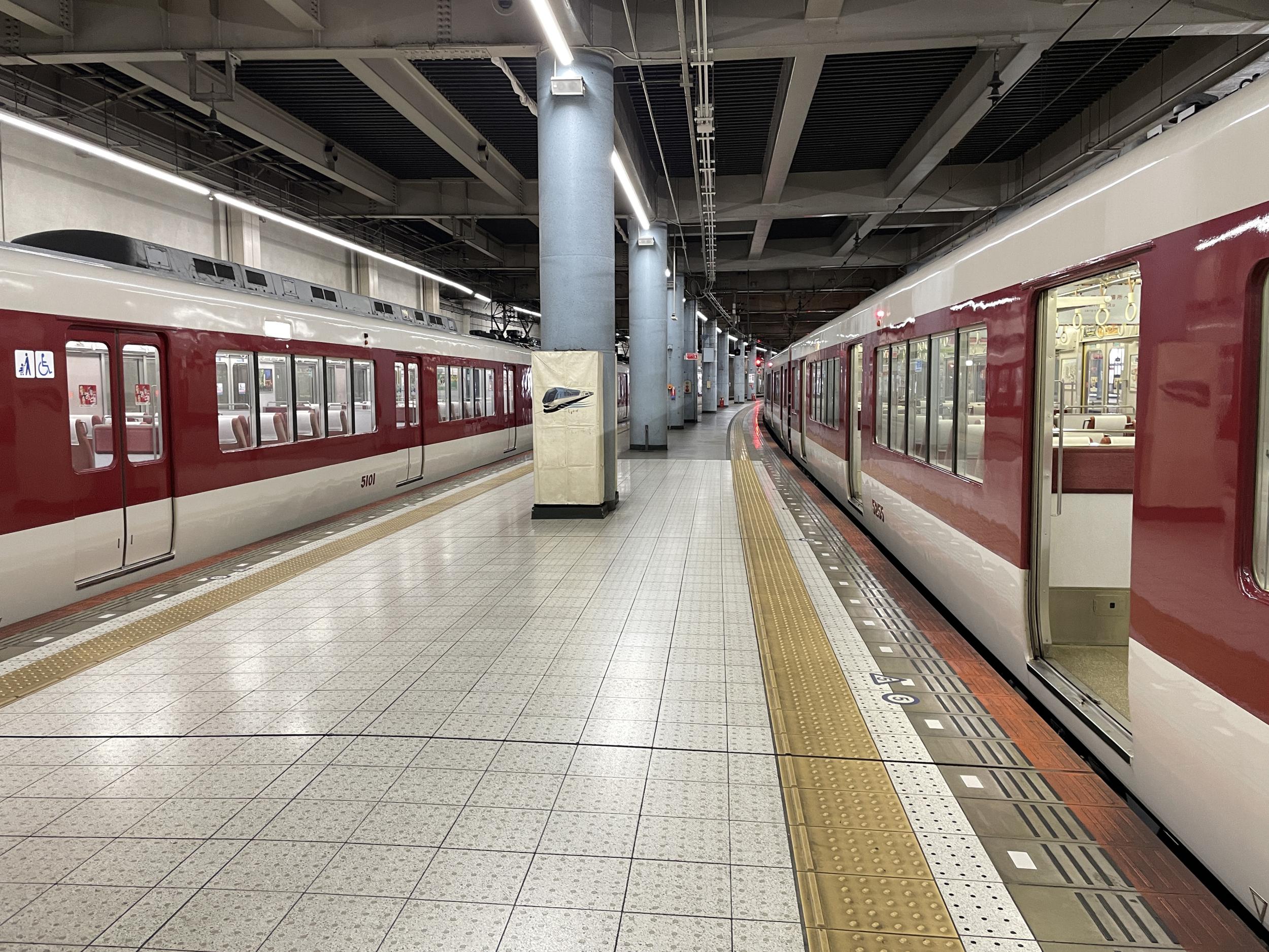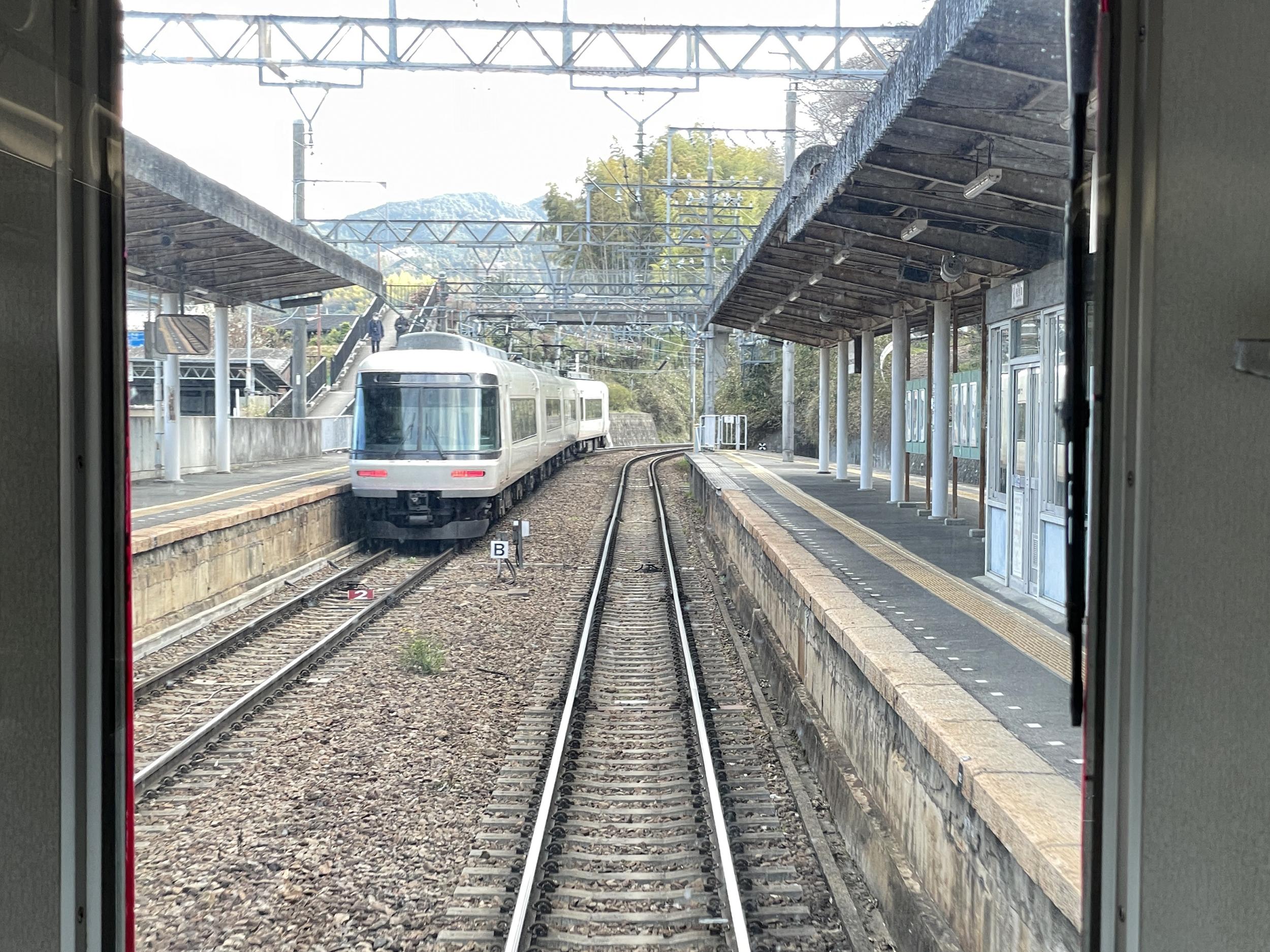 八木で20分待ち、その間久しぶりに撮り鉄。3番線から難波行アーバン、4番線から京都行伊勢海老ライナー、1番線に五十鈴川行急行、2番線名古屋行ひのとり(通過)です。手すりに肘を付けて撮ったのに揺れてます。