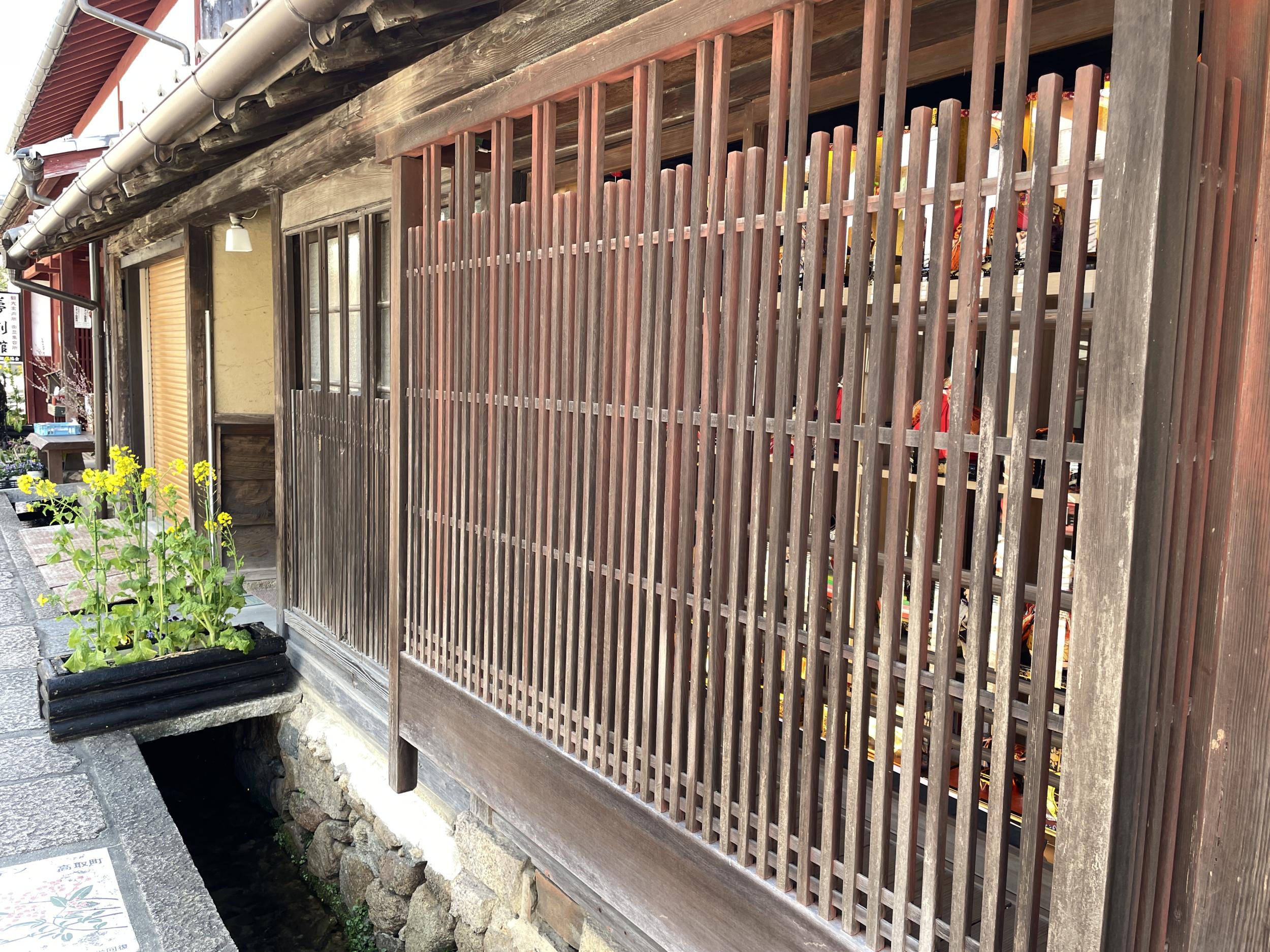 座卓が2つの座敷と窓際にカウンター席が4つほどだけの小さなお店、ざるそば大盛りに炊き込みご飯を追加。お手洗いを借りようとしたら外に出て左手奥とのこと、隣家との路地をずっと奥まで歩くと清潔なお手洗い、かなり大きな古民家をリノベしたものと分かります。そばに海苔がかかっていないので、関東だとこれはおおざるじゃない、おおもりじゃないか、と言われそうですが、とても美味しくいただきました。お勘定を済ませて帰ろうとすると上り框に靴が出されていたりと、とても気持ちのいい接客が嬉しい。表からお店を撮るとさほど古い建物ではないものの、この地ならではの厨子二階建てです。