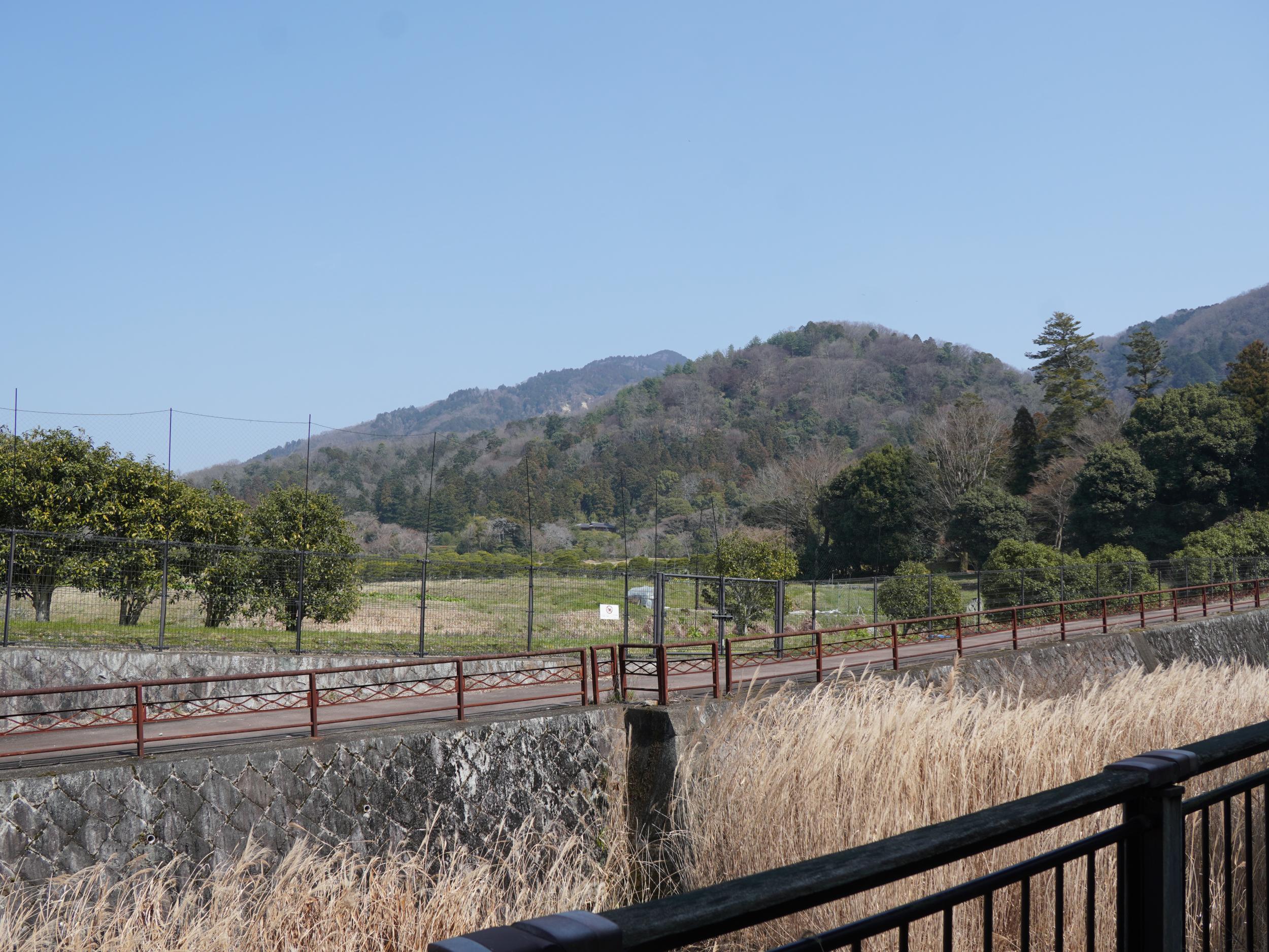 バッグに入ったままのおかずパンを音羽川砂防ダムで食べることにしました。前回は指を加えて眺めるだけだった音羽川からの修学院離宮、今や山の麓に見える建物は隣雲亭と分かります。