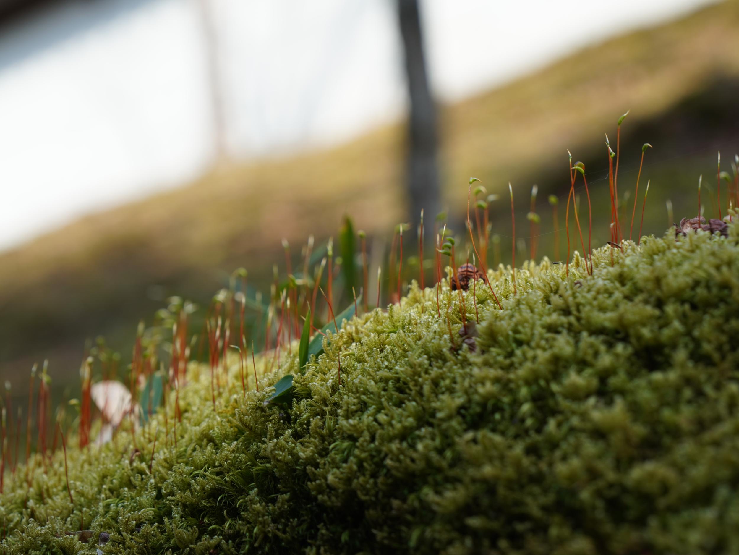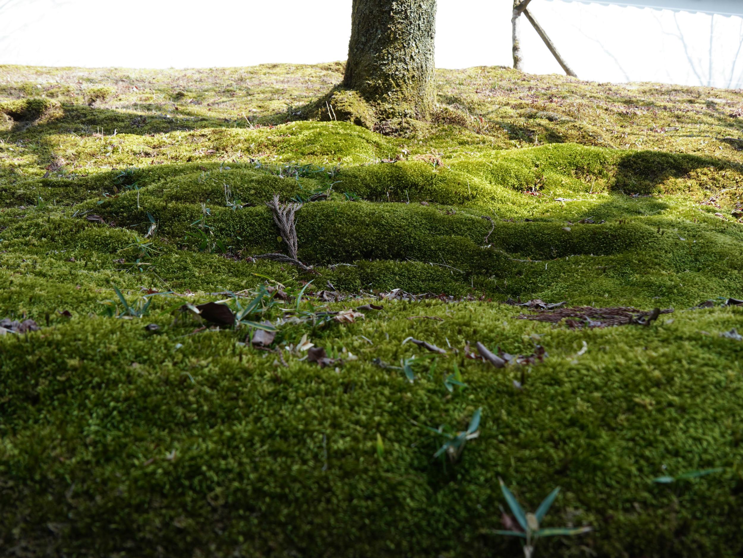 穏やかな海のように波打った苔、木の根で盛り上がっているのかと思いきや、まんじゅう苔とも呼ばれるオキナゴケのようです。苔の種類はどうにも苦手だったのですが、このページが参考になりました。