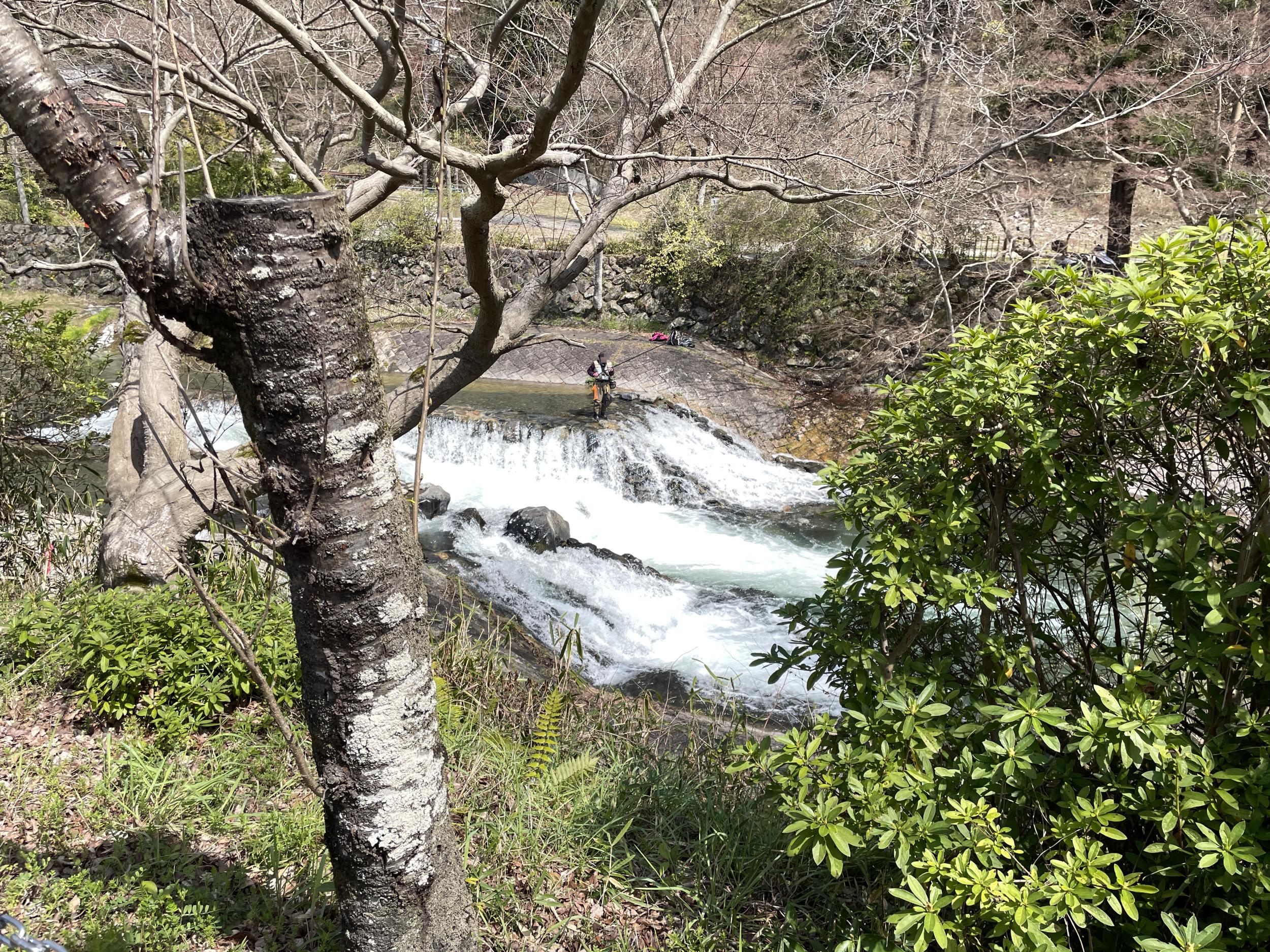 駅前で渓流釣りの人、ターゲットはアマゴあたりと思われますが、カワガラスは不在。