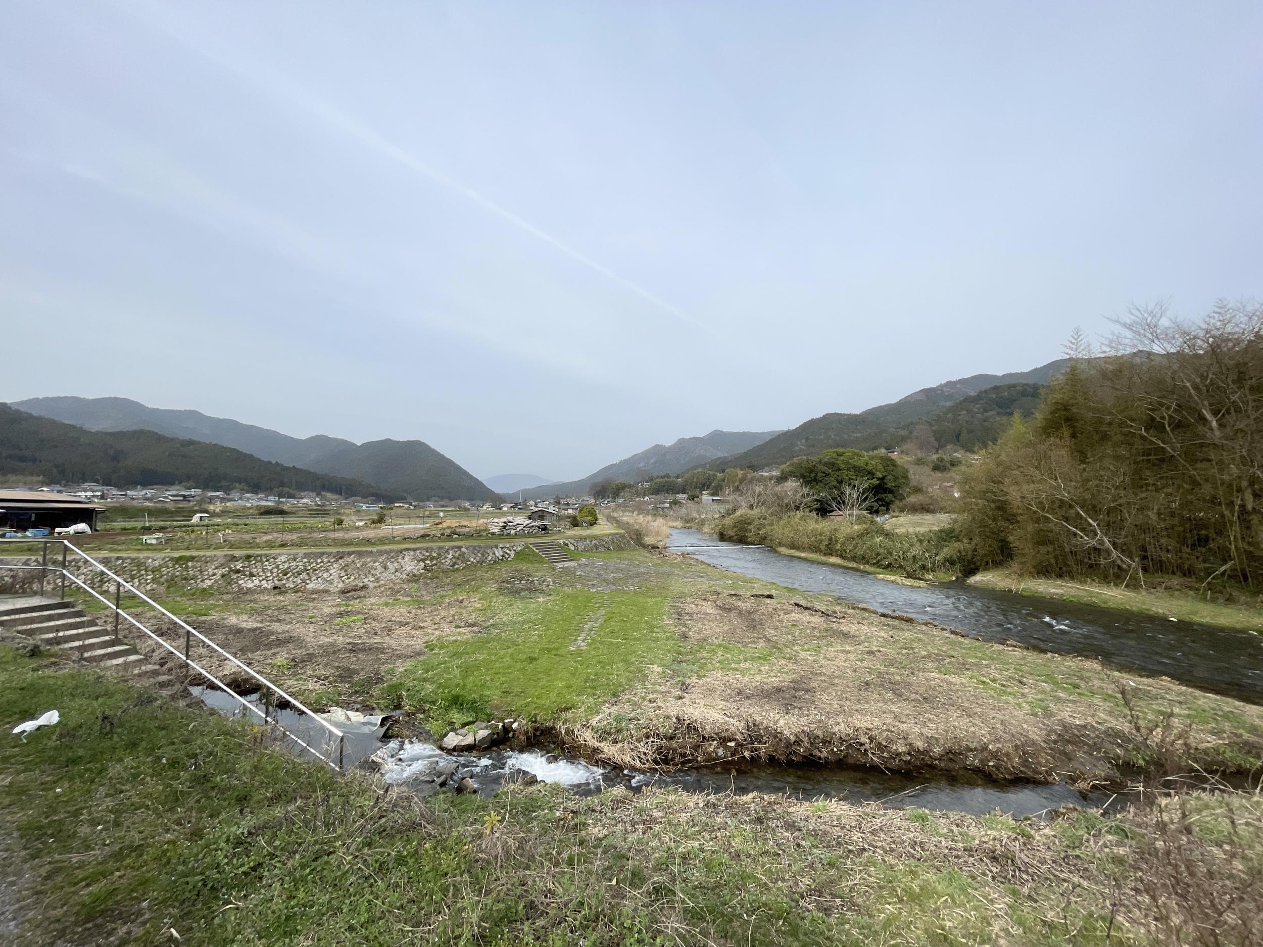 元井出端から望む大原盆地。谷はさらに広がり宮川という小川が高野川へ合流する地点です。