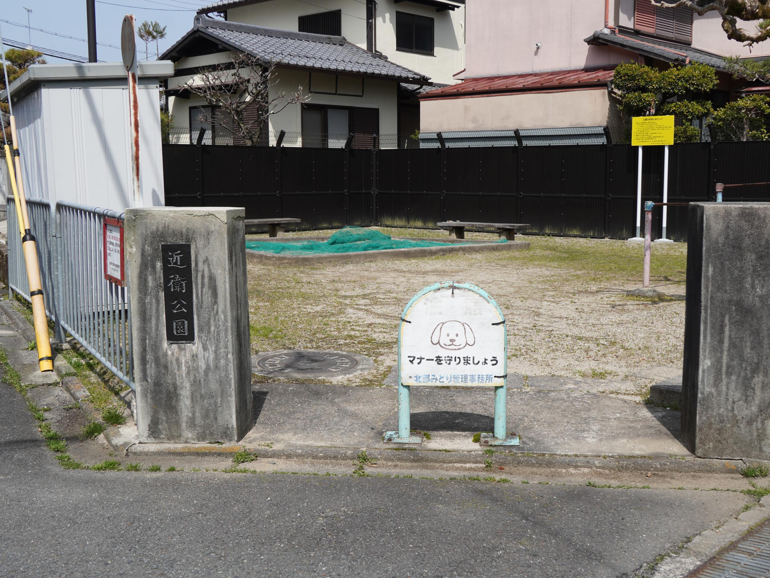 住宅地に入ると何の変哲もない近衛公園、周囲に遊べる場所がいっぱいありこの公園はあまり利用されていないようで砂場にはネットが掛けられていました。