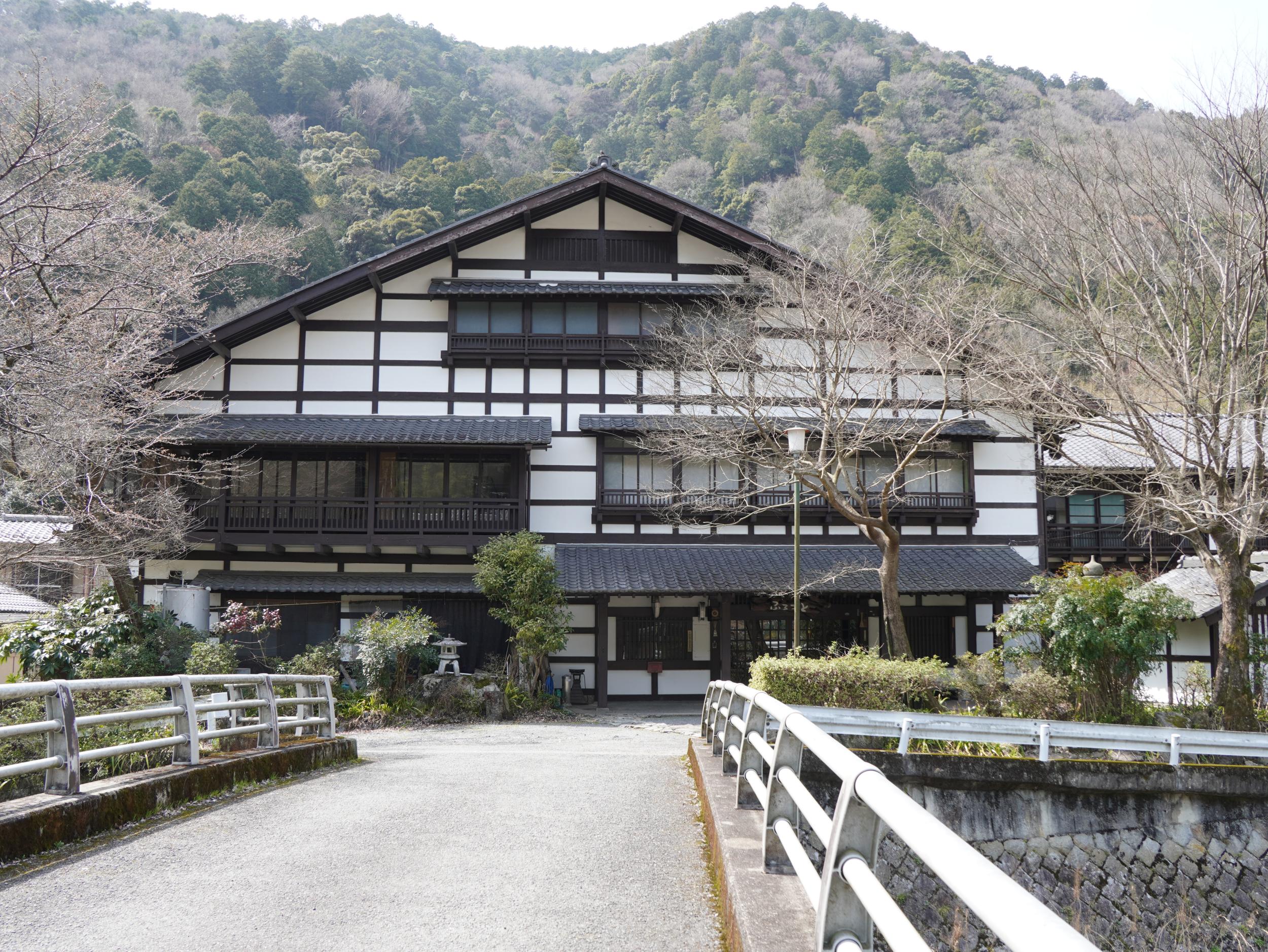 「八瀬かまぶろ温泉ふるさと」です。近くにある「ふるさと前」バス停の謎が解けました。日帰り入浴もできる宿ですが、コロナ以降ずっと休業のままのようです。和式サウナのかまぶろに入浴でき、庭には壬申の乱で矢を受けた大海人皇子が傷を癒やしたかまぶろの史跡が残されているそうです。背に矢の矢背が八瀬の語源らしい。営業再開されたらぜひ再訪してみたいと思います。