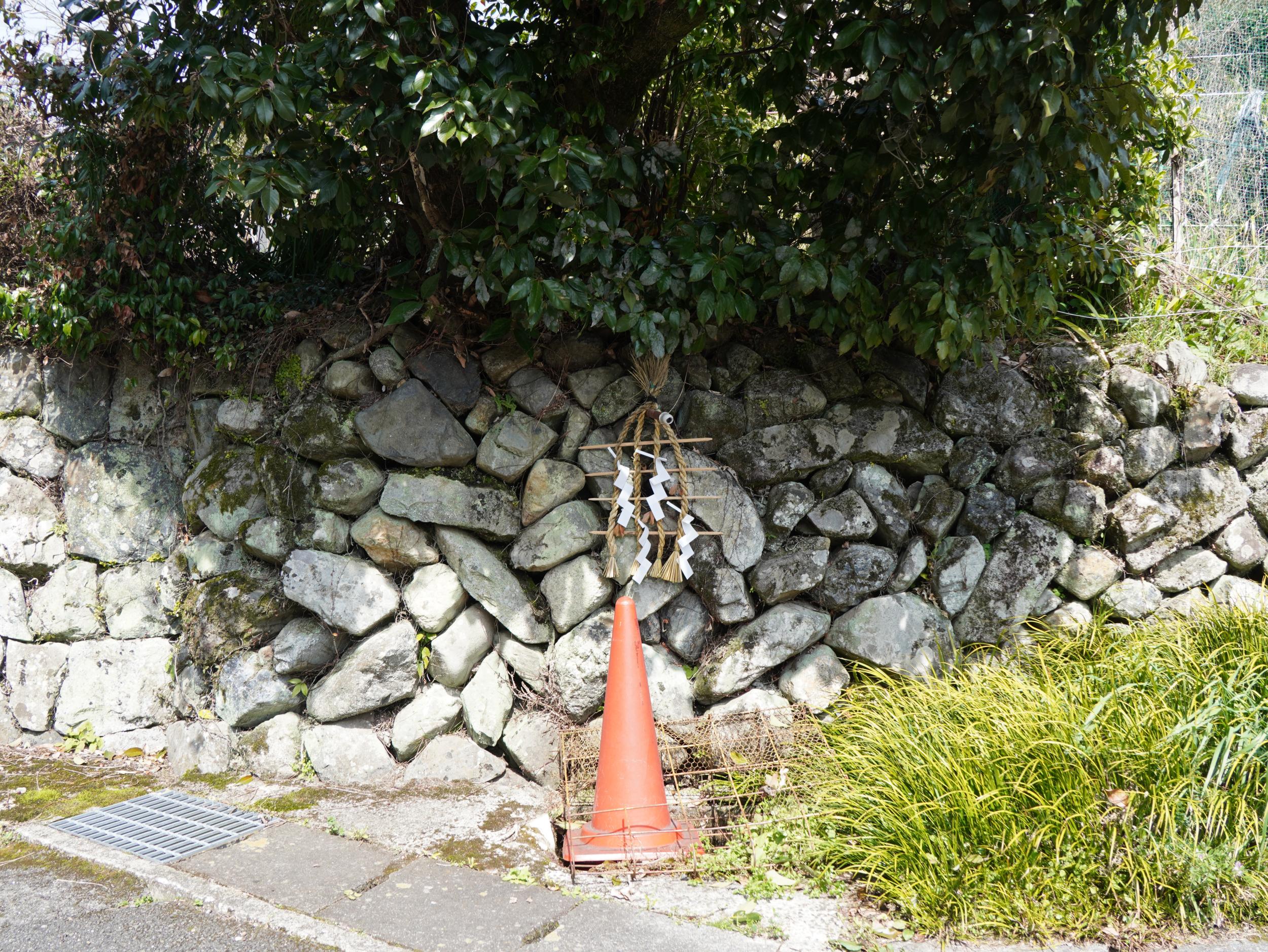 石垣からパイプが出ていてしめ縄と紙垂が掛けられています。大切な湧き水のようです。