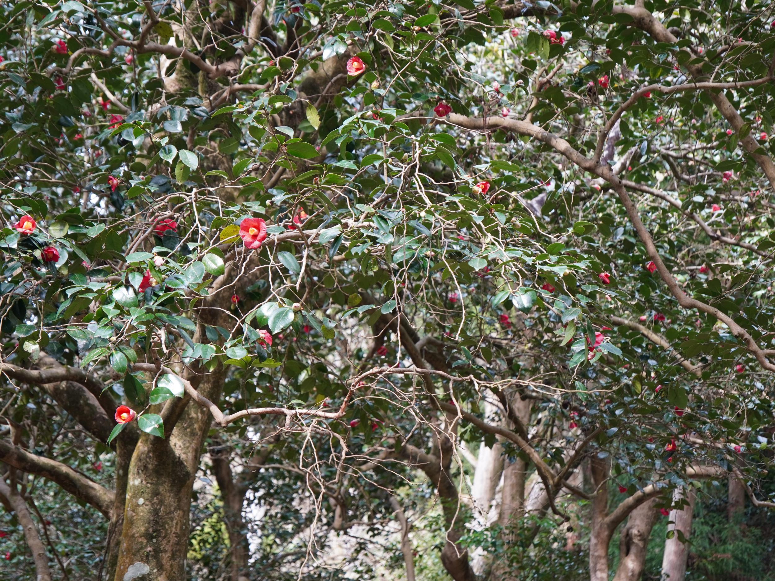 花尻橋を渡ると大原、橋の袂の森は花尻の森と呼ぼれツバキで知られるようですが、もう殆ど落ちてしまってました。