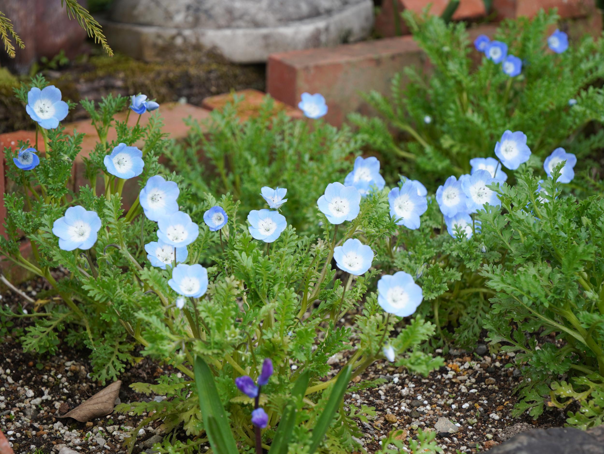 ネモフィラの季節が始まっていました。期待していたカワガラスポイントですがご不在でした。川の左側の建物は京都大原学院、ずっと私立校とばかり思っていたのですが、京都市義務教育学校条例では京都市立大原小中学校だそうです。小中一貫校で小学校に相当する前期課程の生徒数は71人、八瀬小学校よりは大きいものの大差ない感じです。