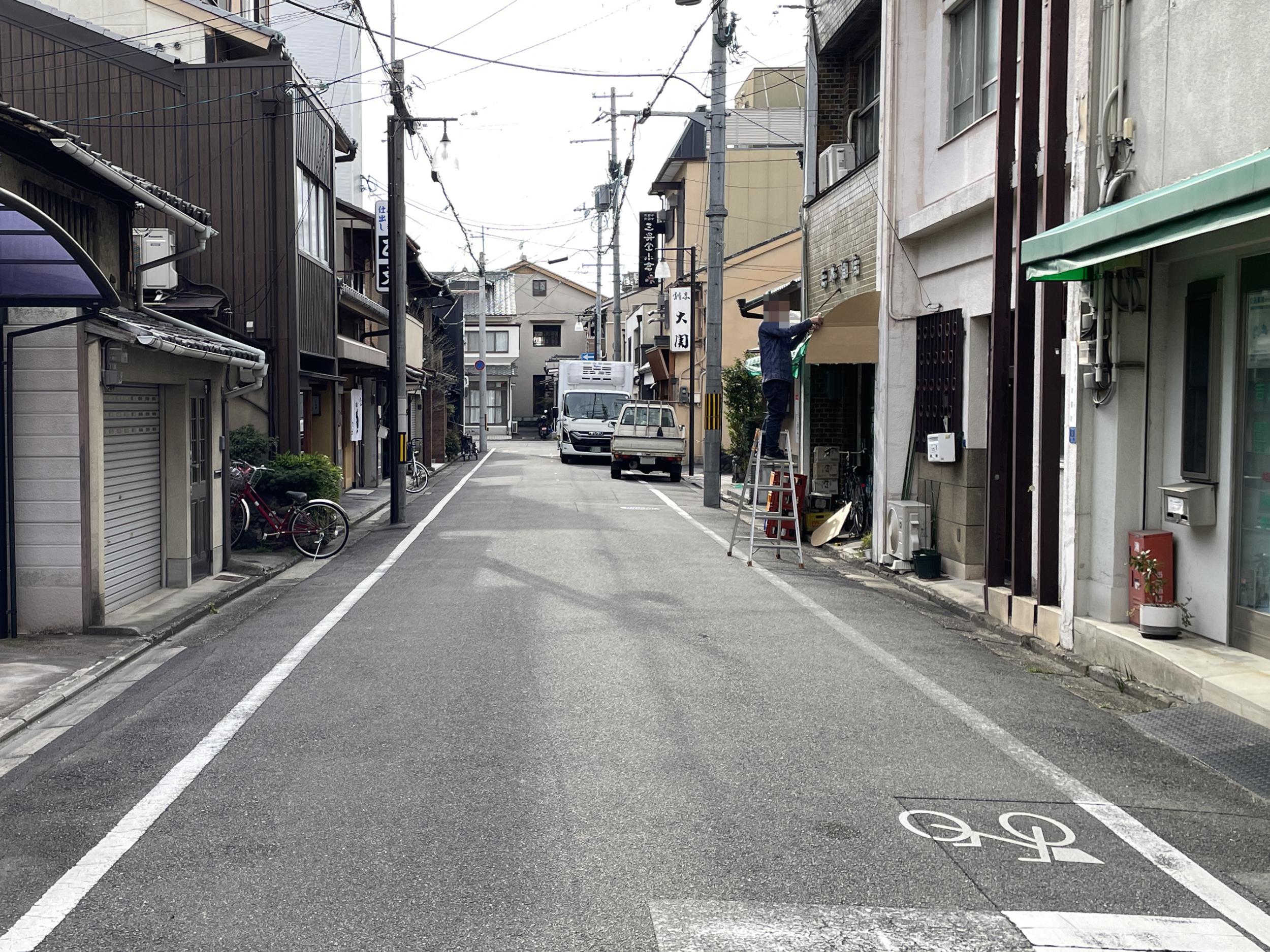 輪違屋です。現在も営業を続けている日本で唯一太夫を抱える置屋だそうですが、人気は感じられません。