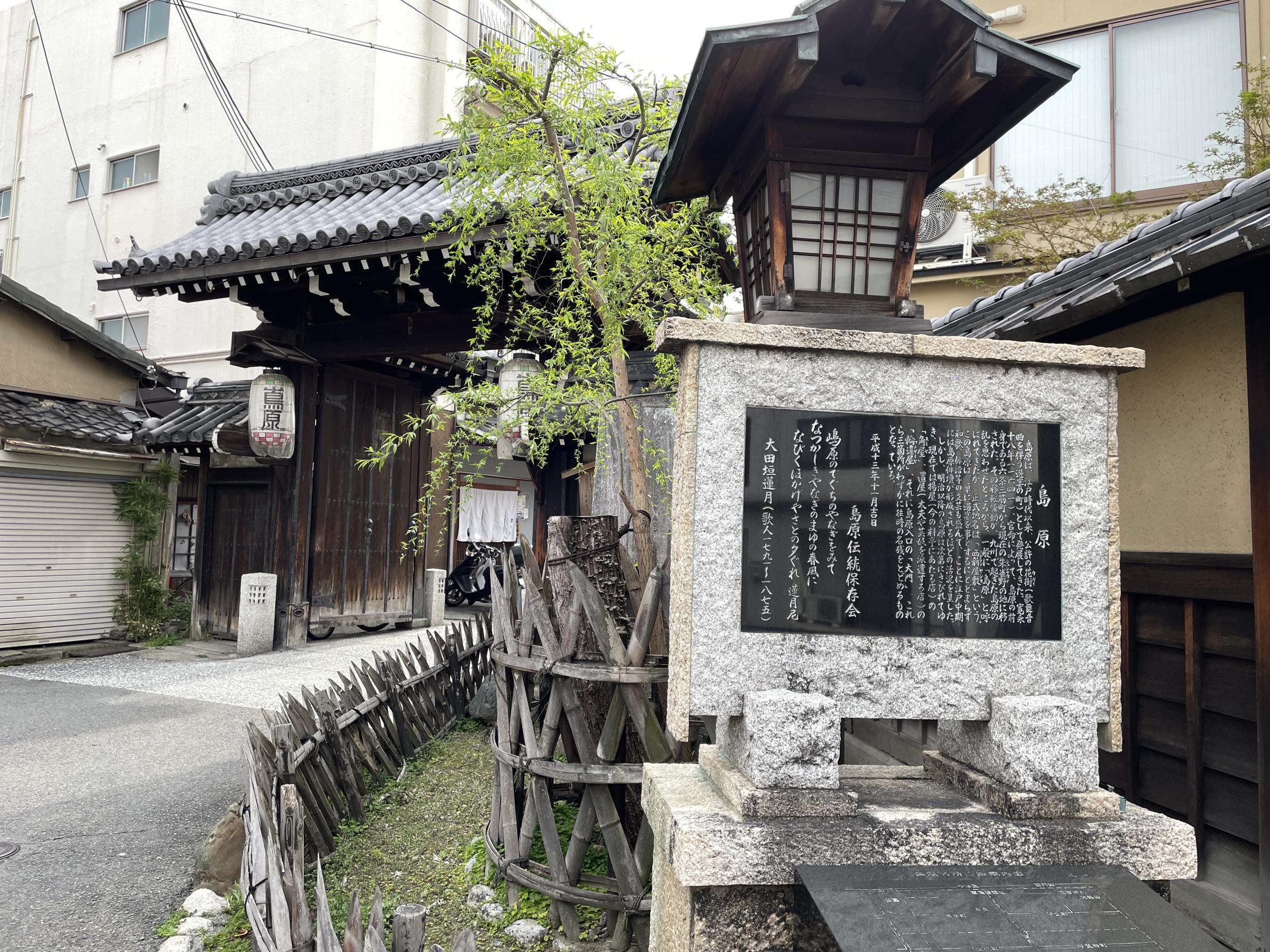 実は今日一番の目的地は嵐山じゃなくて島原。花と火の帝で猿飛佐助と霧隠才蔵が六条三筋町で代書屋を営んでいる場面まで読み進み、秀吉の時に二条柳馬場に公許されていた花街が関ヶ原後に六条三筋町に移され、さらに寛永18年に京市街西に位置する朱雀野に移され、島原の乱の直後だったため島原と呼ばれるようになったそうです。輪違屋や角屋といった揚屋が今も残されていると分かり訪ねてみたくなった次第です。