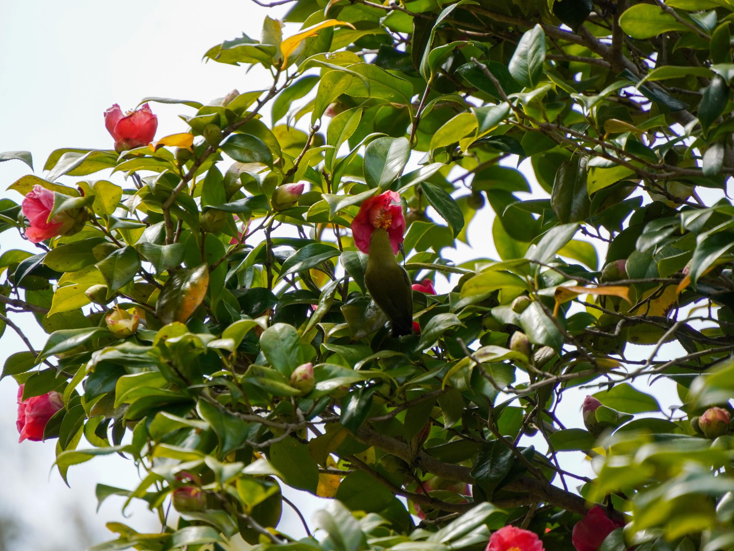 ホーホチョケチョホイ、聞き覚えのないウグイスのフレーズ。かなり近いのですが姿は見えません。
