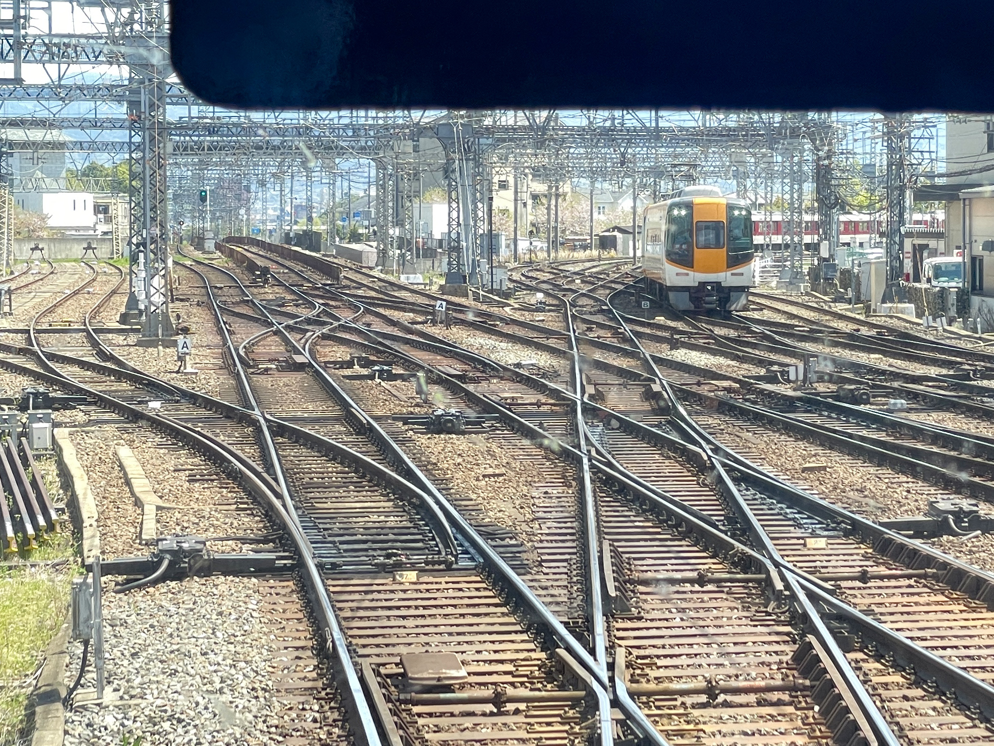 近鉄奈良駅1番線(右側)に先発の急行、2番線には次発の快速急行、どちらもLCカーなのに、なぜか1番線急行はロングシート設定、快速急行はクロスシート設定です。快速急行は8分後発も上本町到着は6分違い、快速急行で帰ります。