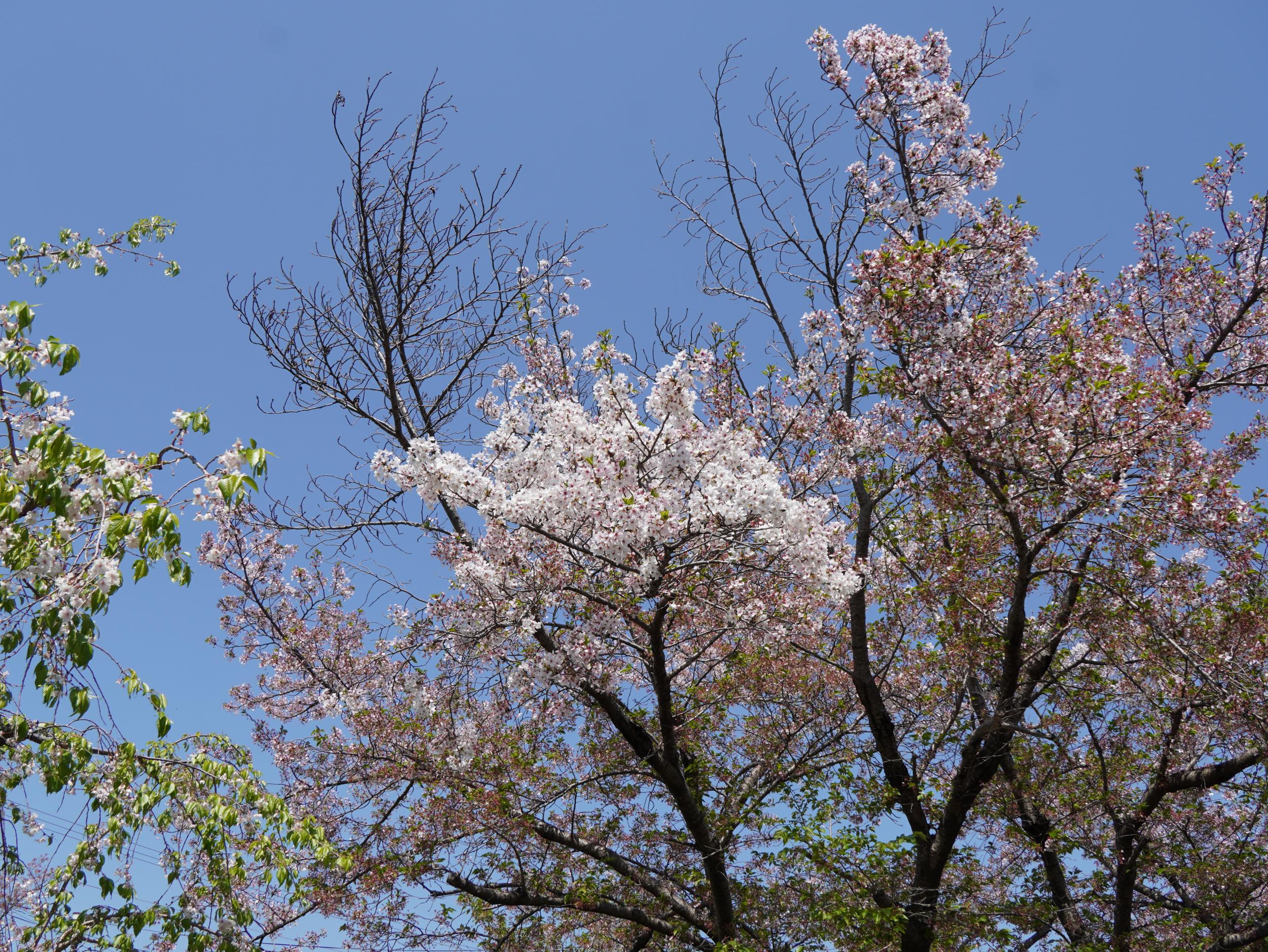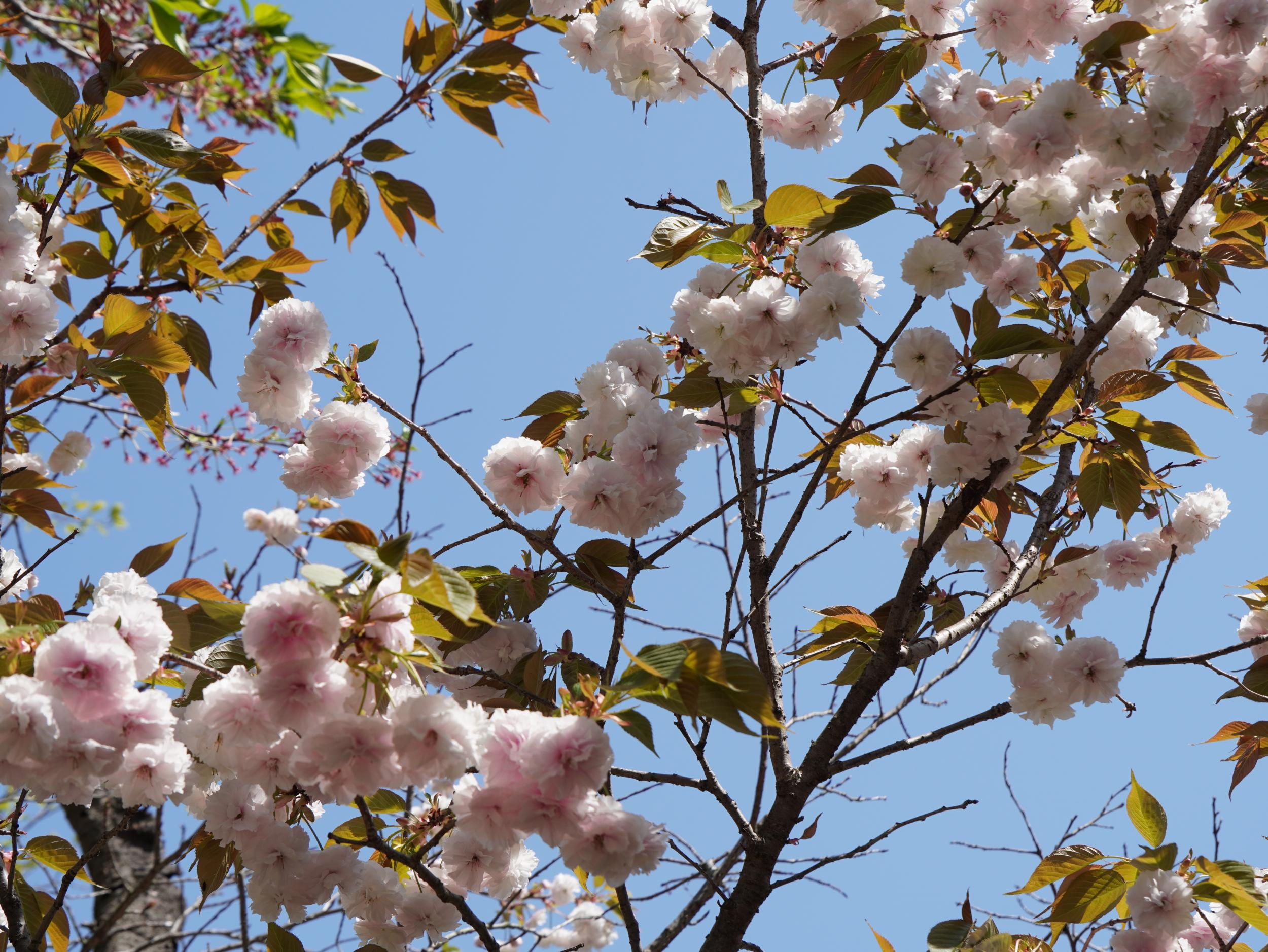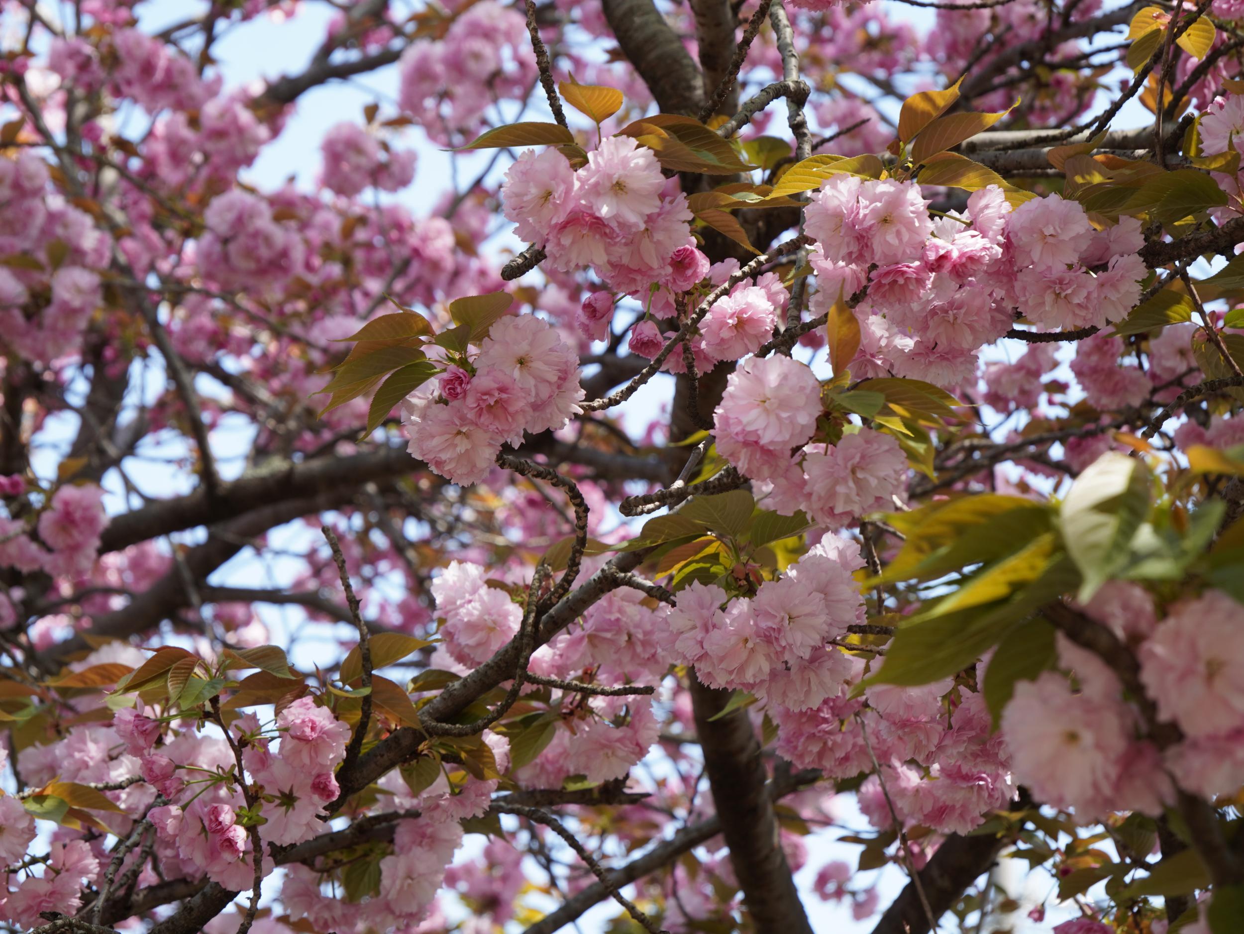 葉桜の中にもまだ艶やかな花を残したままの枝も。