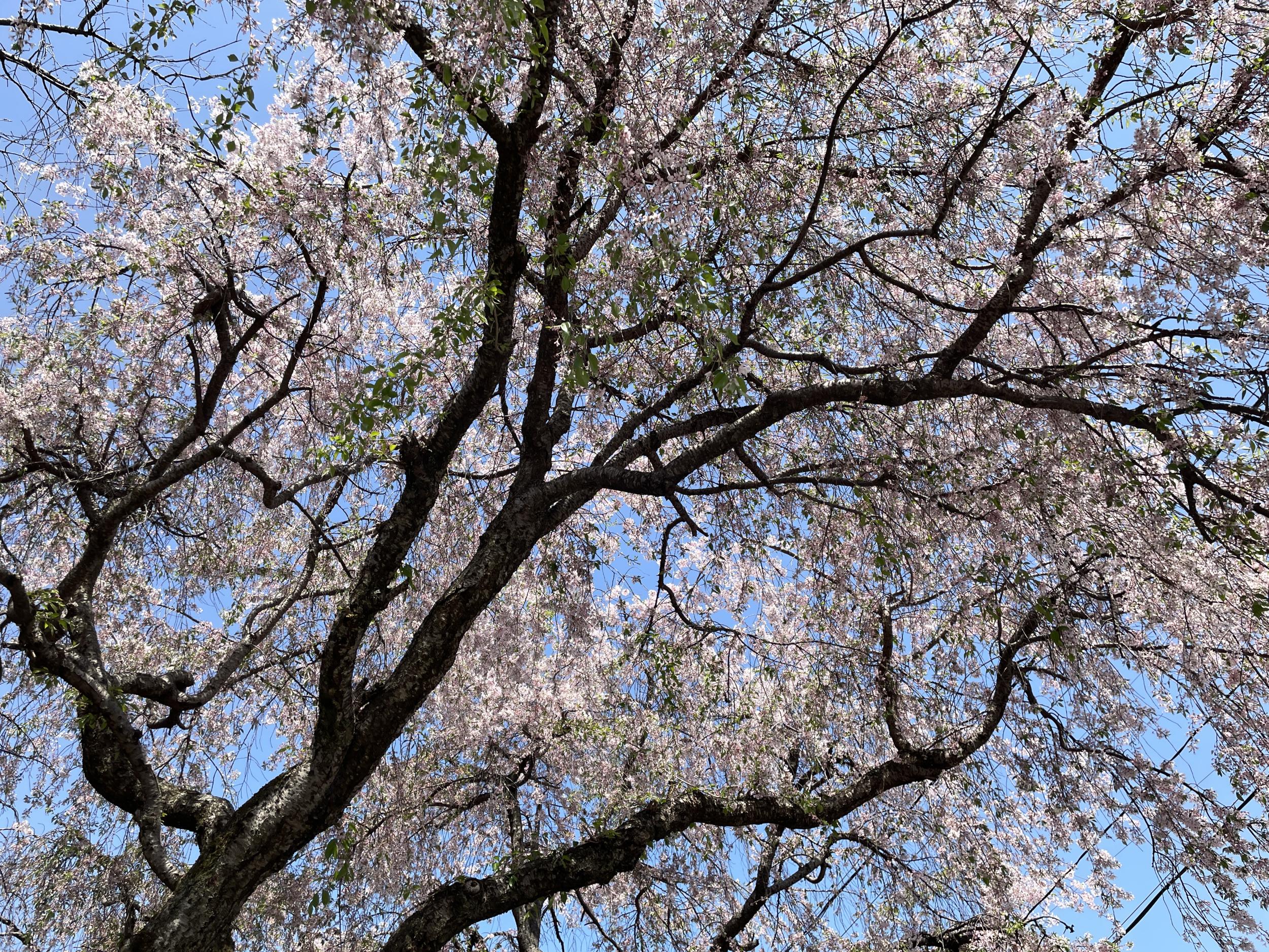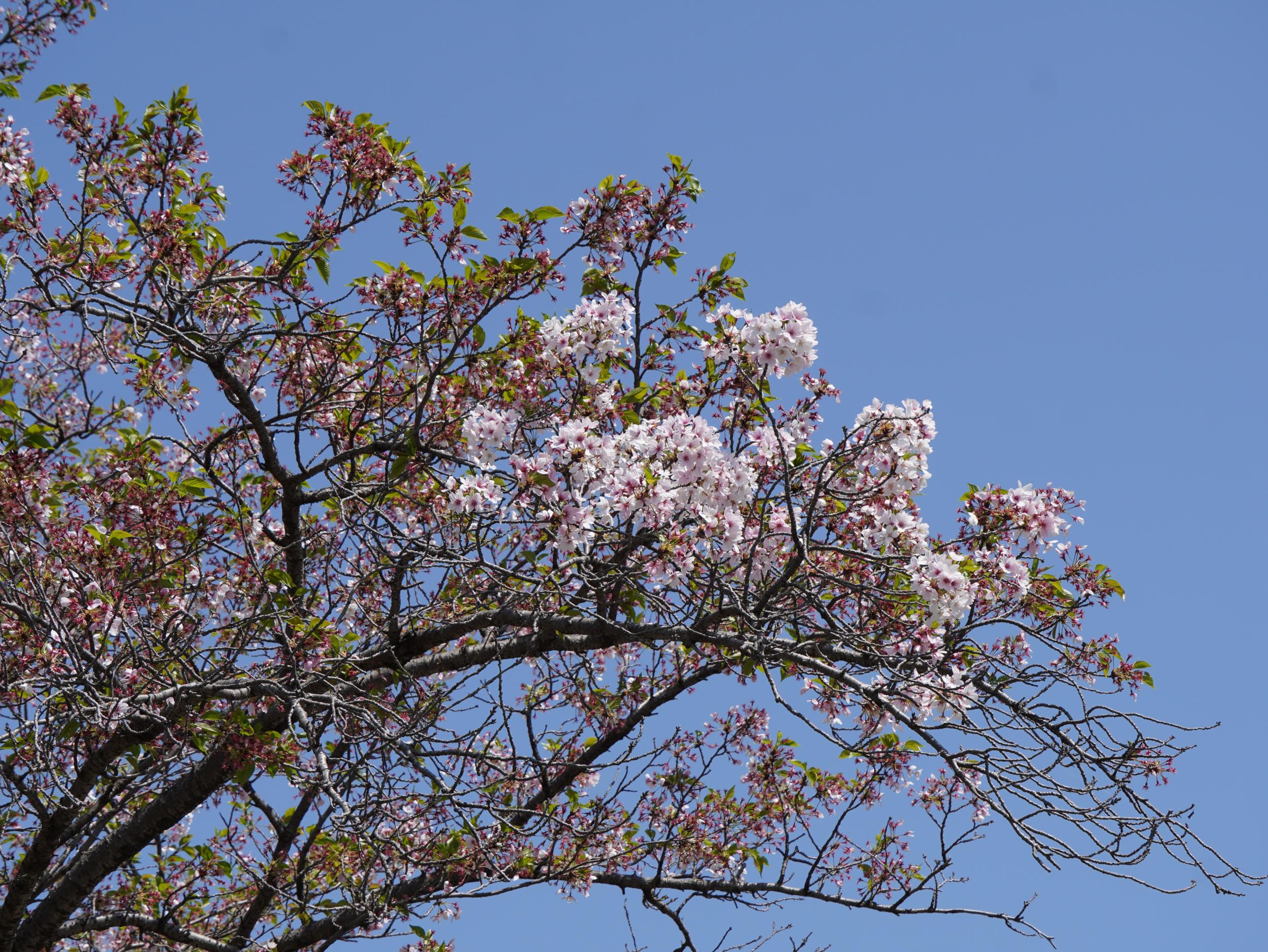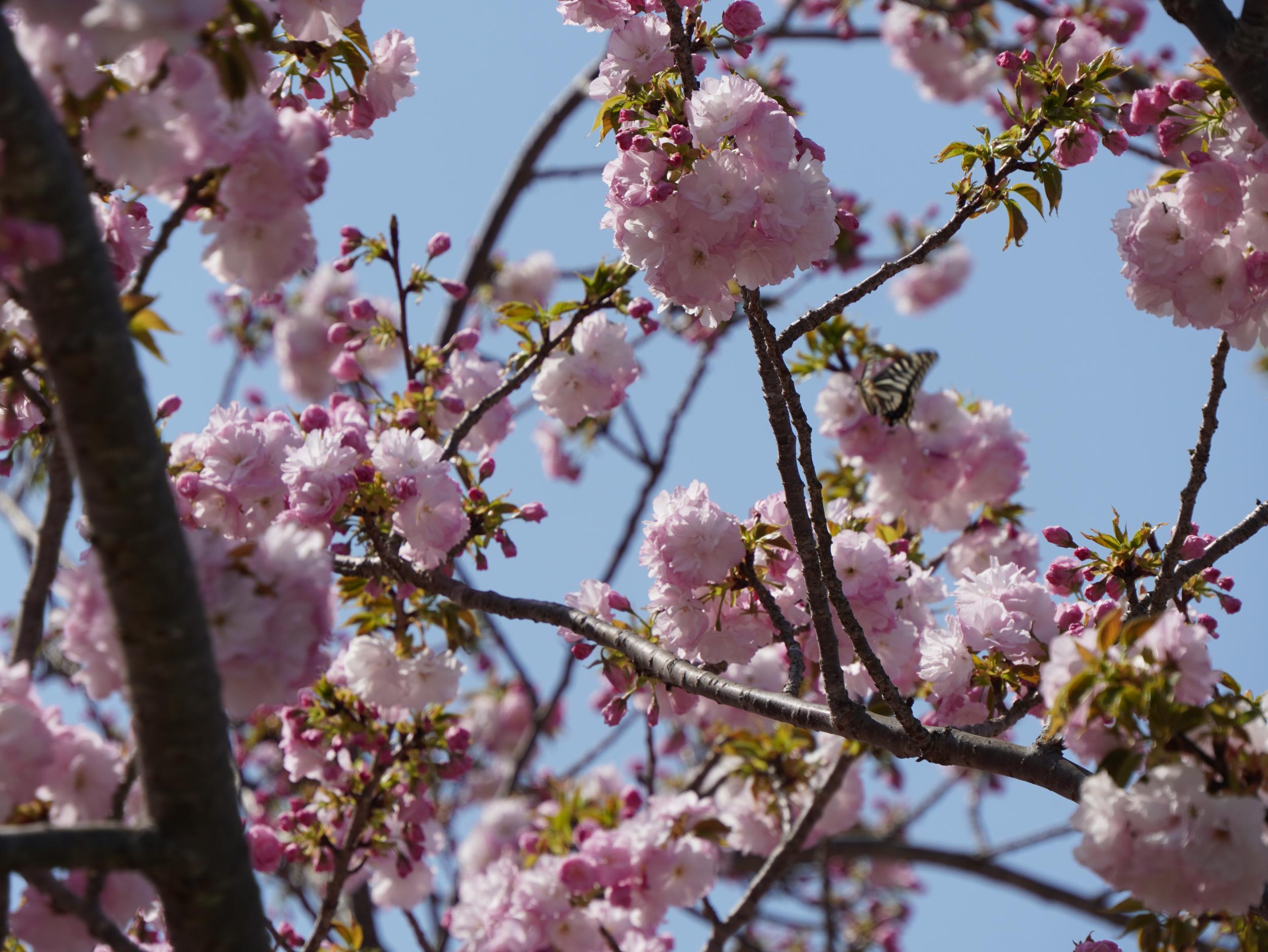 葉桜の中にもまだ艶やかな花を残したままの枝も。