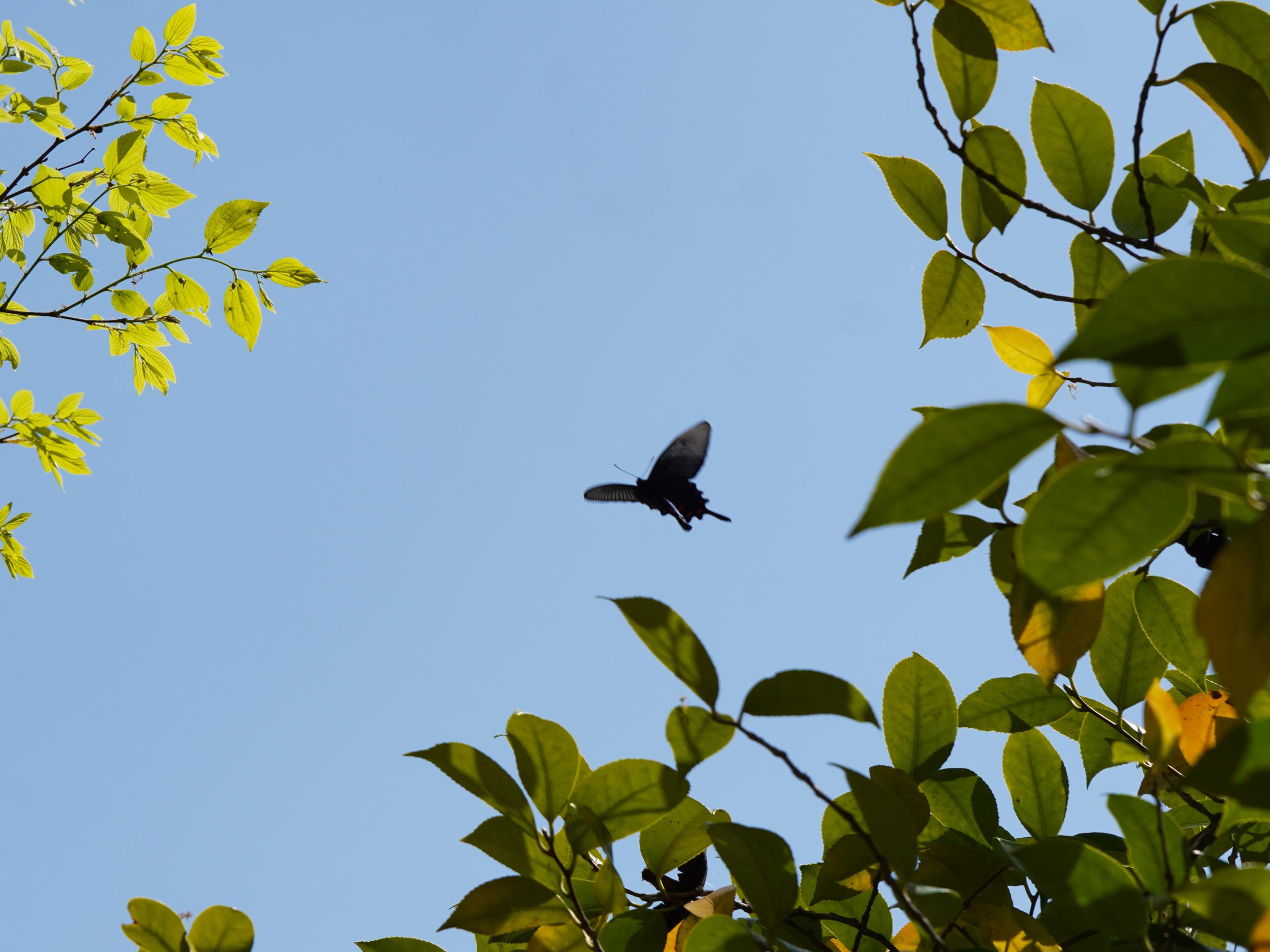 クロアゲハがいっぱい舞っているのですが、全然止まってくれません。飛んでるところを何とか撮られてくれました。
