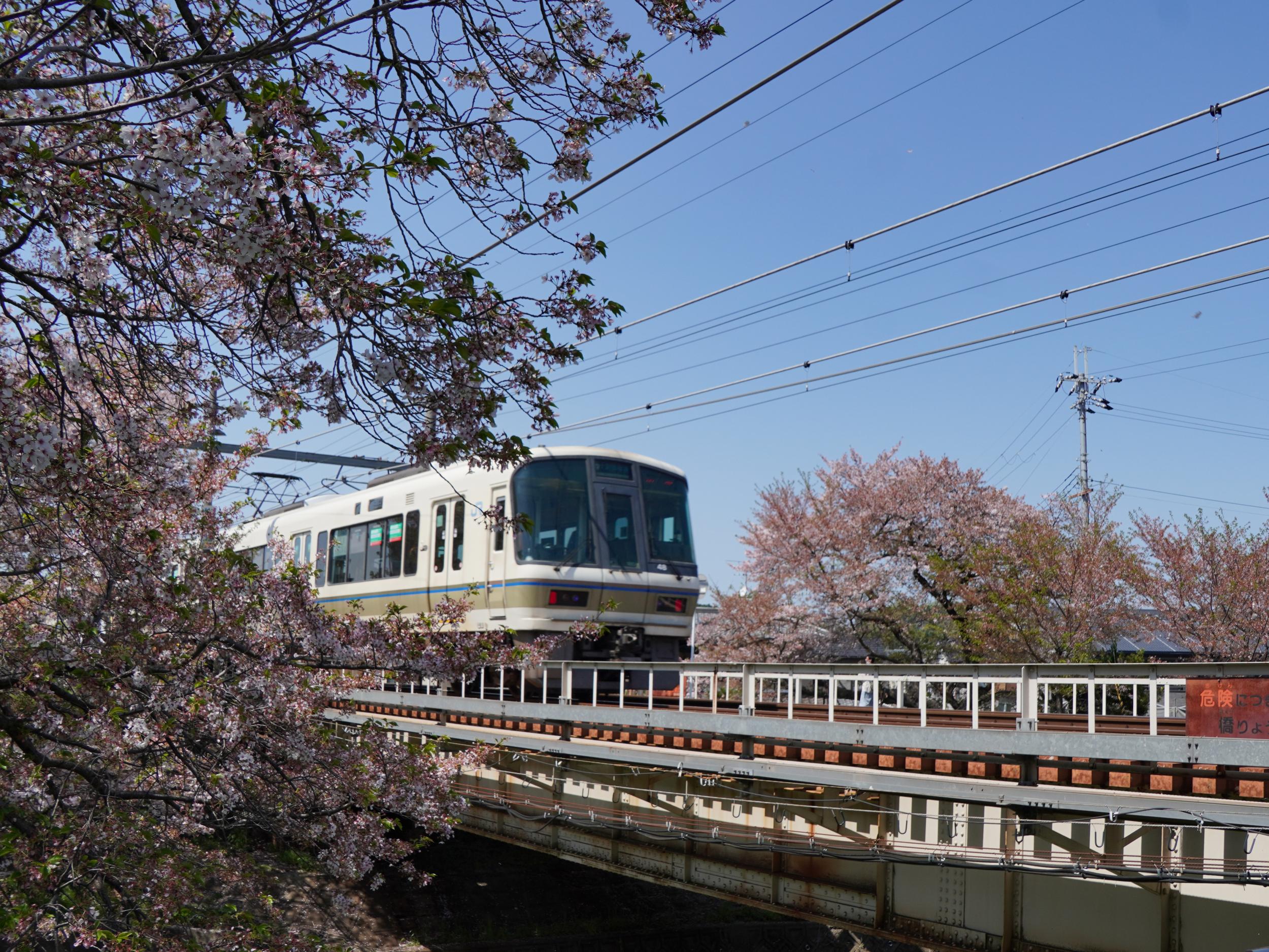 満腹して足の調子は悪くないので生駒トンネルをくぐることにします。瓢箪山を発車して急勾配にかかるところ、正面は大原山522m、周囲がタワマンに囲まれてしまった自分ちのベランダから見える唯一の山です。頂上付近のヤマザクラが満開。