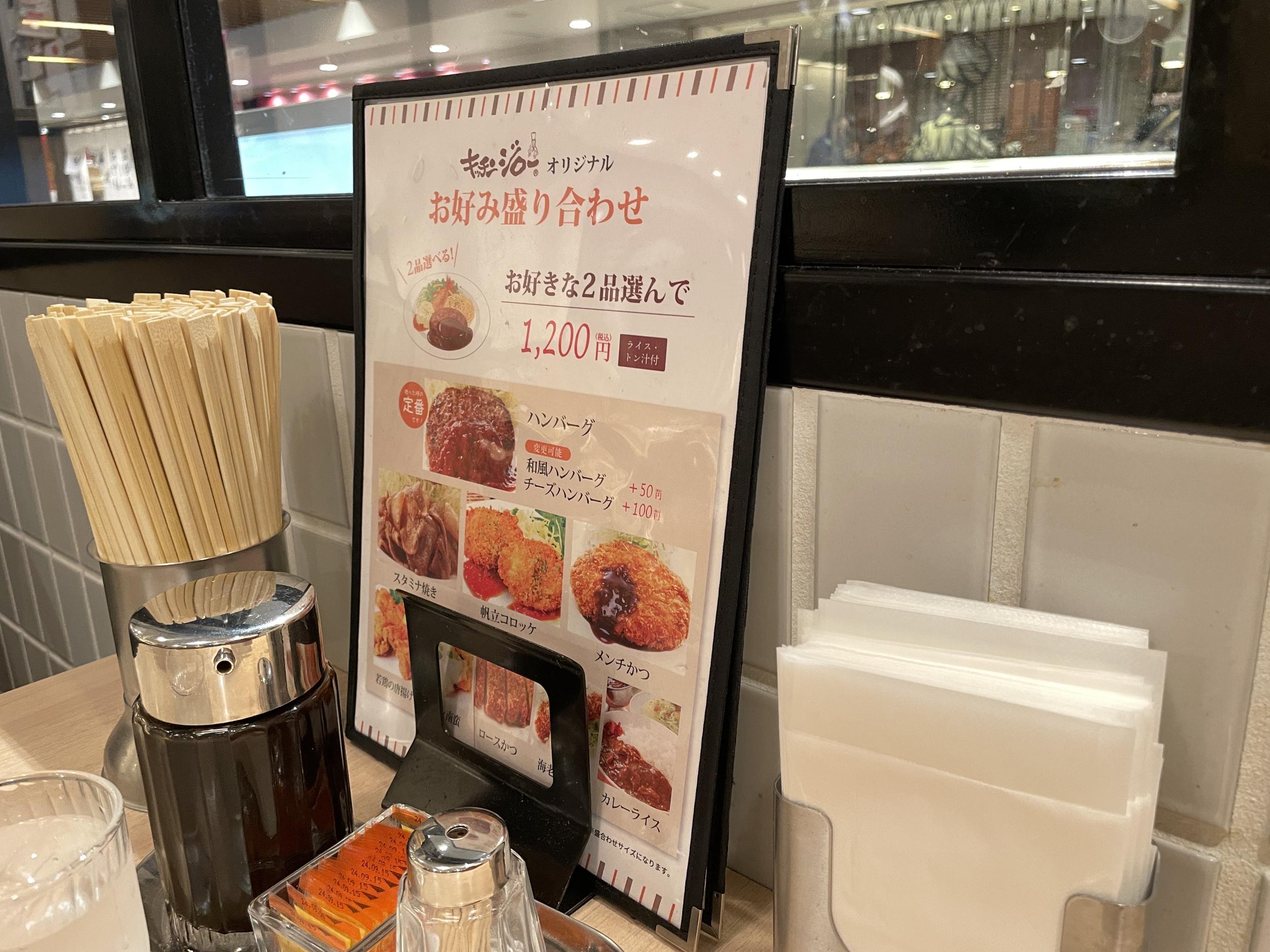となりの人の注文はワエビ、えっそんなのあったっけ、とメニュー表をチェックし直して、和風ハンバーグ+エビフライと分かりました。かつては2種類だけじゃなくて3種類選べたこともありました。例えばハンスタカレー。