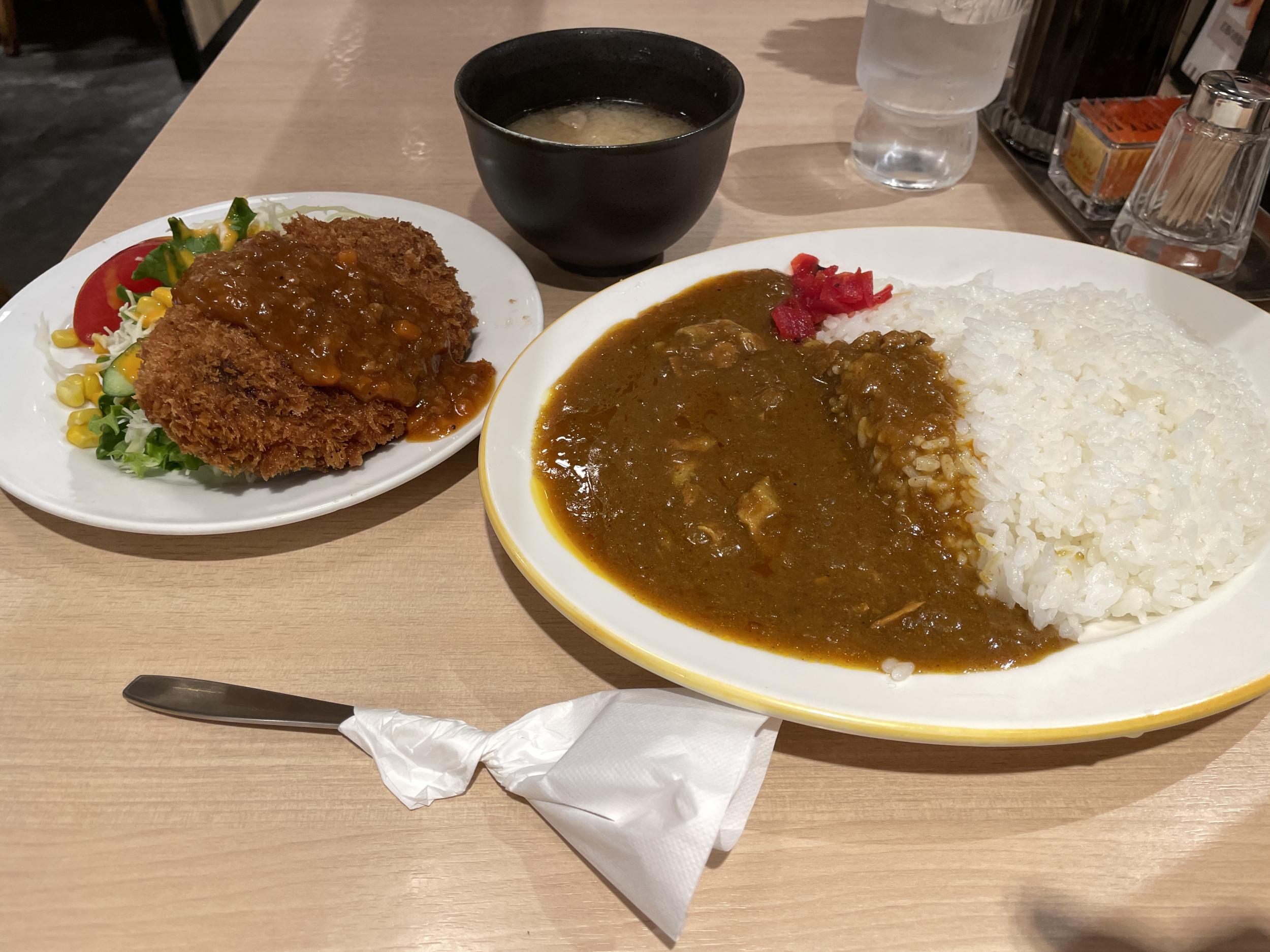 フェスティバルプラザのキッチンジロー、ファミレスのジョイフル傘下になって、ここフェスティバルタワーと九段下の2店舗が残るだけも、全盛期と変わらない味、スタコロ(スタミナ焼き+コロッケ)、ハンカラ(ハンバーグ+唐揚げ)といった符丁は今も引き継がれていて嬉しい限り。スタミナ焼きもエビフライも捨てがないのですが、やはりメンカレ(メンチカツ+カレー)にしました。東京発のお店なのでミンチカツじゃなくてあくまでメンチカツ、相変わらずジューシで美味。前回酸っぱくなったかもと書いたカレーですが、この酸っぱさこそジローのカレーと再認識、とん汁もこの味、この味。スタッフさんたちが関西弁なことだけがちょっと違和感。