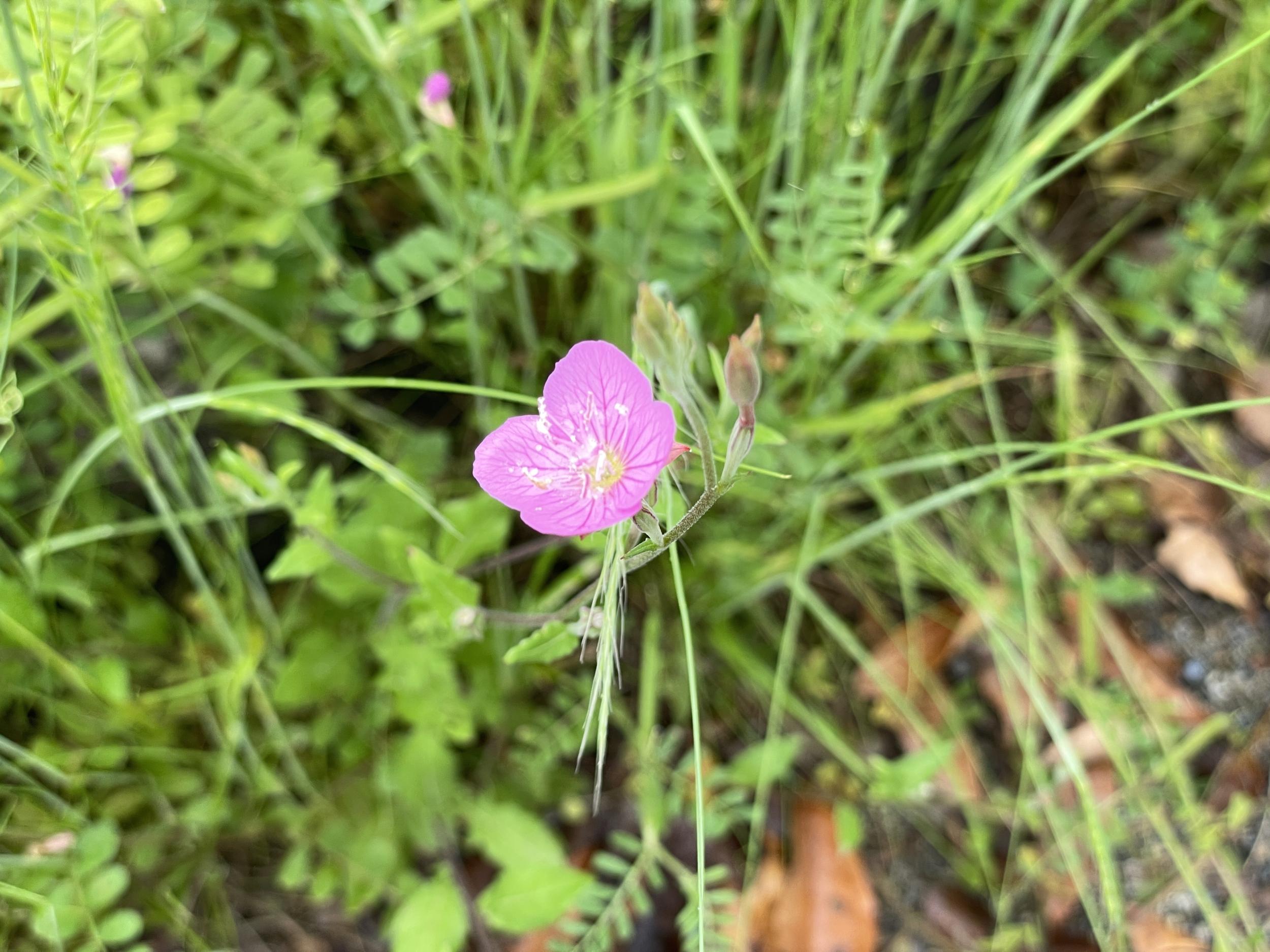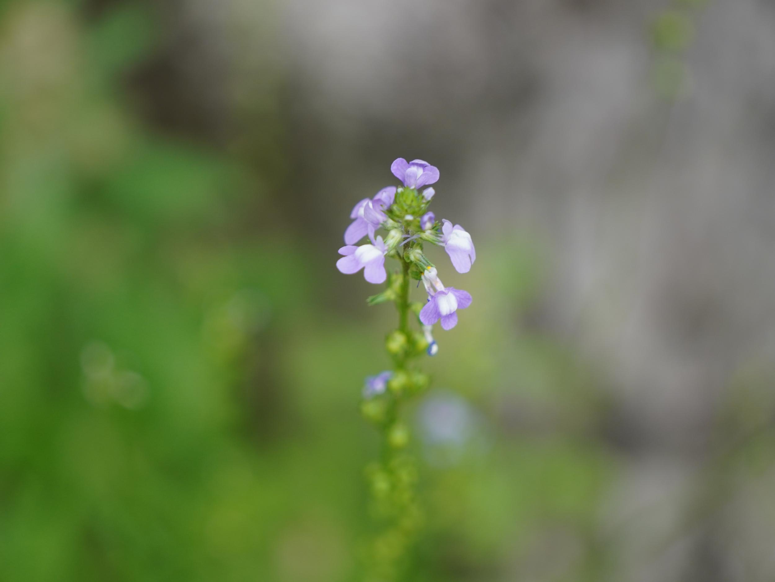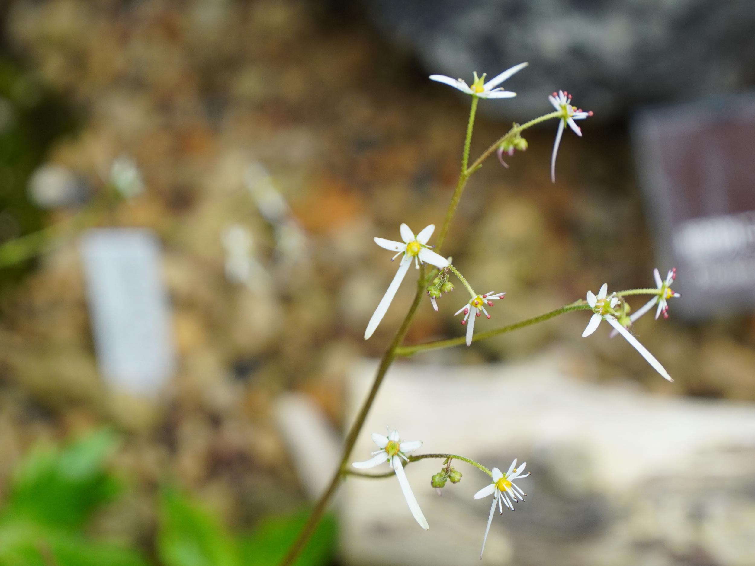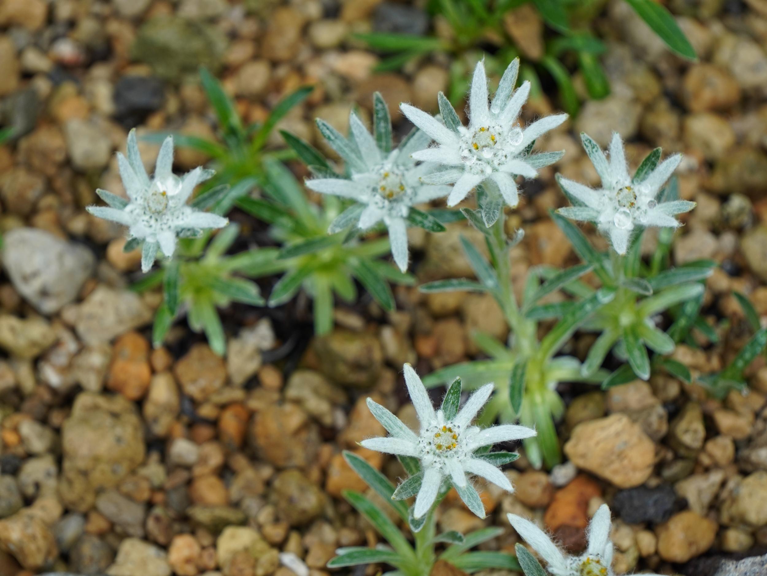 緑一色の滝壺に紅一点はエビスキア、この角度ではわかりませんが、縦に長い花です。