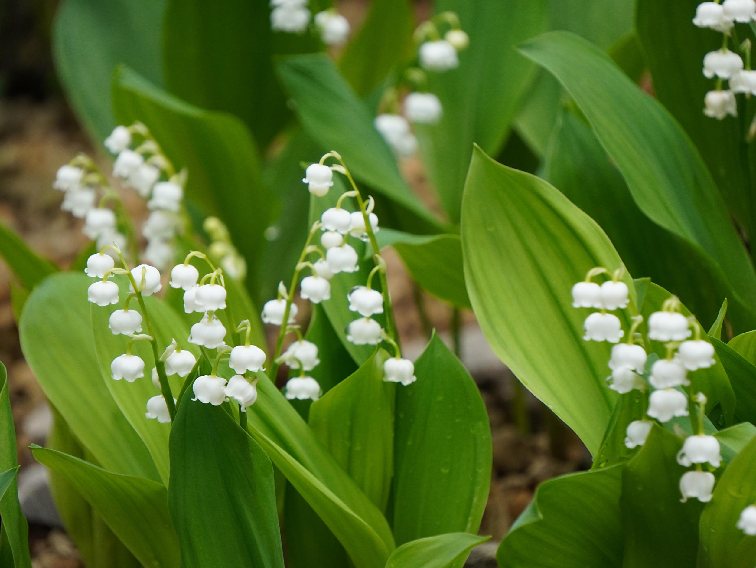 スズランがいっぱい、ドイツスズランだそうです。9年前、奈良市都祁吐山町の山奥まで行って既に盛りを過ぎていた時以来のスズラン。とても見目麗しいですが写真に撮るのはとても難しい花です。