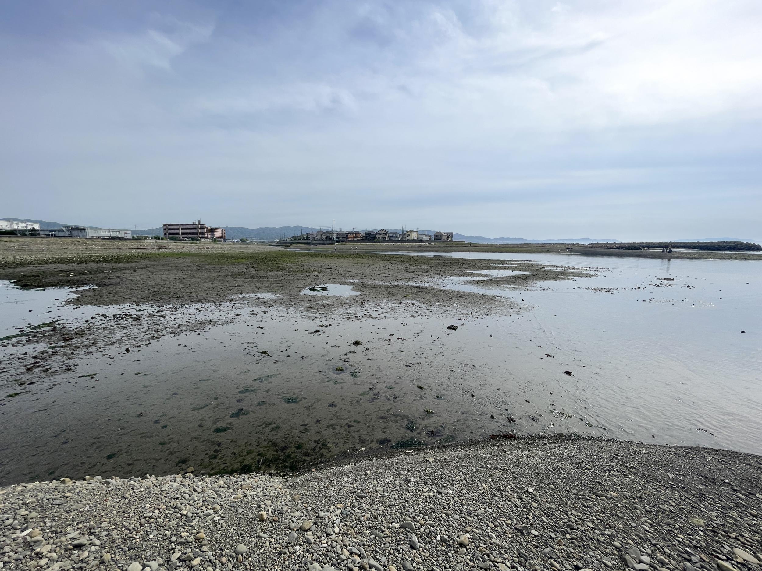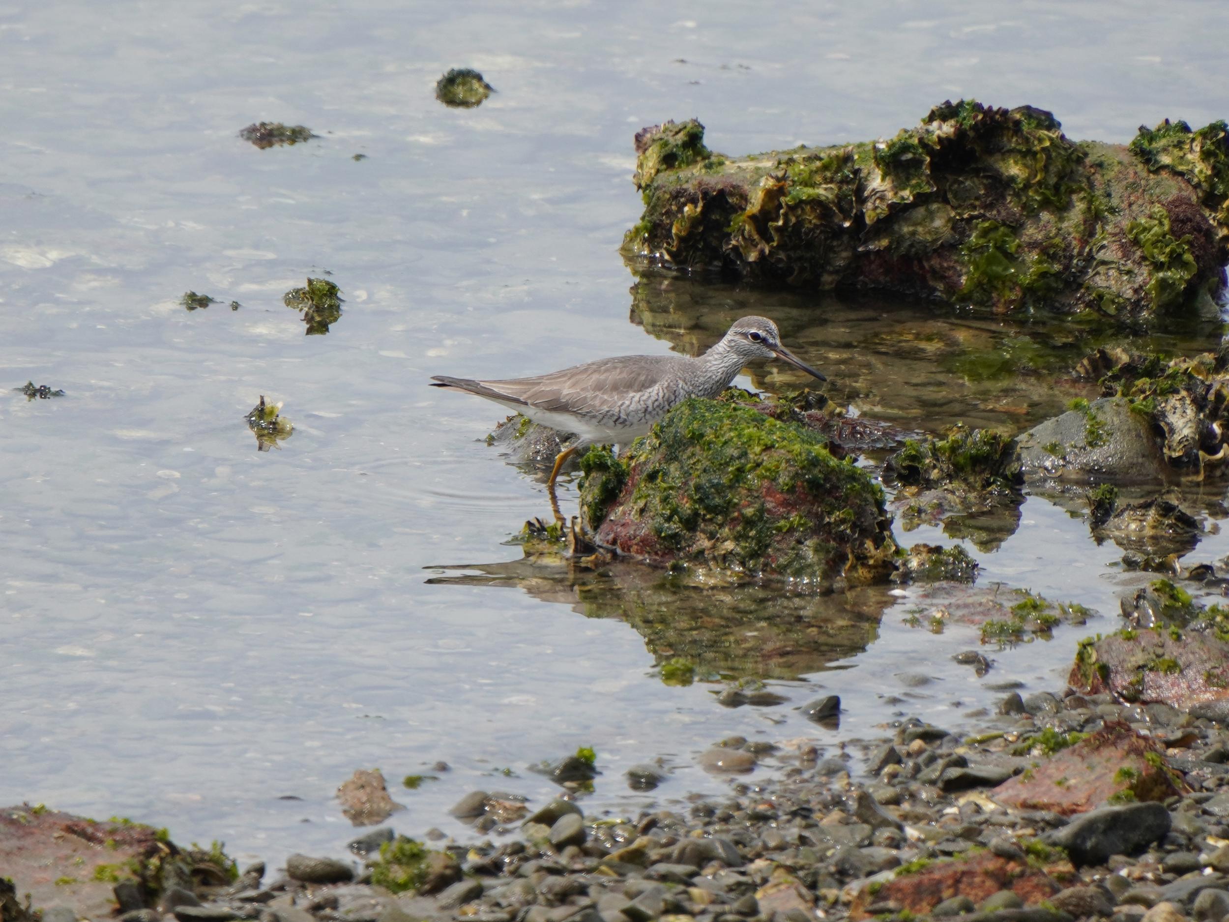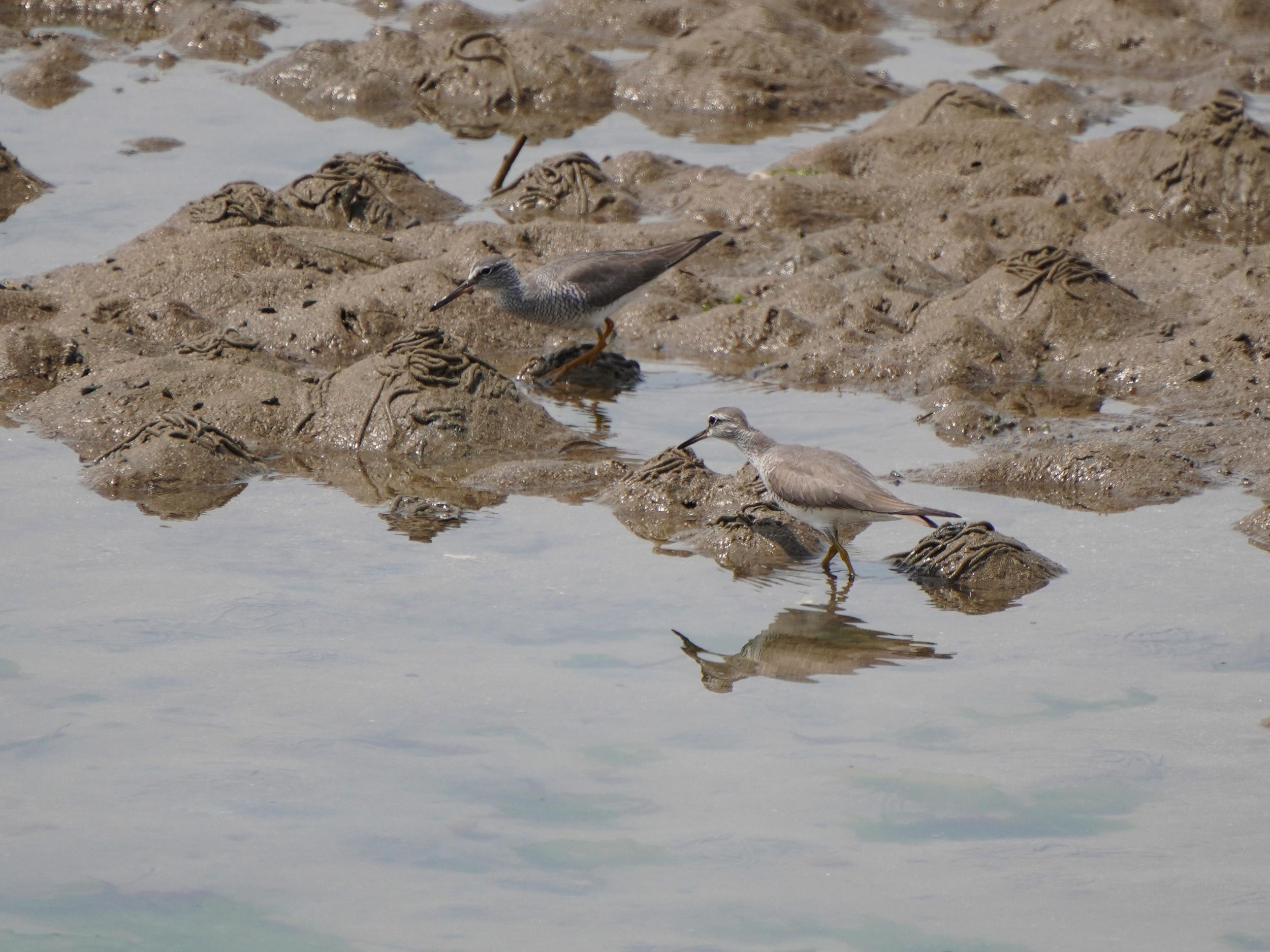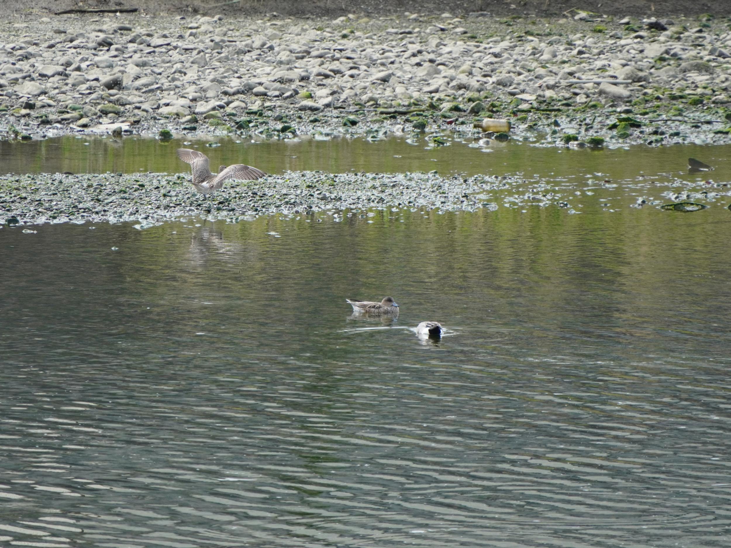 昨日と違って快晴、まだ11時前なのでチュウシャクシギやキアシシギがやってきているはずの男里川へ。