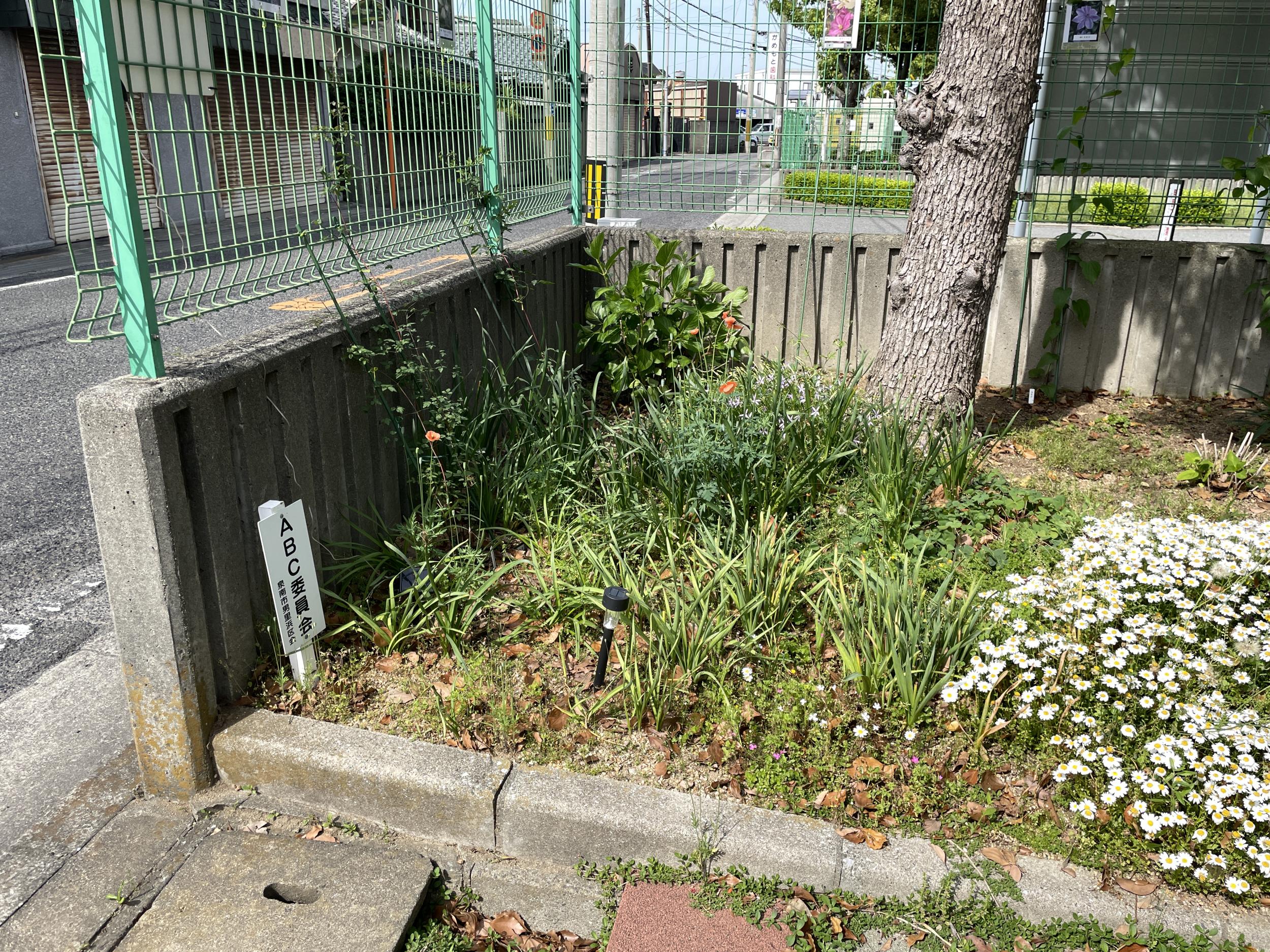公園のすみっコに「ABC委員会」とあります。検索すると一発でヒット。この美しい花壇は集合住宅の管理会社ではなくABC委員会が維持管理されているようです。