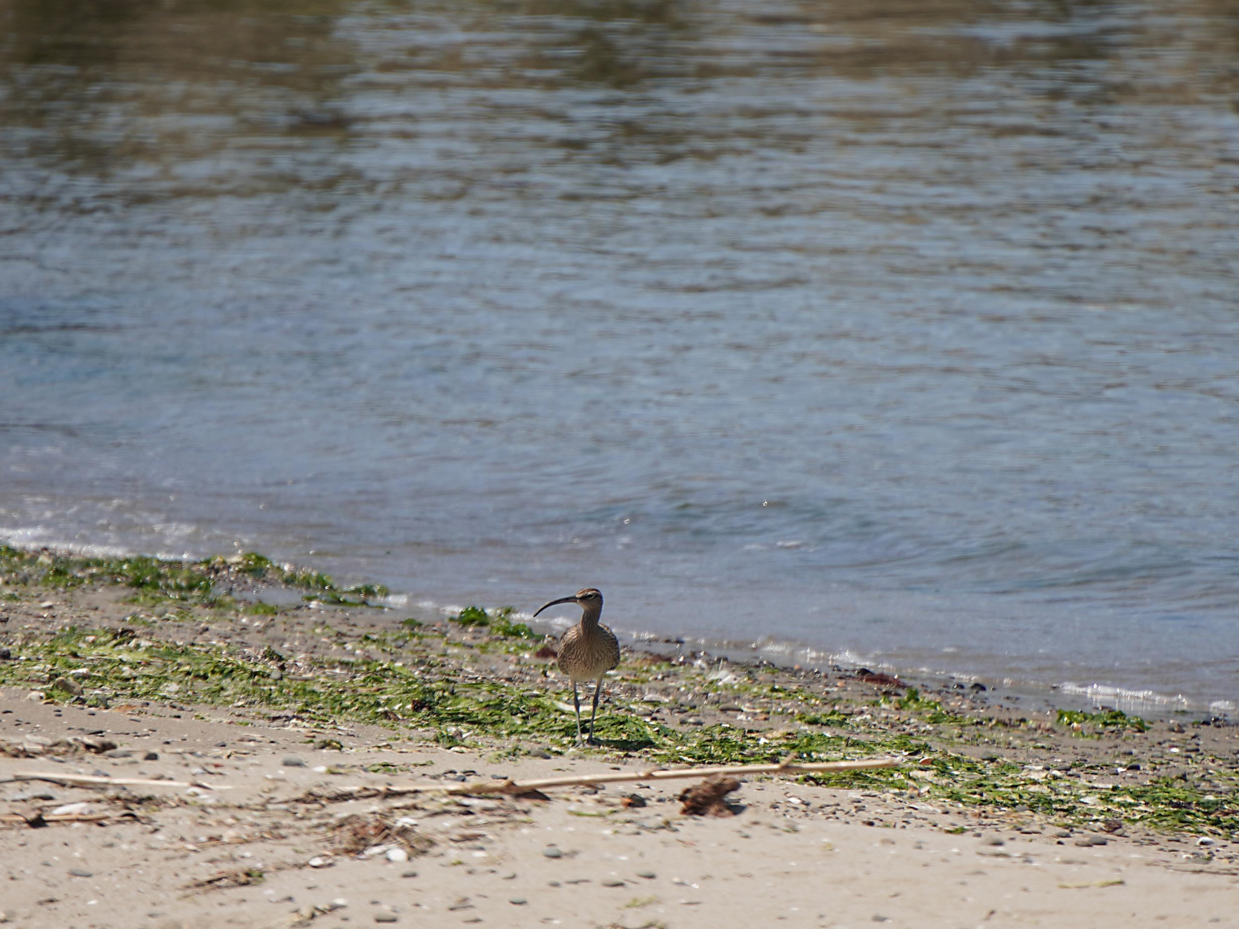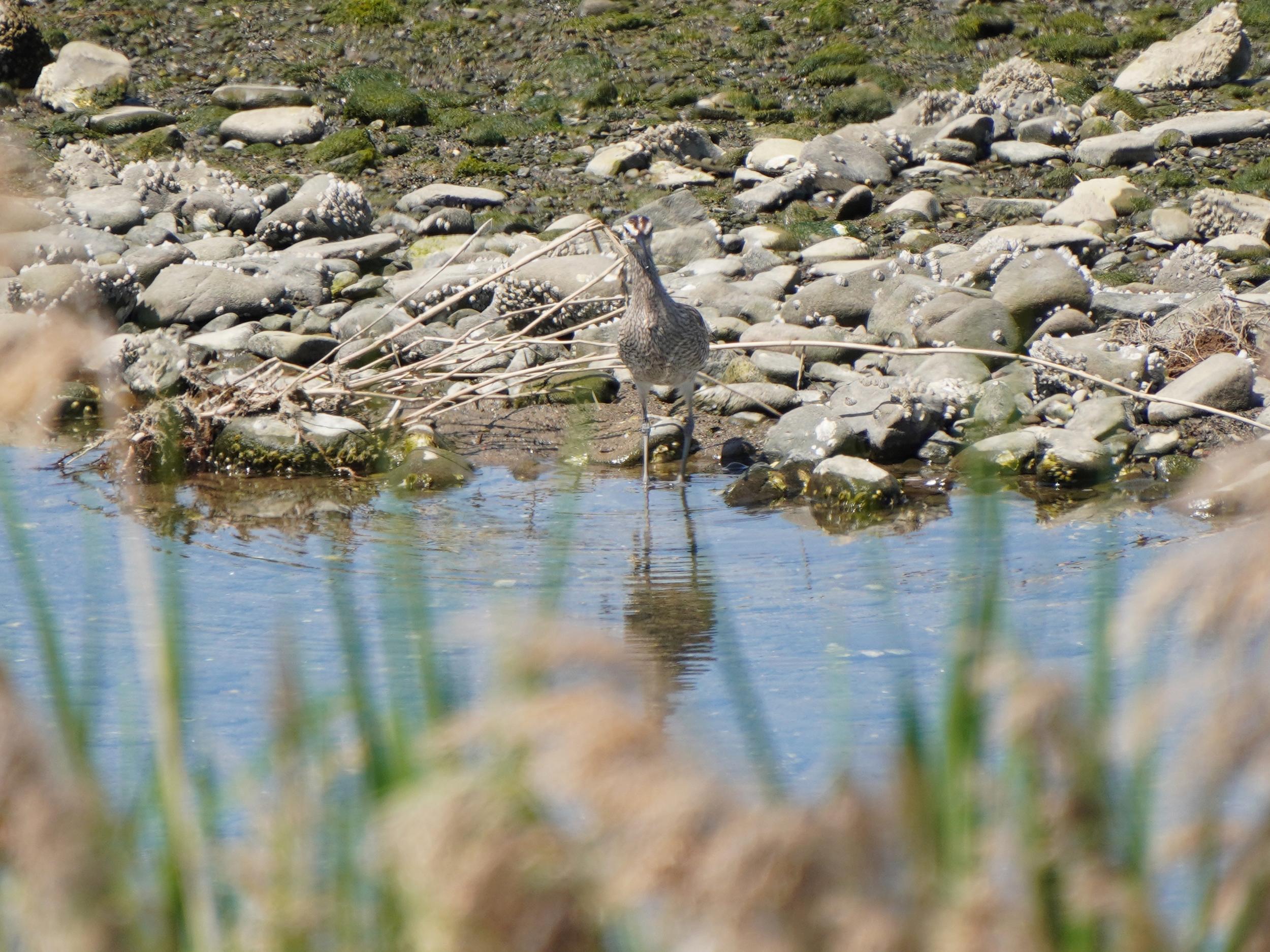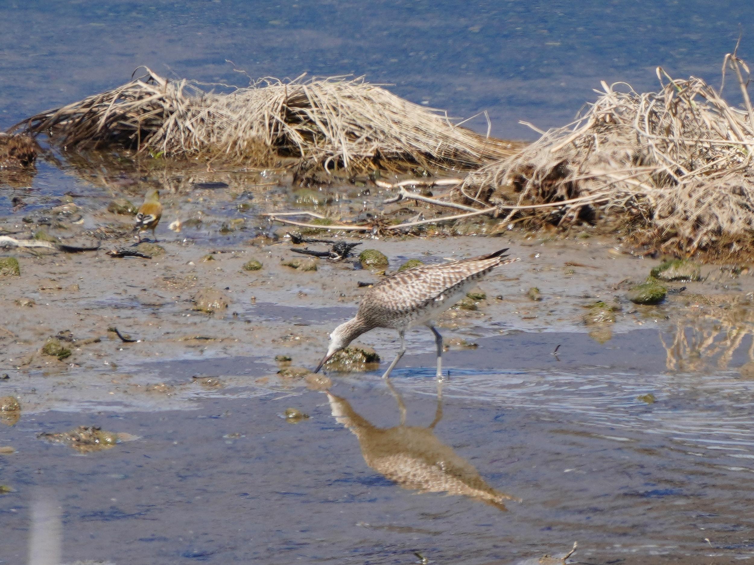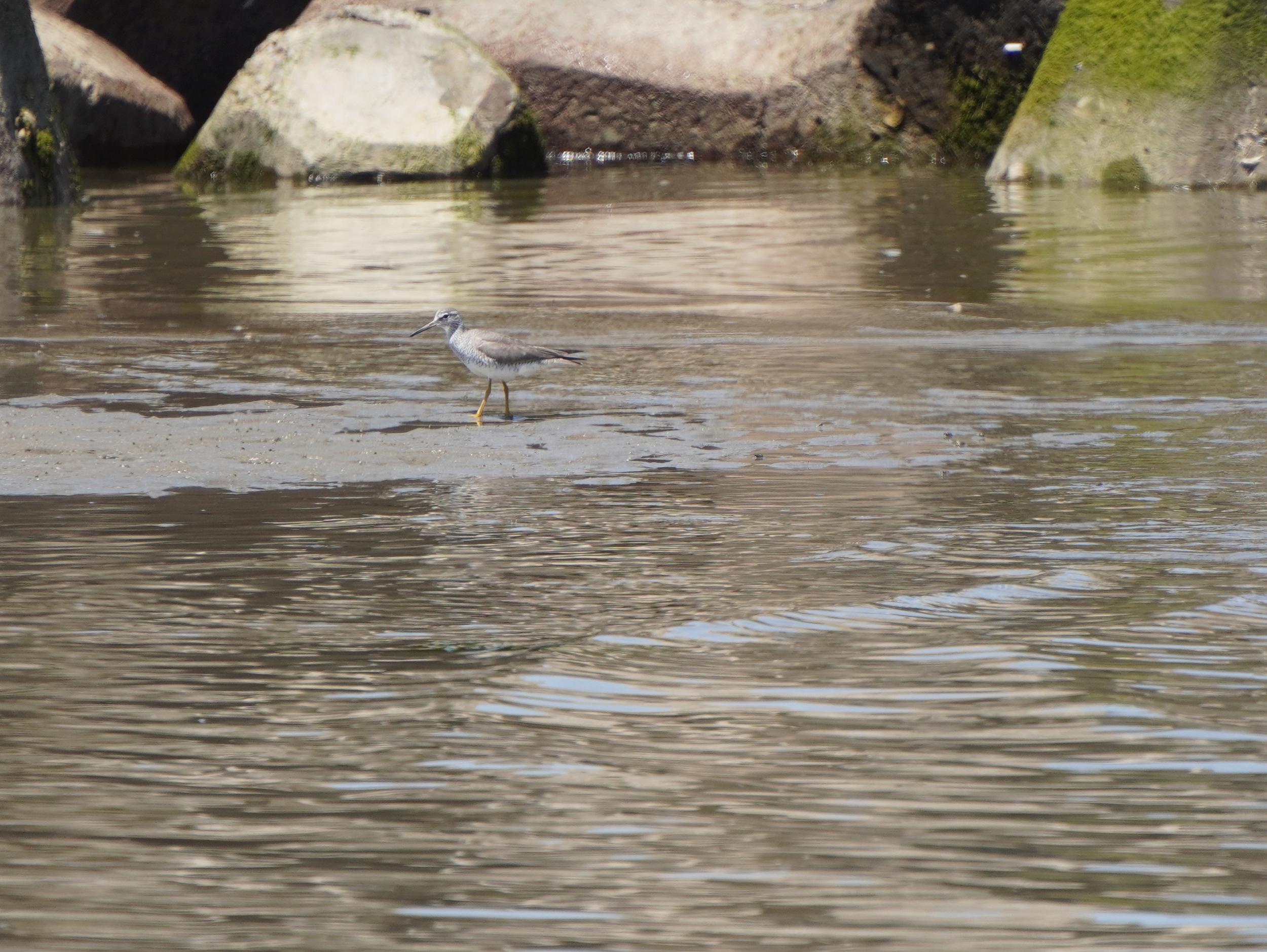 いつものように堤防のホッチキスに足をかけて川を覗くとキアシシギ。もう少し川上ではチュウシャクシギの真正面顔。