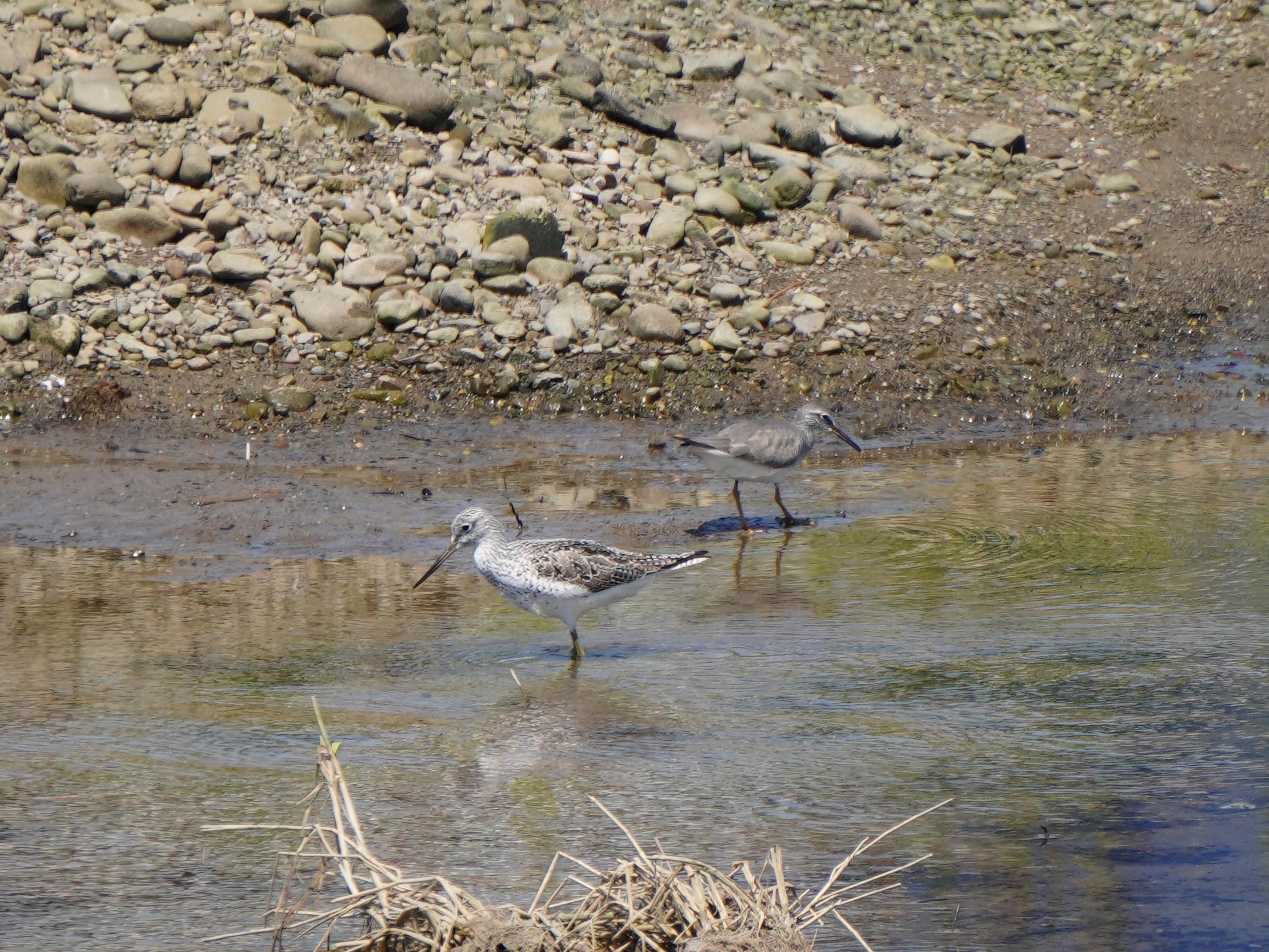シギチたちが来たよと教えてくれたバーダーさんふたりに、昨日伊勢湾へ行ってたのですが、こっちの方がずっと多いです、とお声がけしました。
