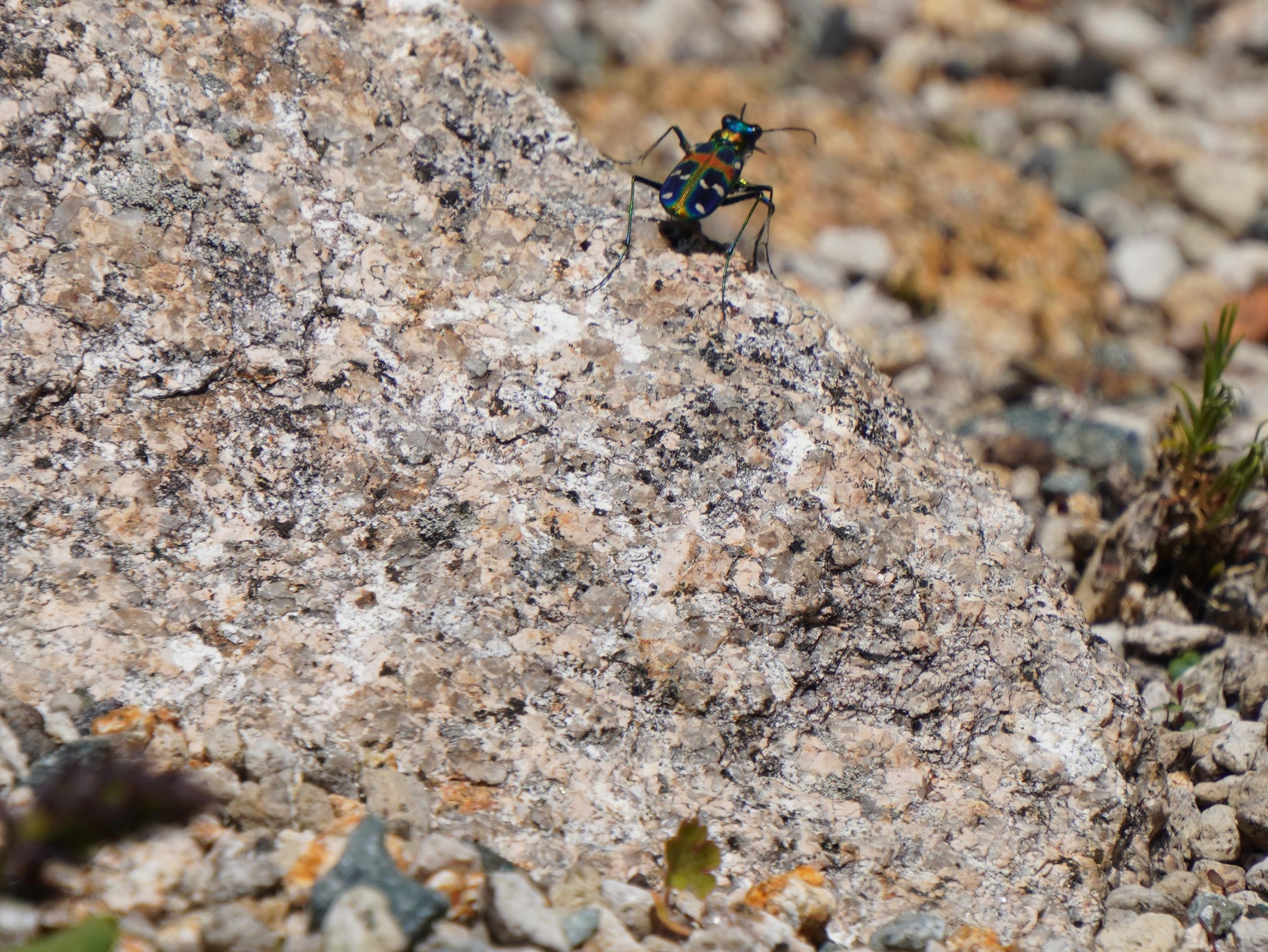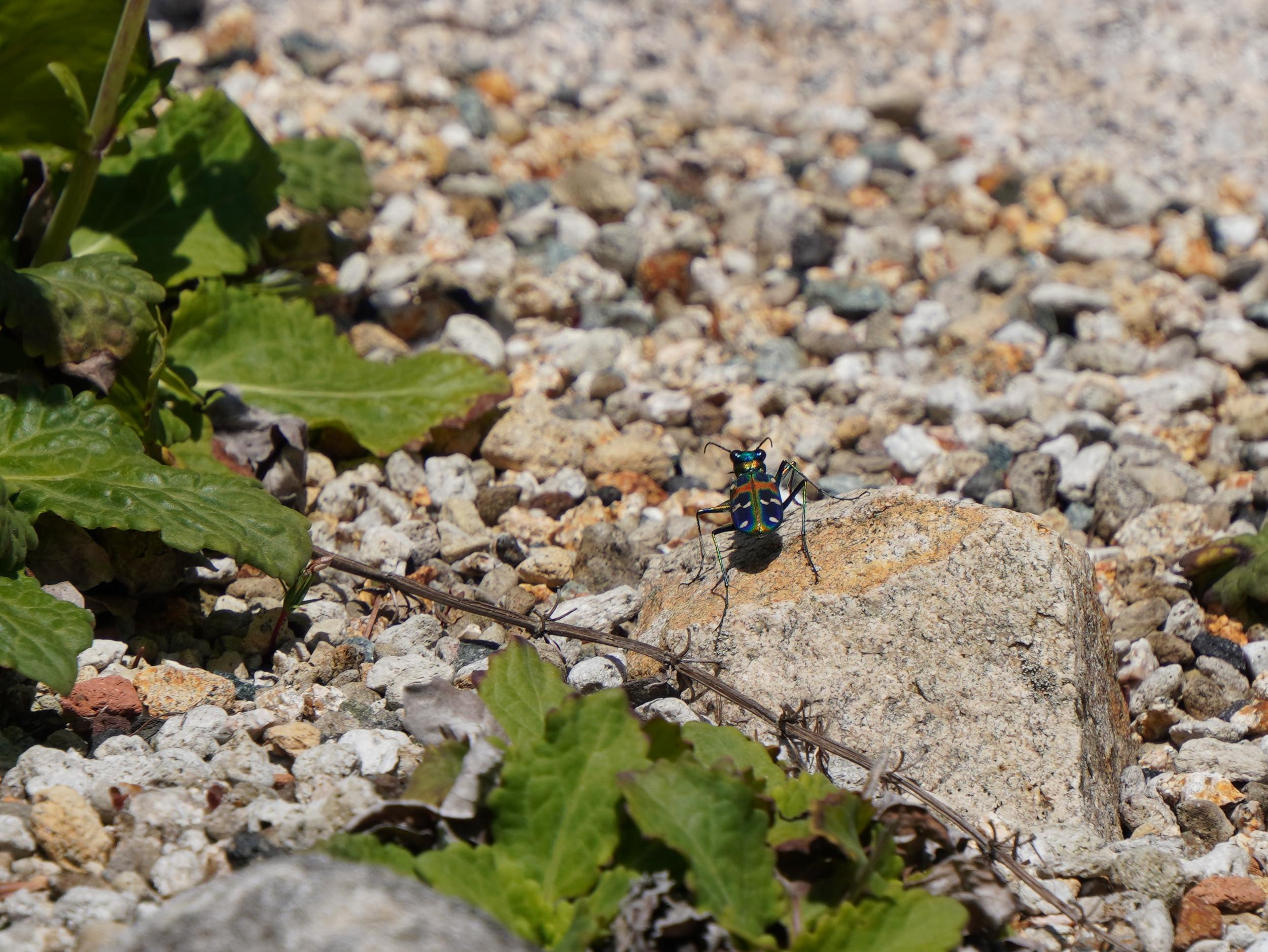 ロックガーデンの岩の上に大好きな虫、自分はフリカエリムシと呼んでいるのですが、大好きなのに名前がどうしても出てきません。スマホで自分の昆虫図鑑を調べようとしたら棒は4本立っているのになぜか繋がりません。
